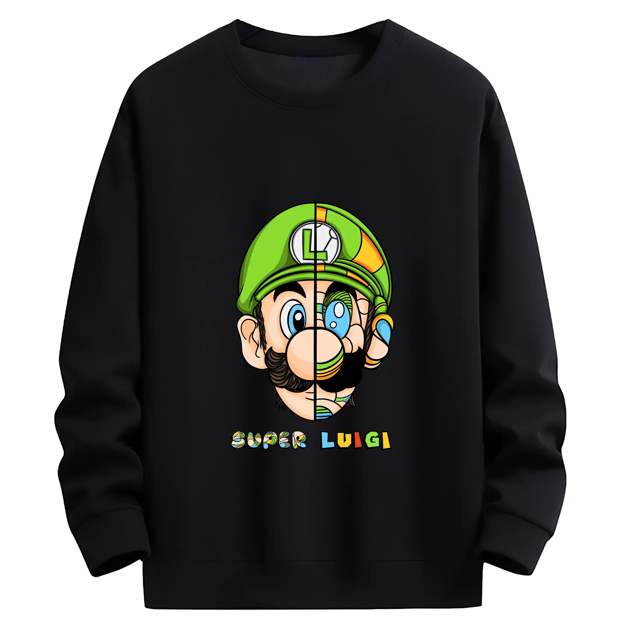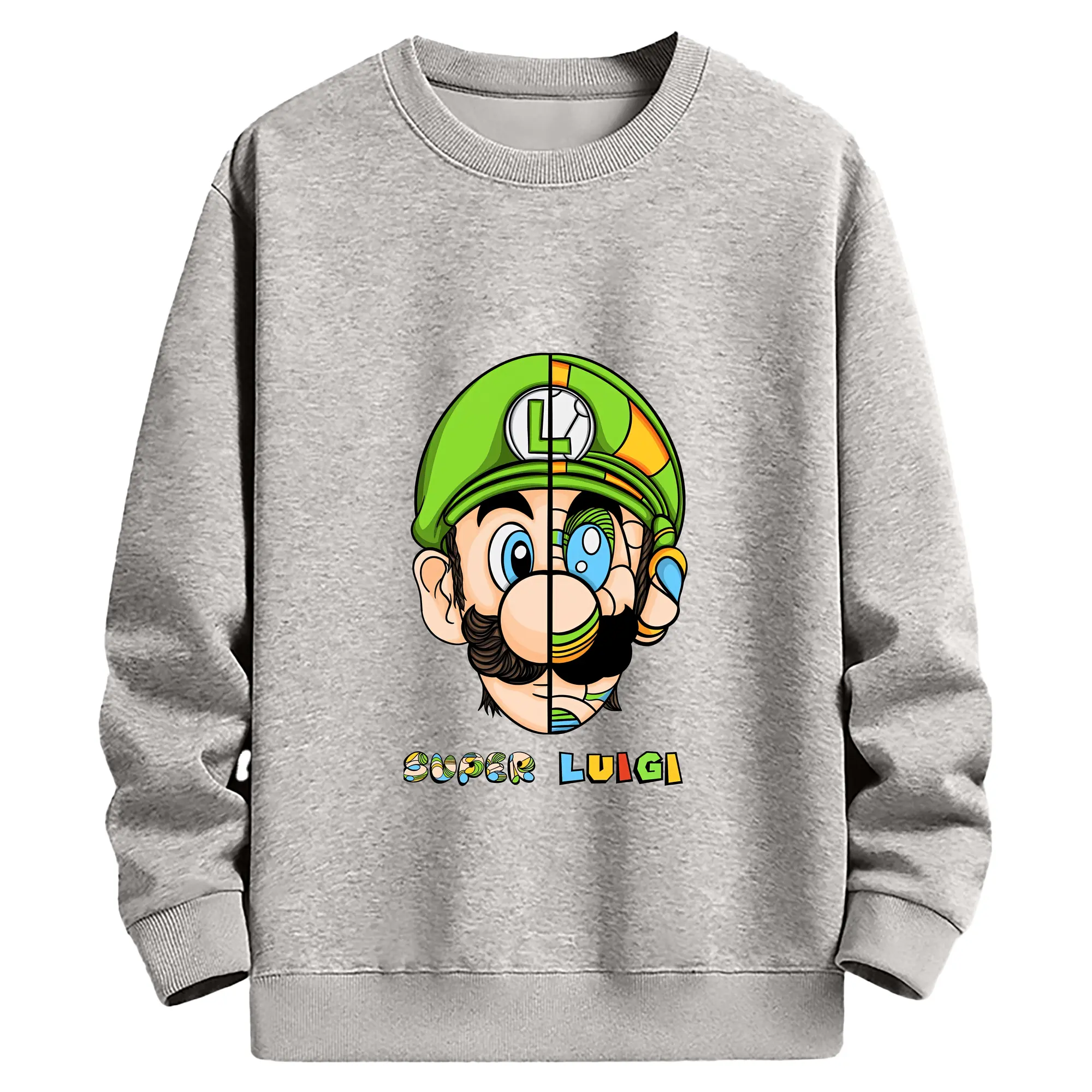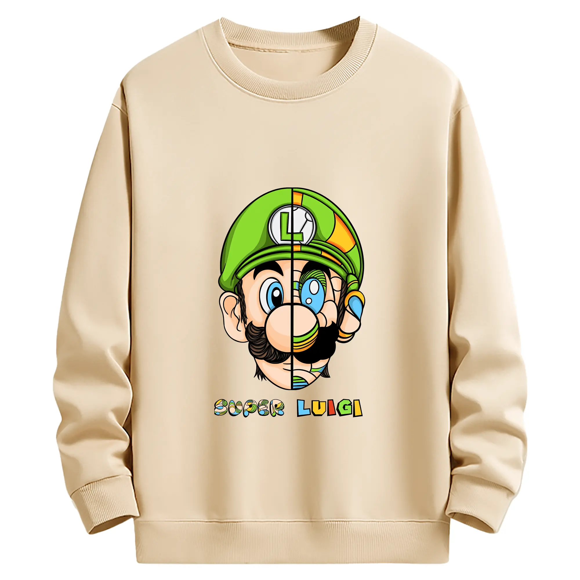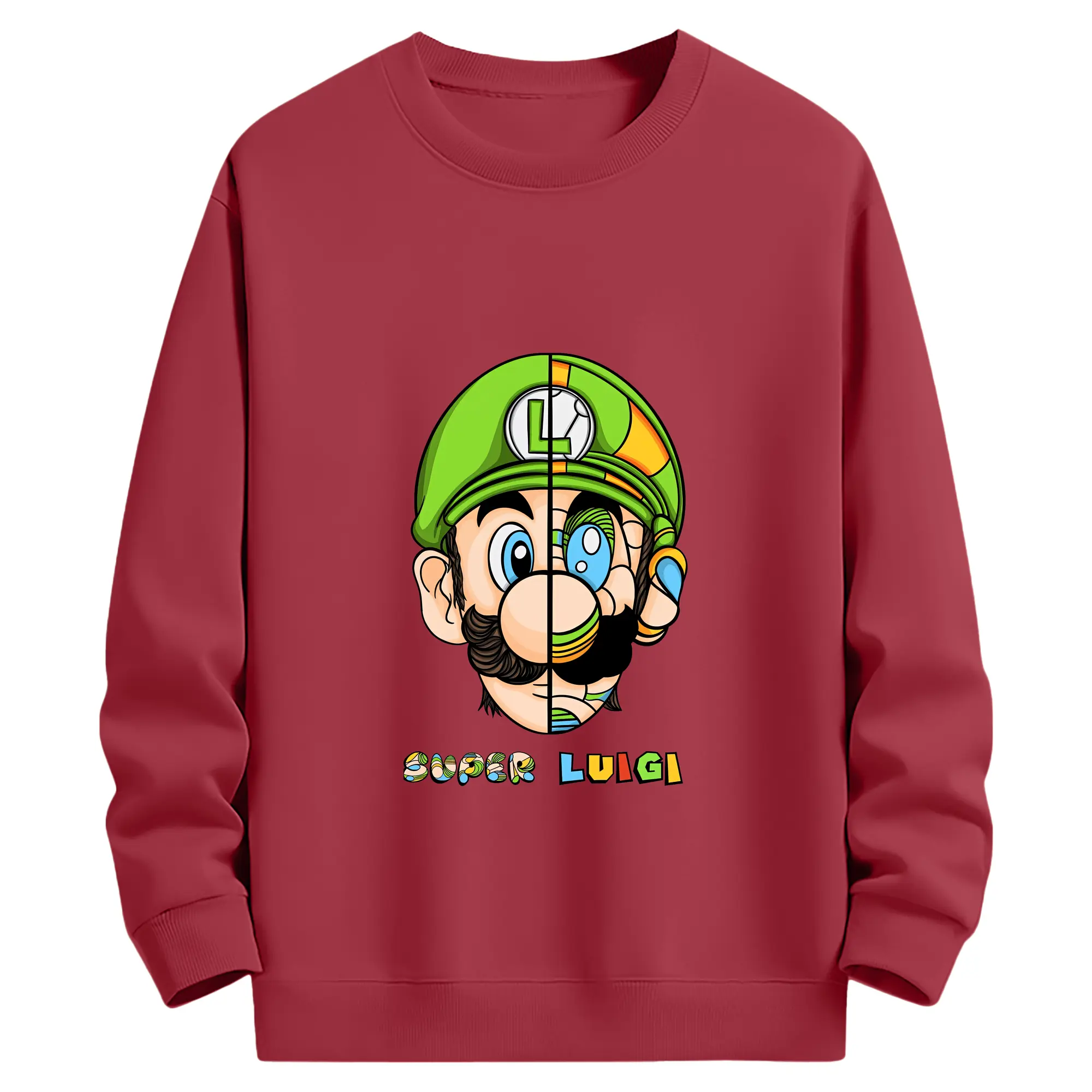 マリオ グッズ ルイージ - 薄手 クルーネック スウェット 裏毛260g · ポリエステル 春秋向け カジュアル 男女兼用 · トレーナー デイリー スポーツ 散歩に最適
