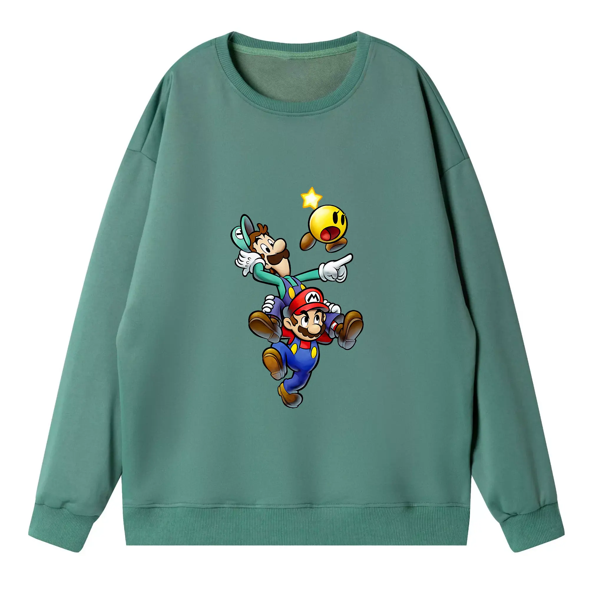 マリオ グッズ ルイージ - 高品質 クルーネック スウェット ・ コットン59% ポリエステル41% ・ ユニセックス 長袖 トレーナー ・ カジュアル デイリー スポーツ 散歩用