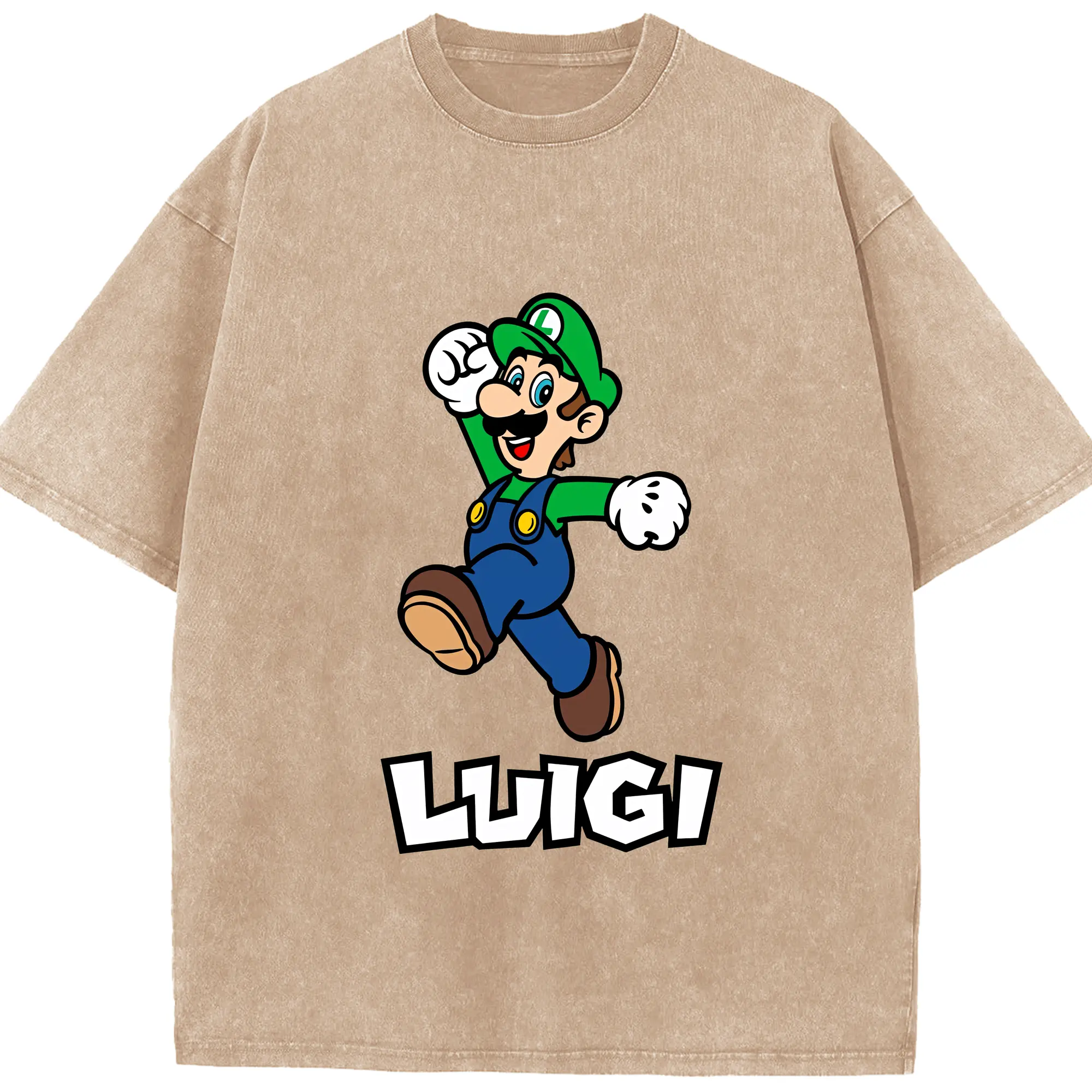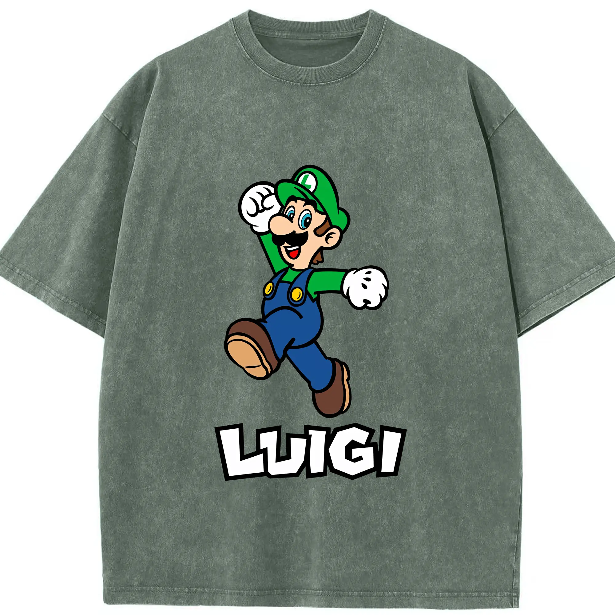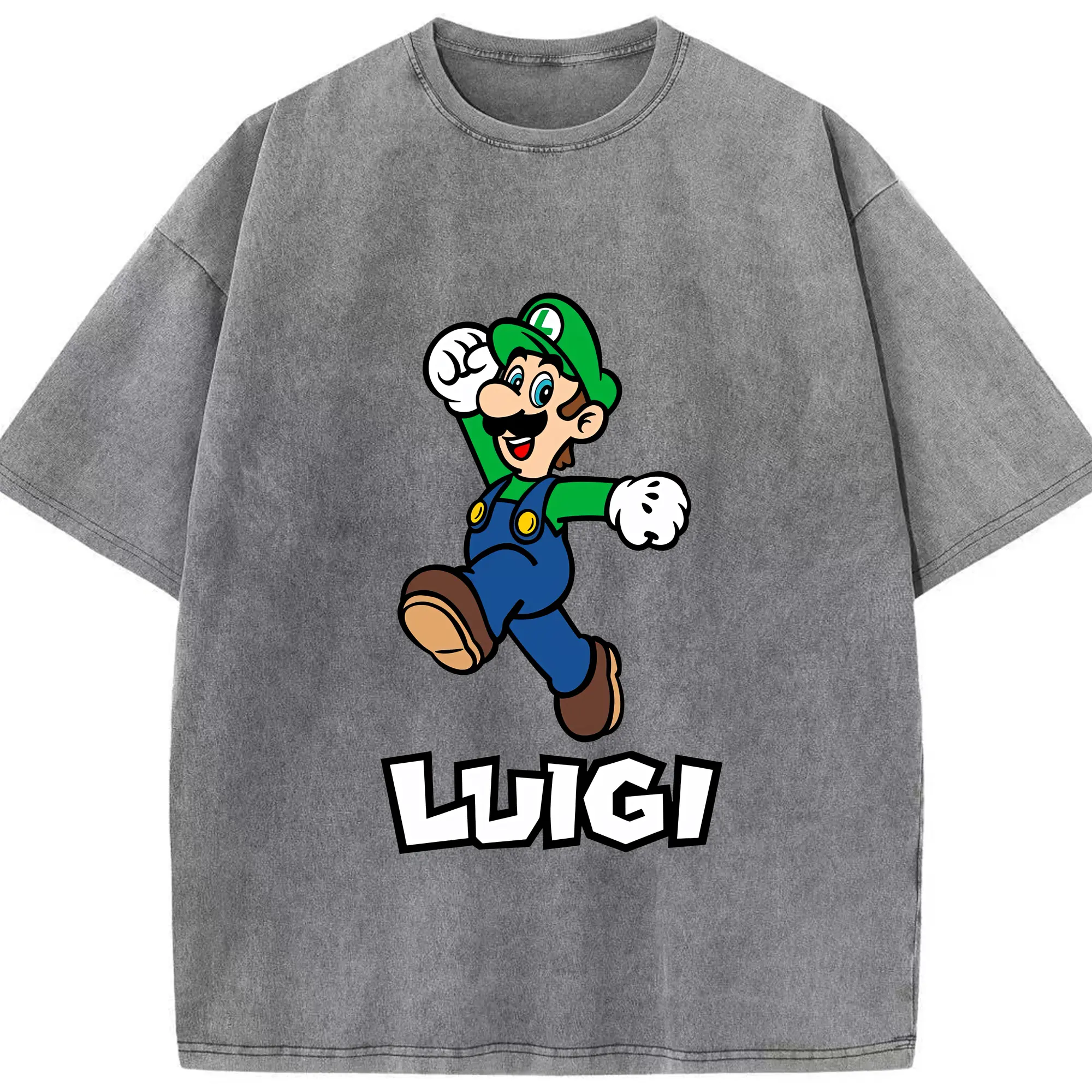 マリオ グッズ ルイージ - 綿100% ヴィンテージ風 半袖Tシャツ ・ 背面プリント ・ 柔らか肌触り ・ 通気性 快適 ・ スポーツ カジュアル 外出用
