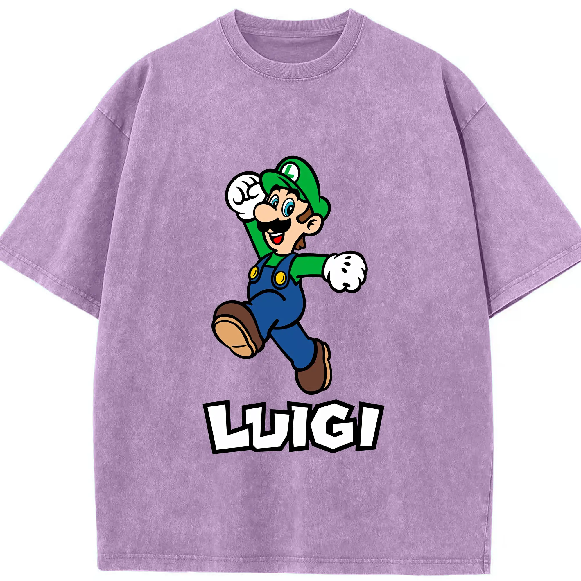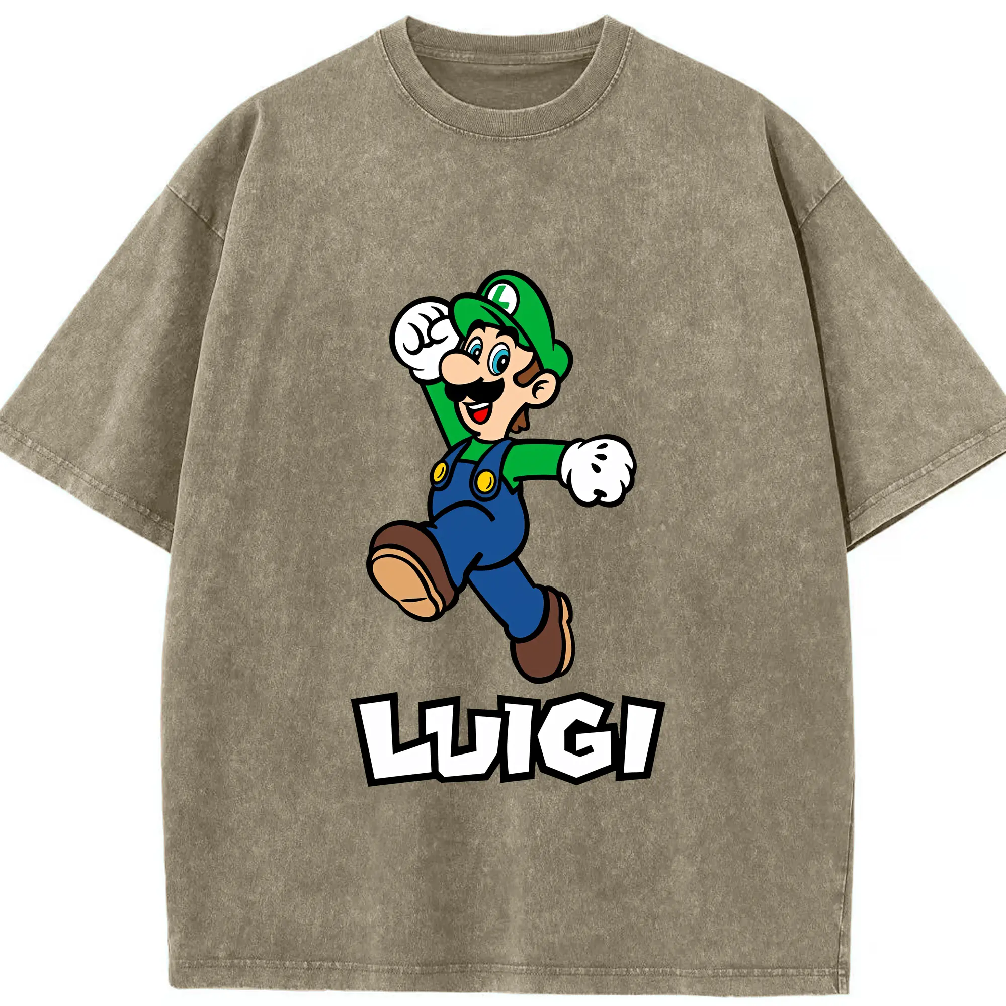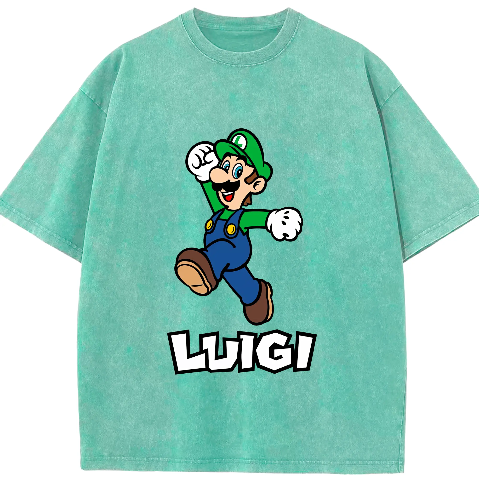 マリオ グッズ ルイージ - 綿100% ヴィンテージ風 半袖Tシャツ ・ 背面プリント ・ 柔らか肌触り ・ 通気性 快適 ・ スポーツ カジュアル 外出用