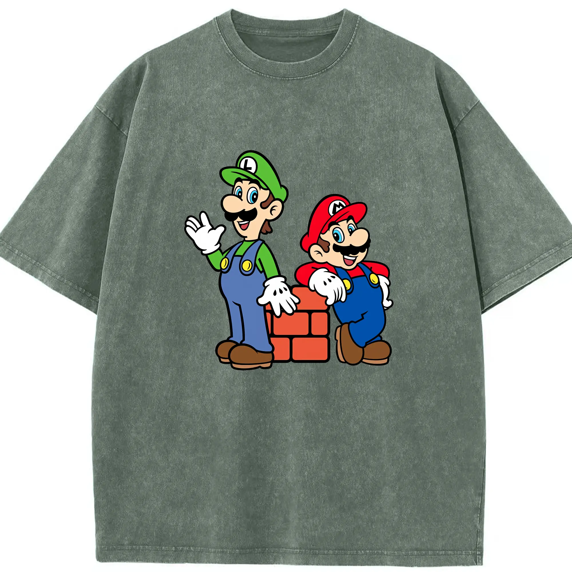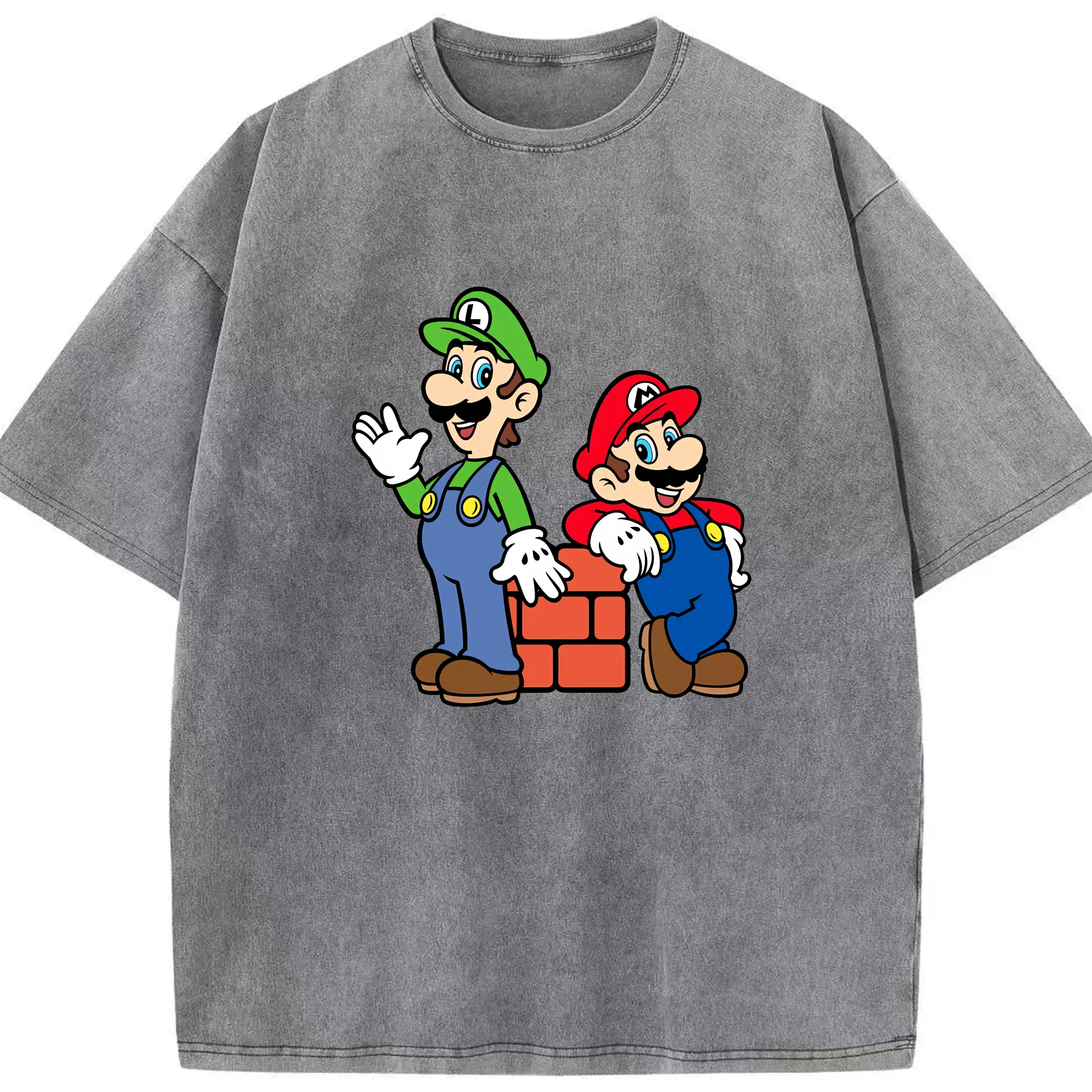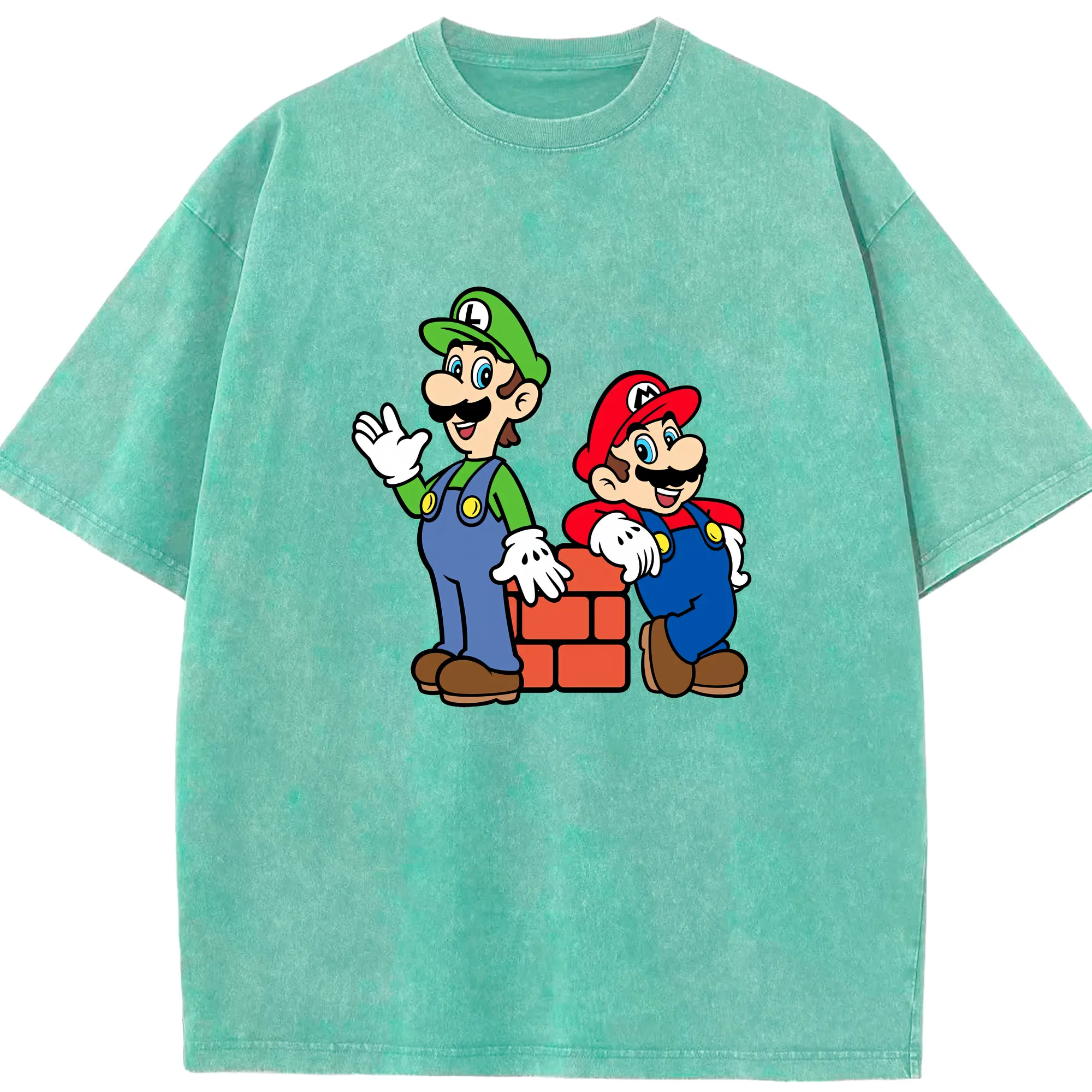 マリオ グッズ ルイージ - 綿100% ヴィンテージ風 半袖Tシャツ ・ 背面プリント ・ 柔らか肌触り ・ 通気性 快適 ・ スポーツ カジュアル 外出用