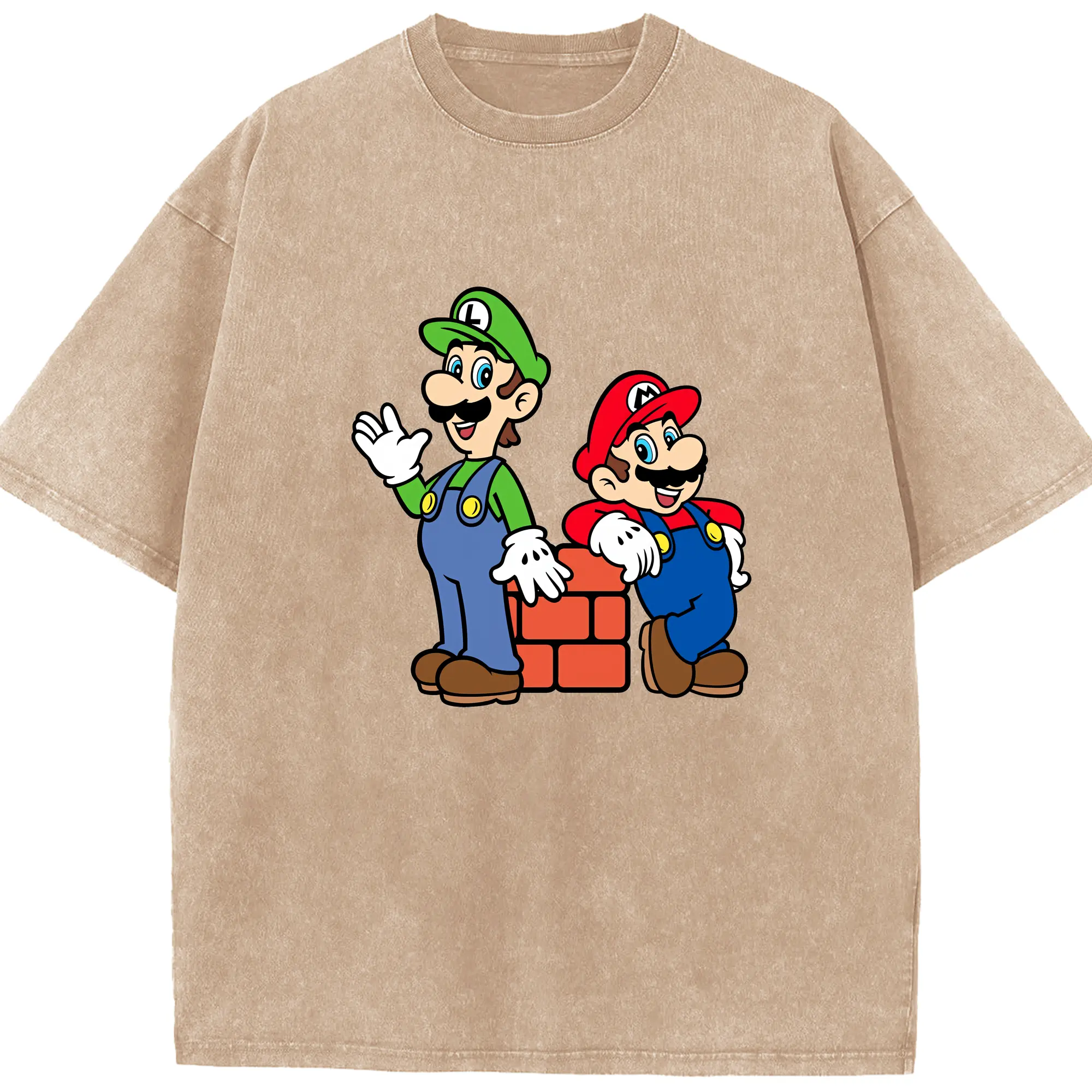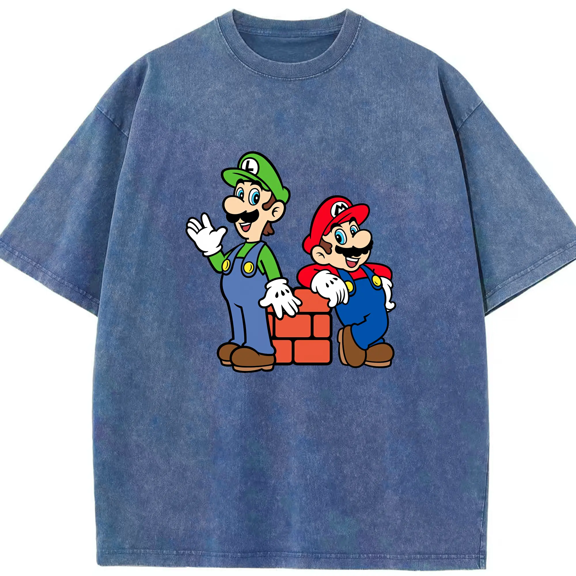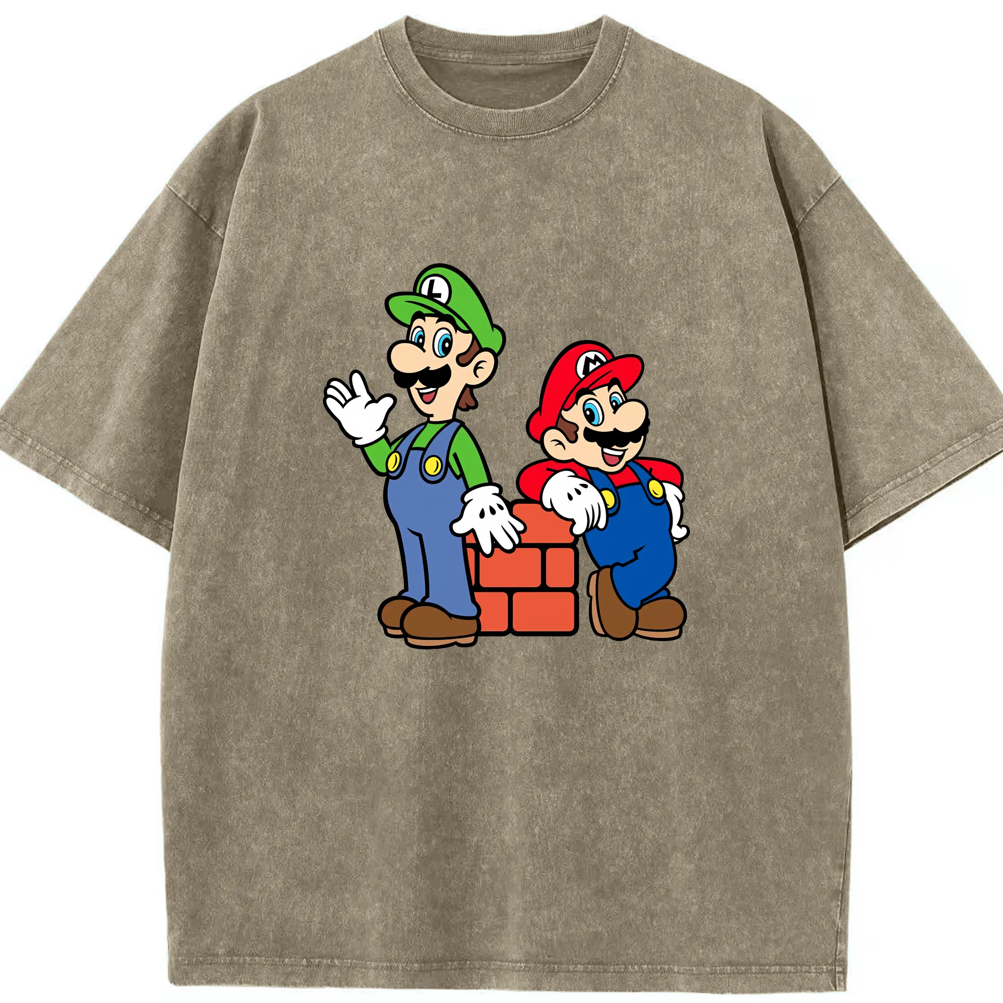 マリオ グッズ ルイージ - 綿100% ヴィンテージ風 半袖Tシャツ ・ 背面プリント ・ 柔らか肌触り ・ 通気性 快適 ・ スポーツ カジュアル 外出用