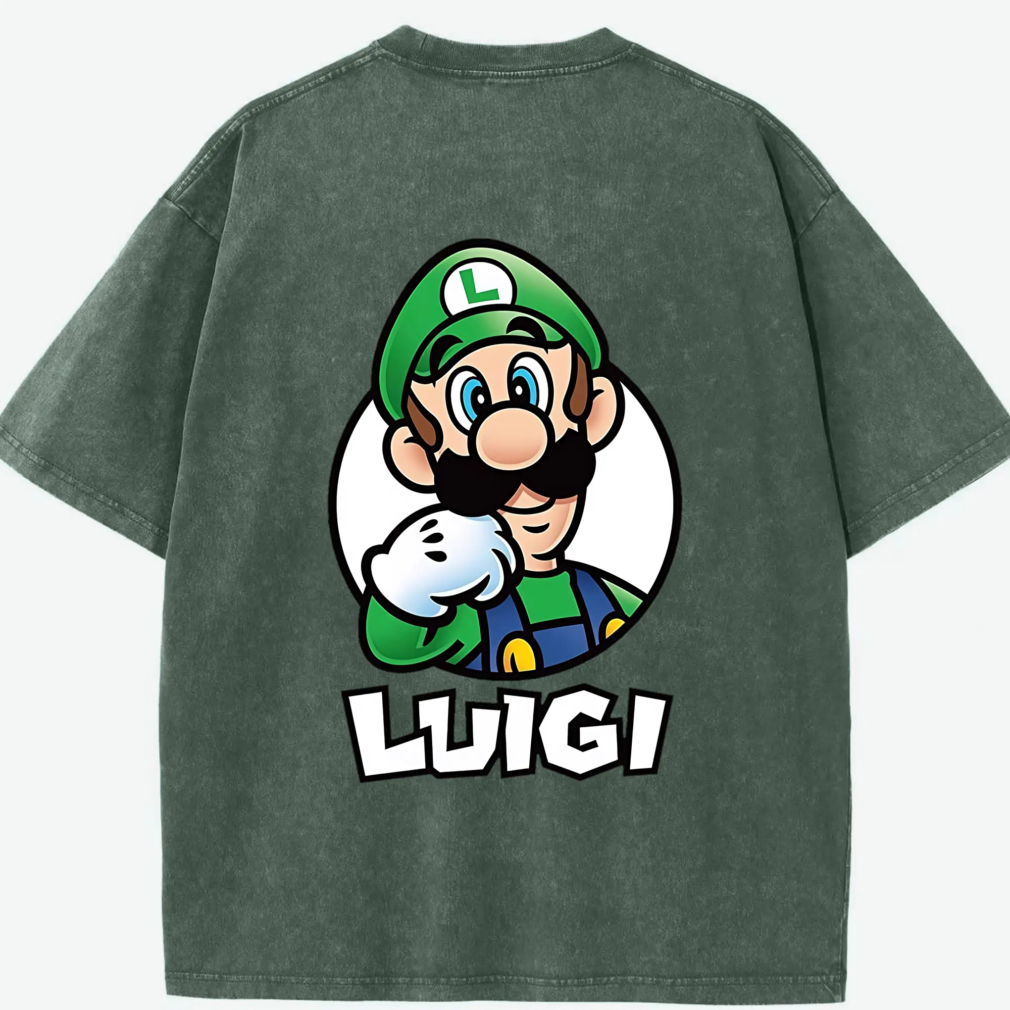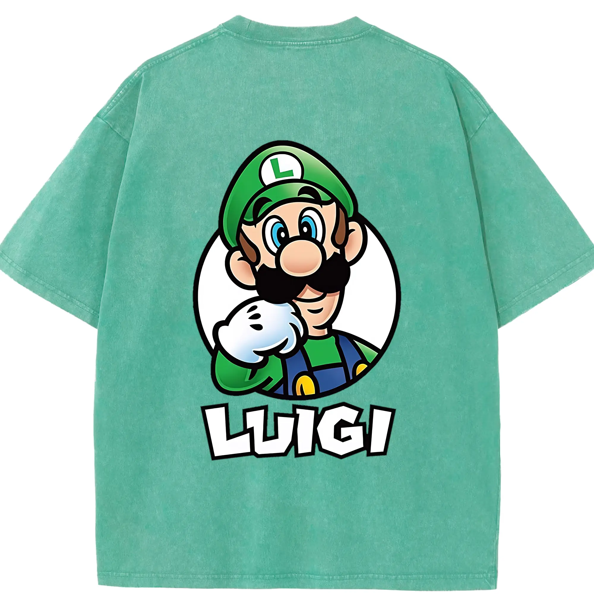 マリオ グッズ ルイージ - 綿100% ヴィンテージ風 半袖Tシャツ ・ フロントプリント ・ 柔らか肌触り ・ 通気性 快適 ・ スポーツ カジュアル 外出用