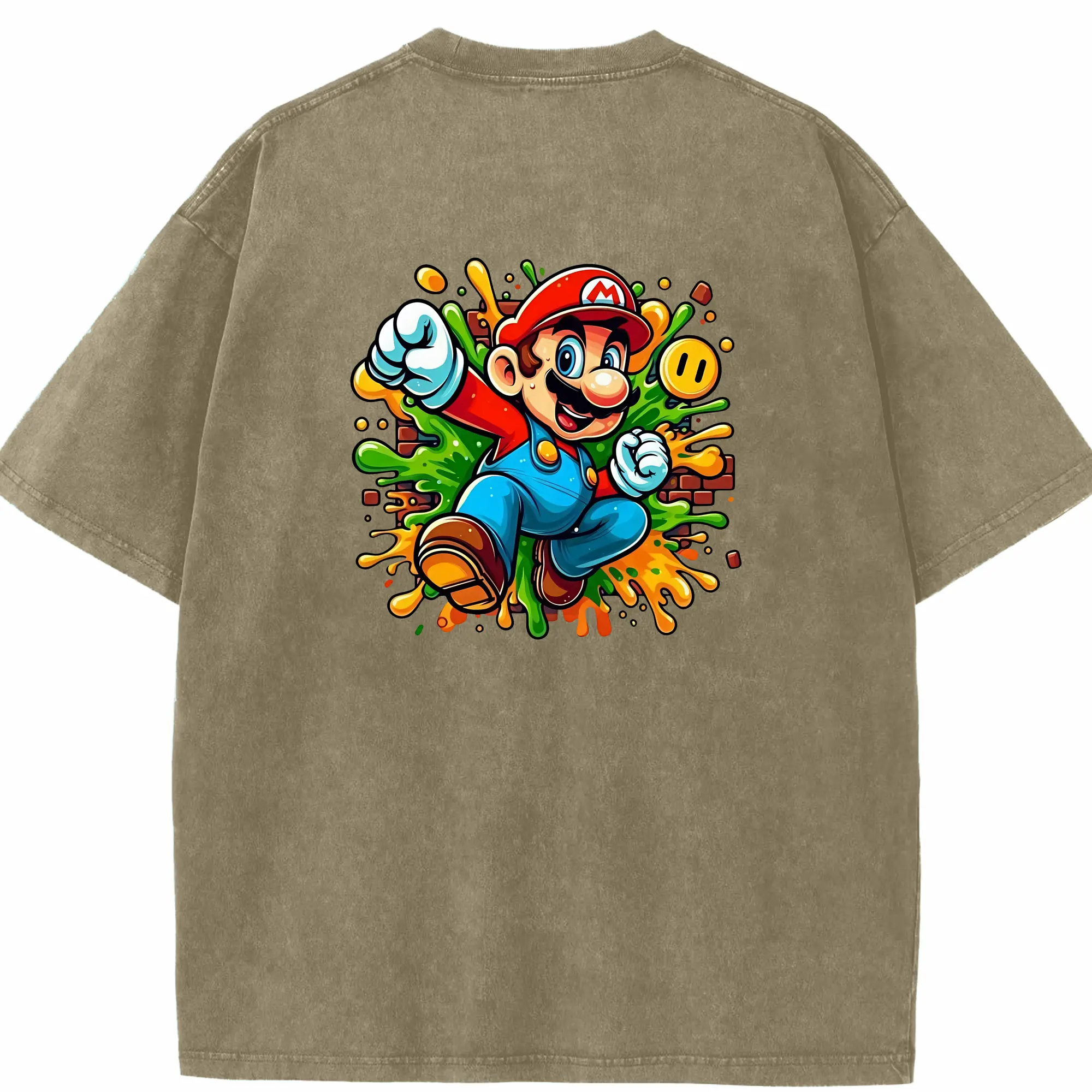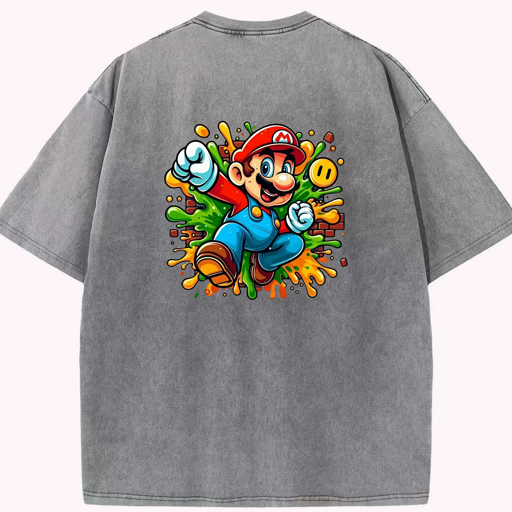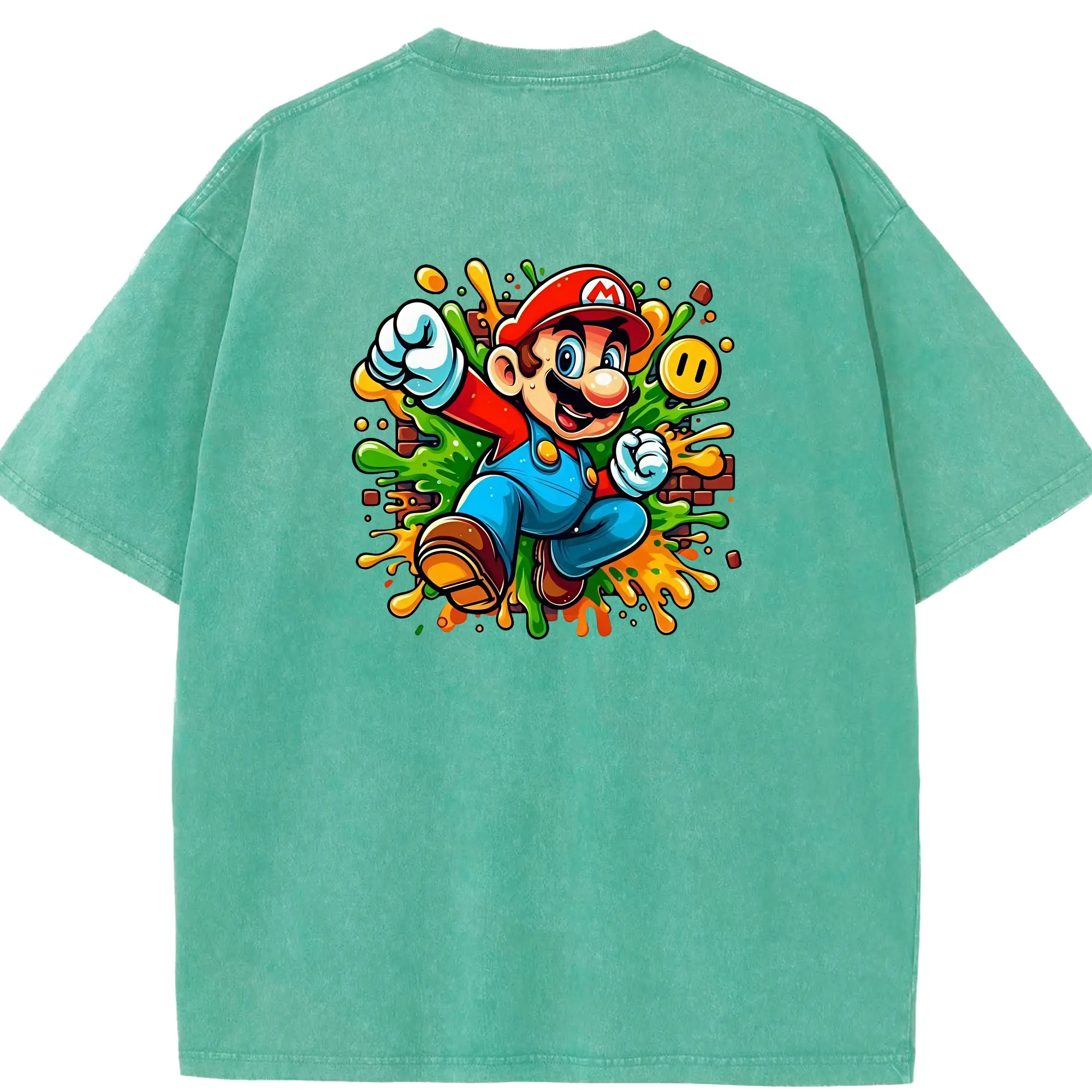 マリオ グッズ ルイージ - 綿100% ヴィンテージ風 半袖Tシャツ ・ フロントプリント ・ 柔らか肌触り ・ 通気性 快適 ・ スポーツ カジュアル 外出用