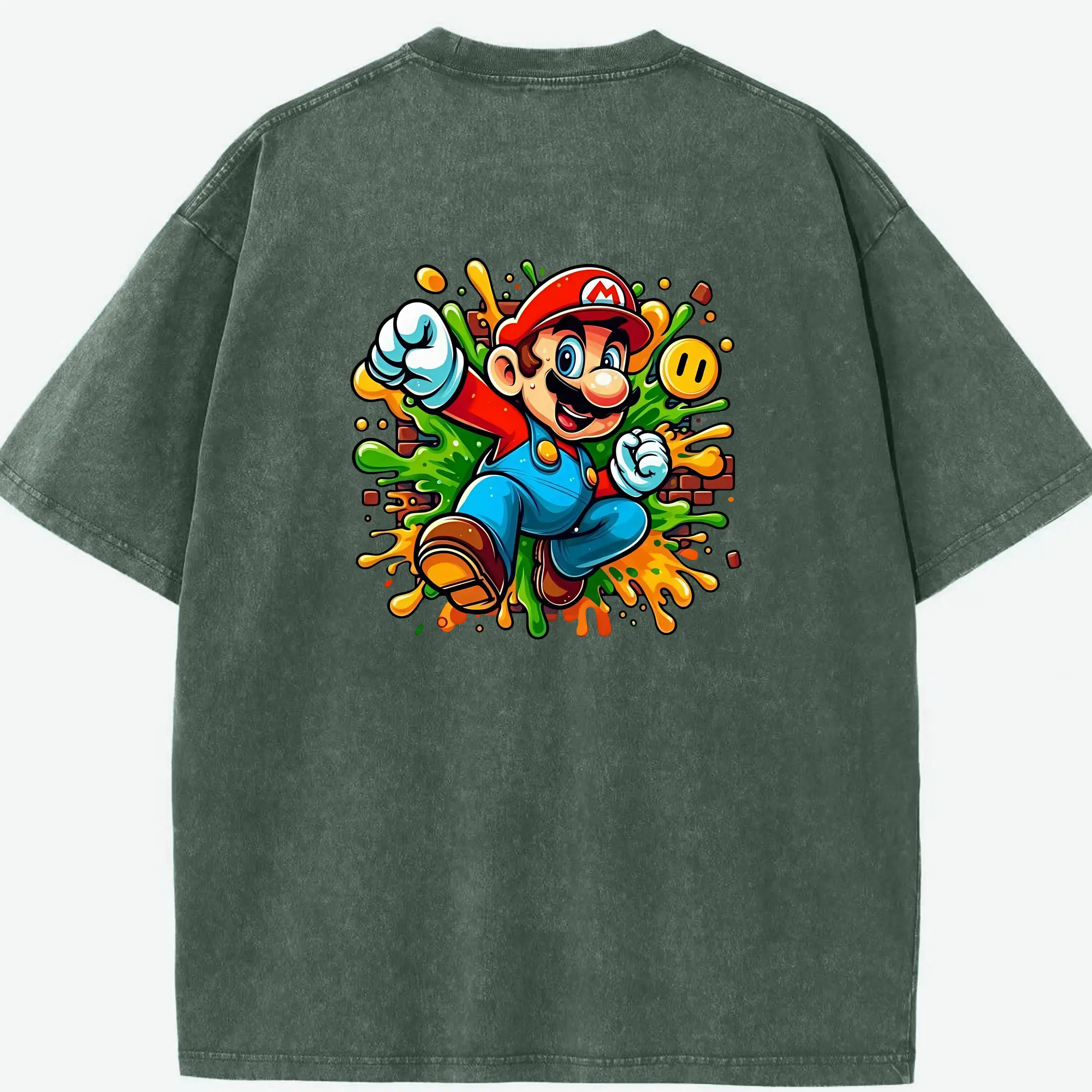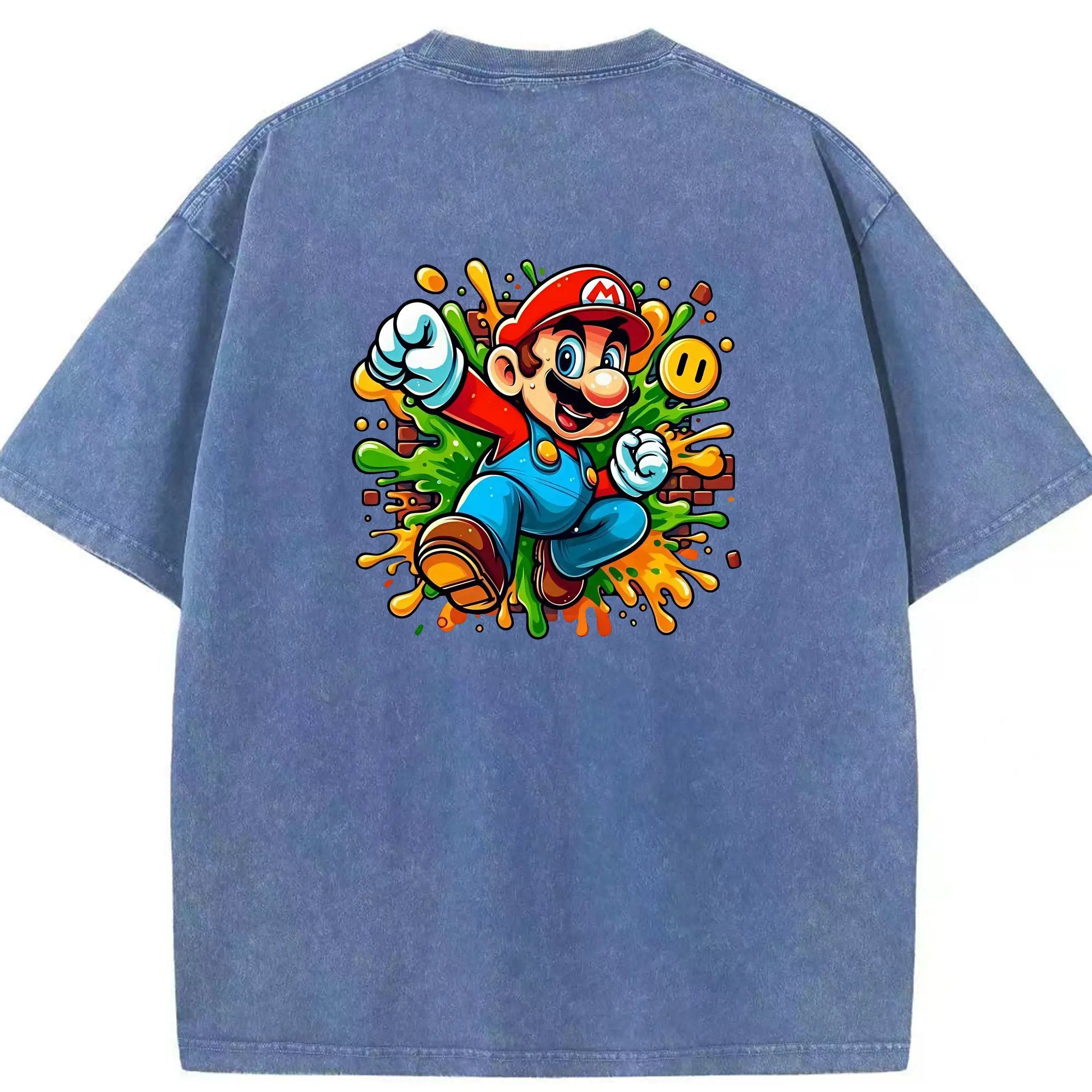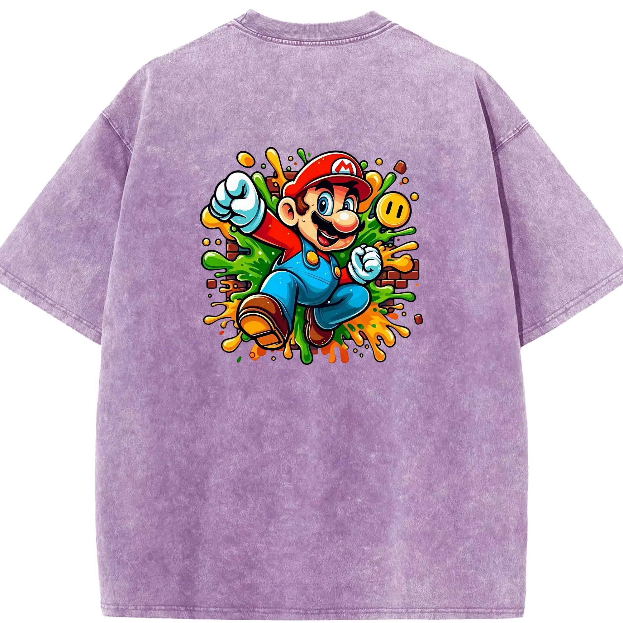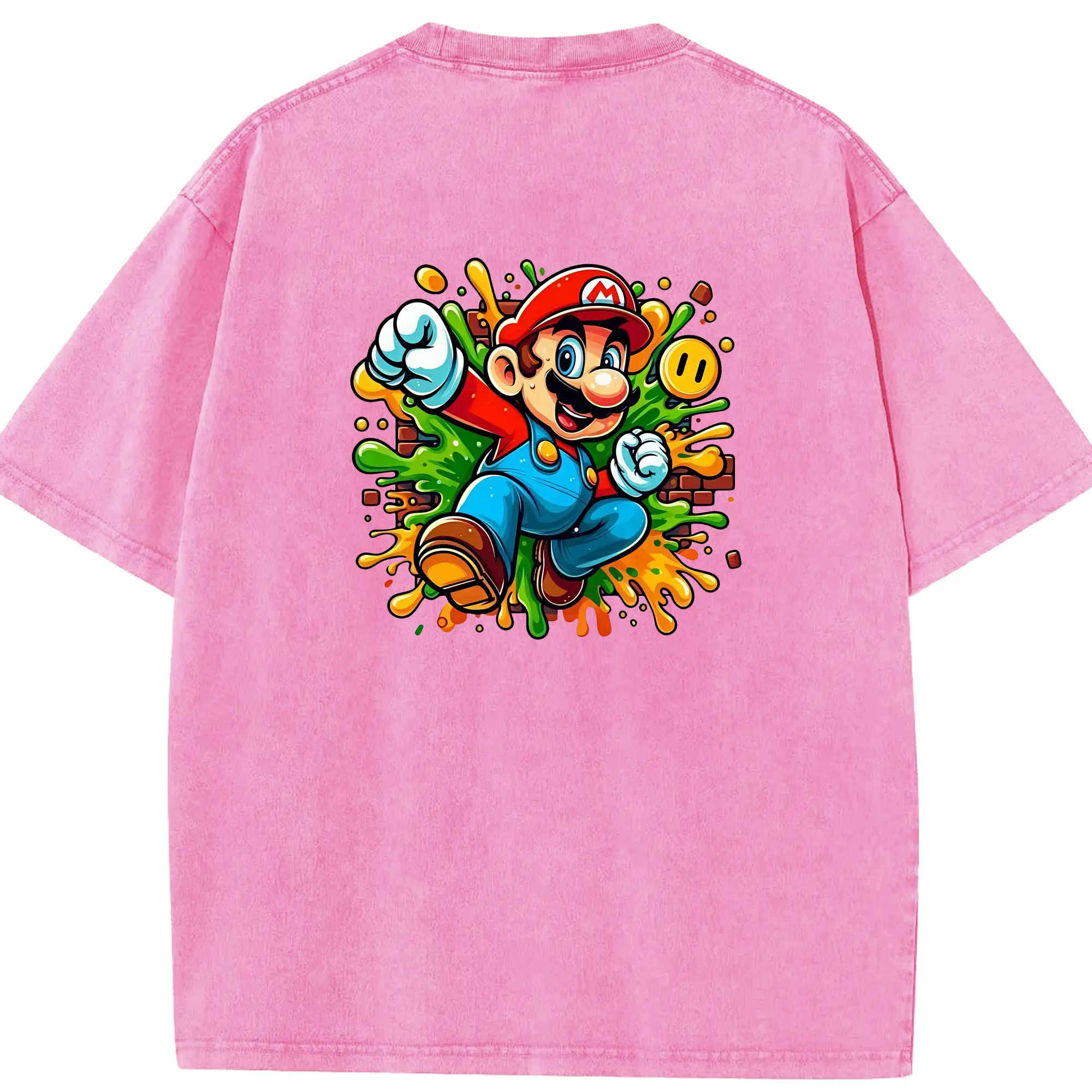 マリオ グッズ ルイージ - 綿100% ヴィンテージ風 半袖Tシャツ ・ フロントプリント ・ 柔らか肌触り ・ 通気性 快適 ・ スポーツ カジュアル 外出用