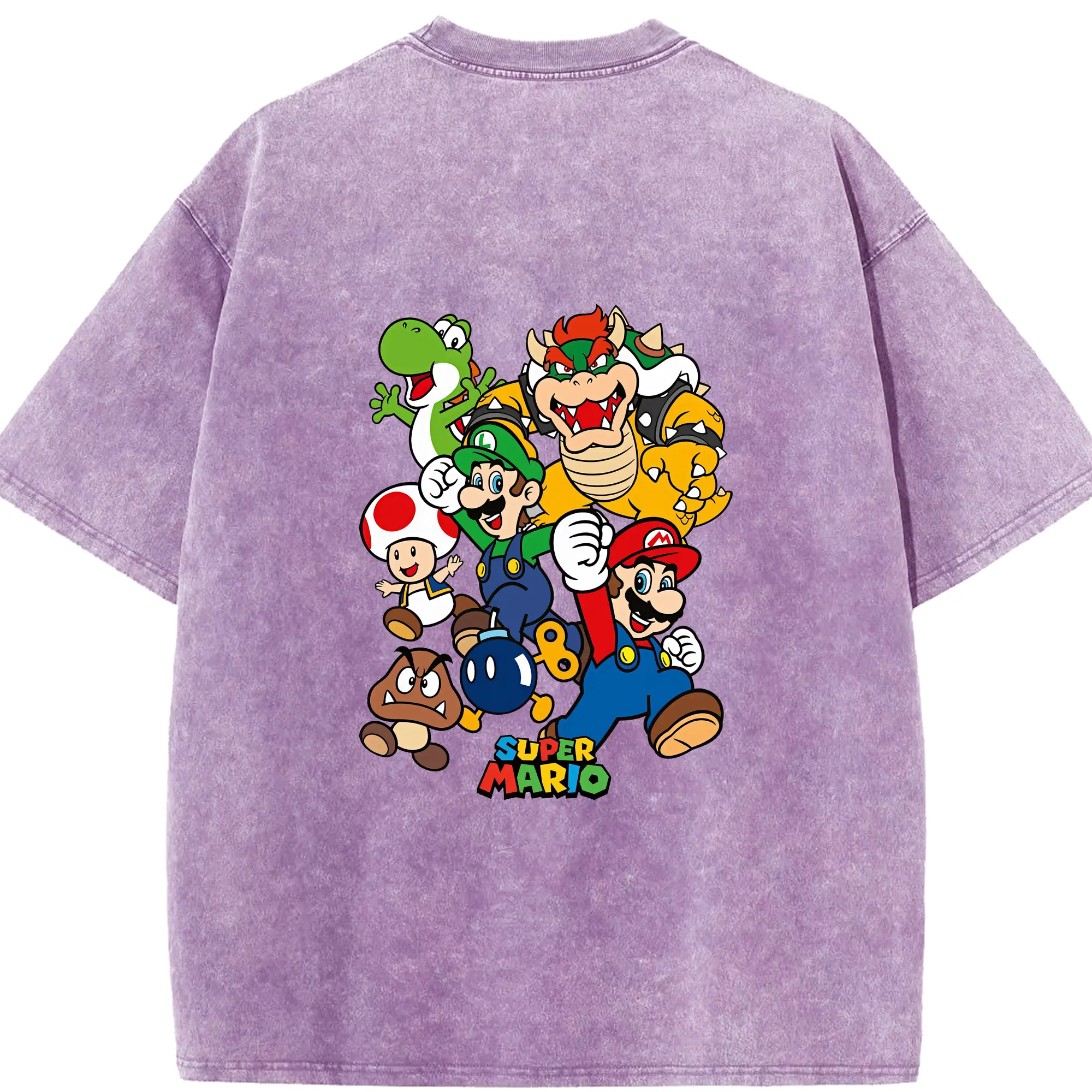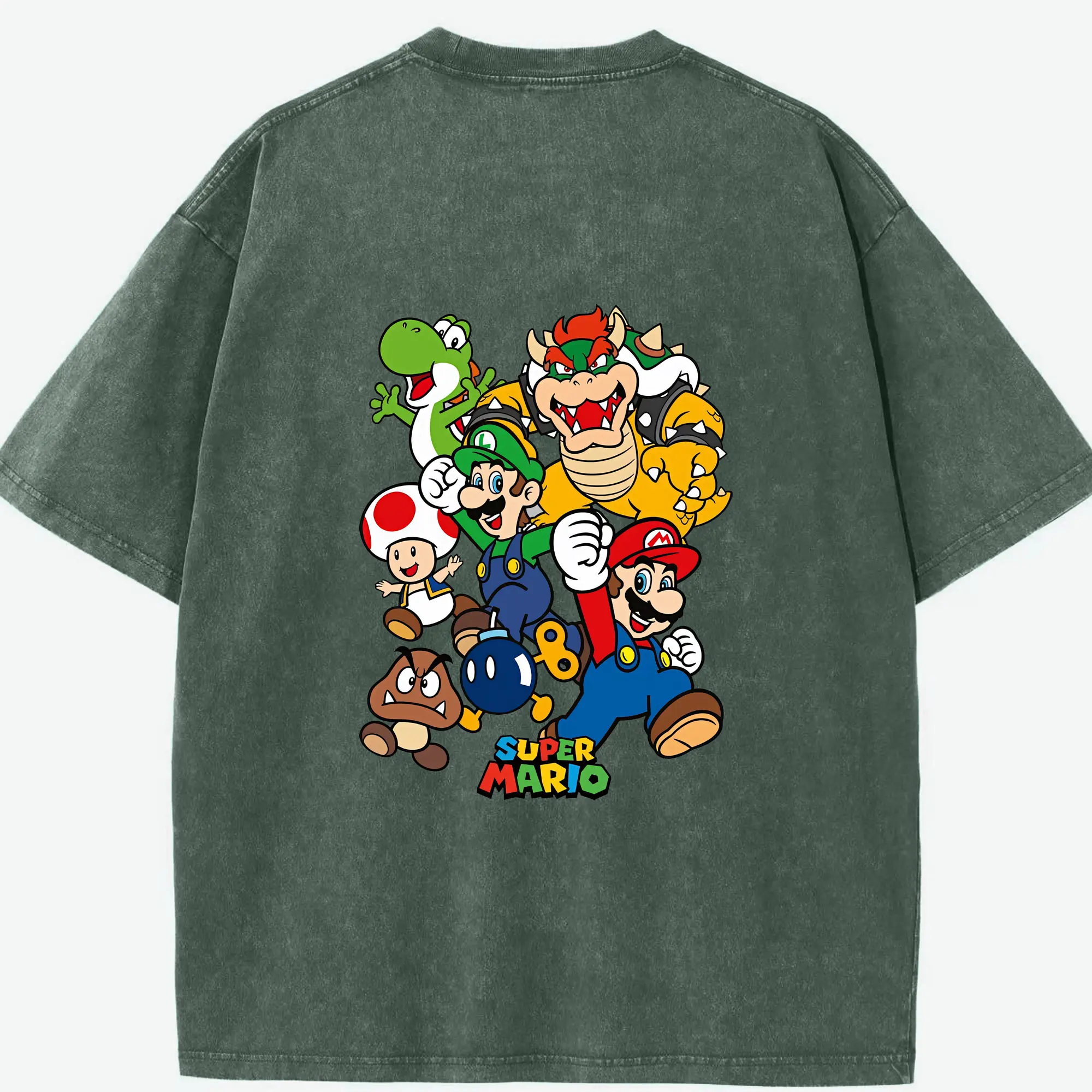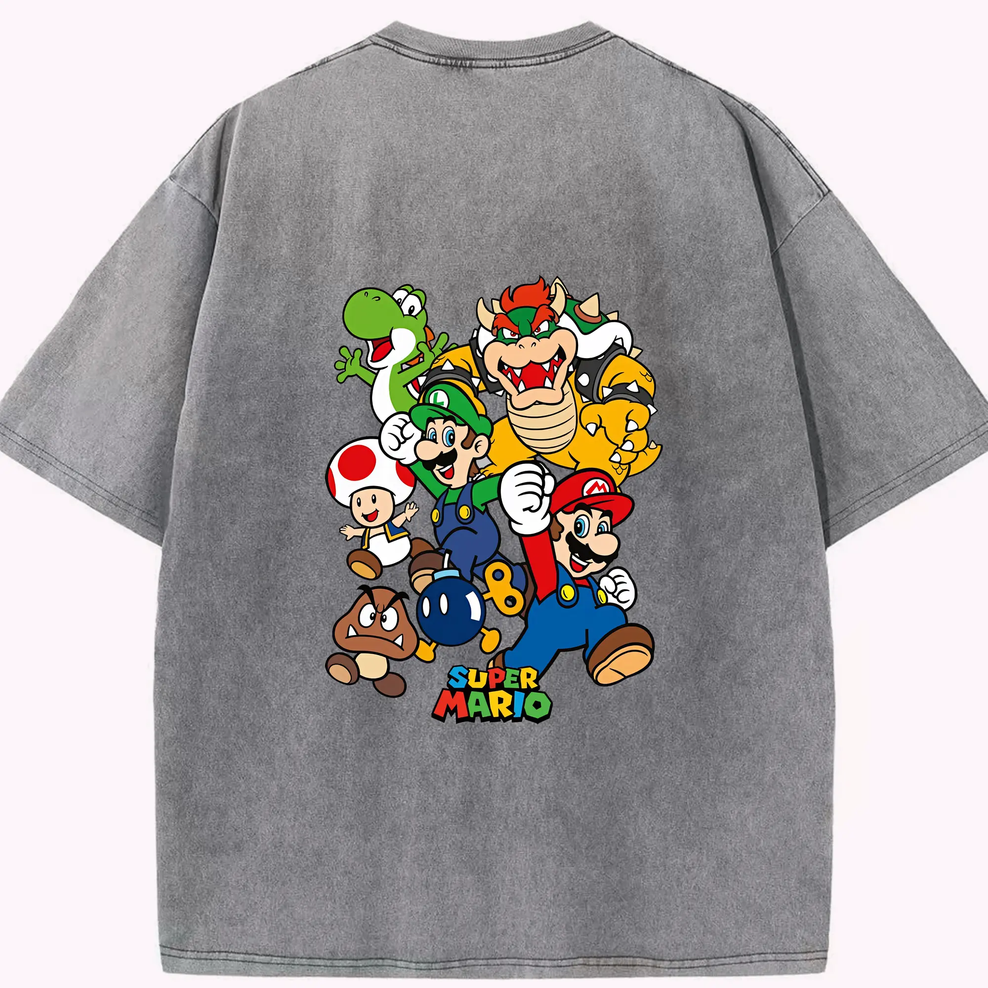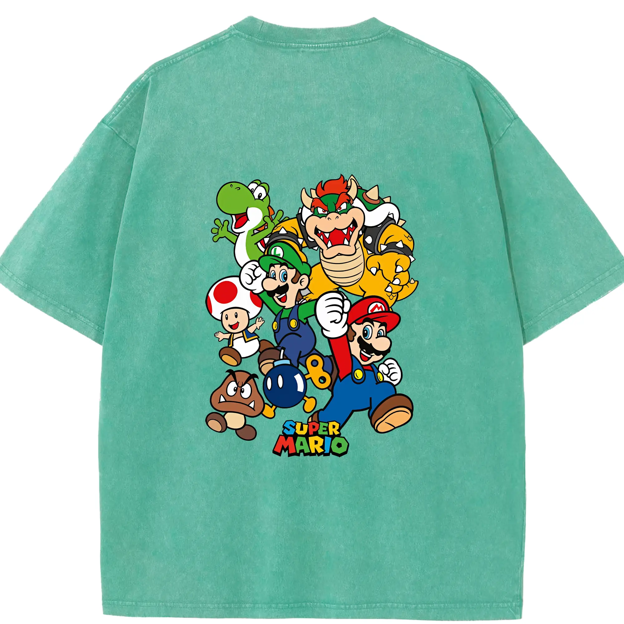 マリオ グッズ ルイージ - 綿100% ヴィンテージ風 半袖Tシャツ ・ フロントプリント ・ 柔らか肌触り ・ 通気性 快適 ・ スポーツ カジュアル 外出用