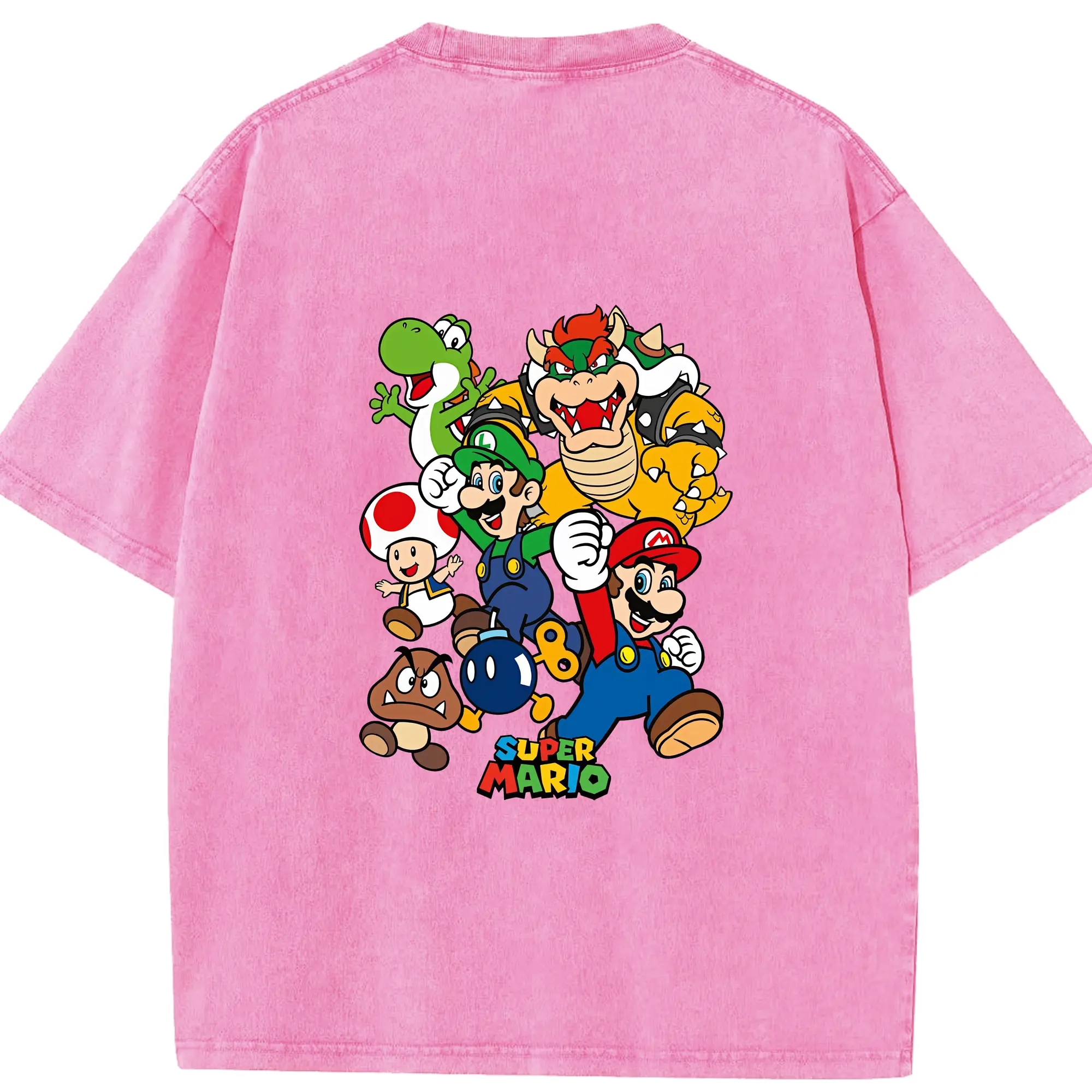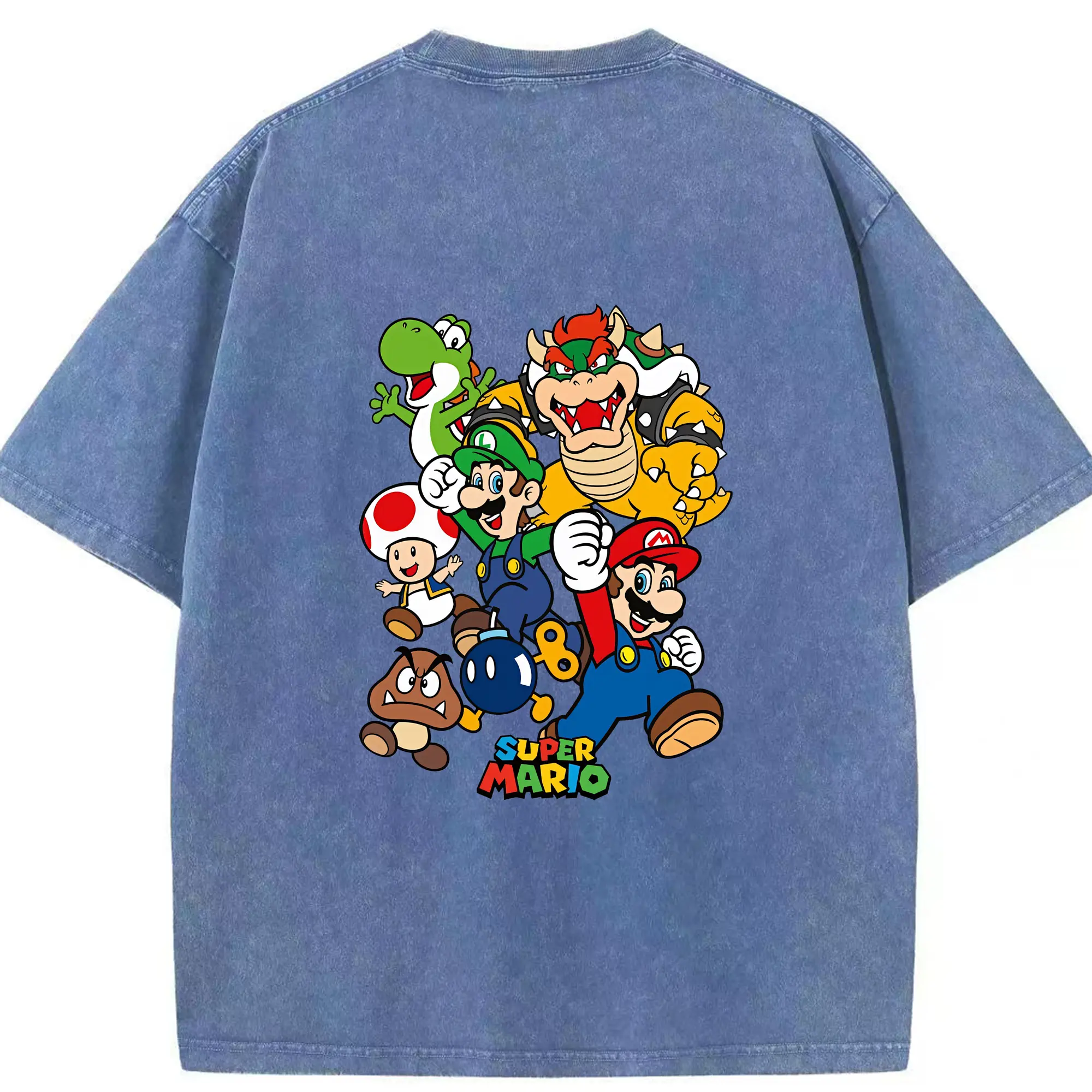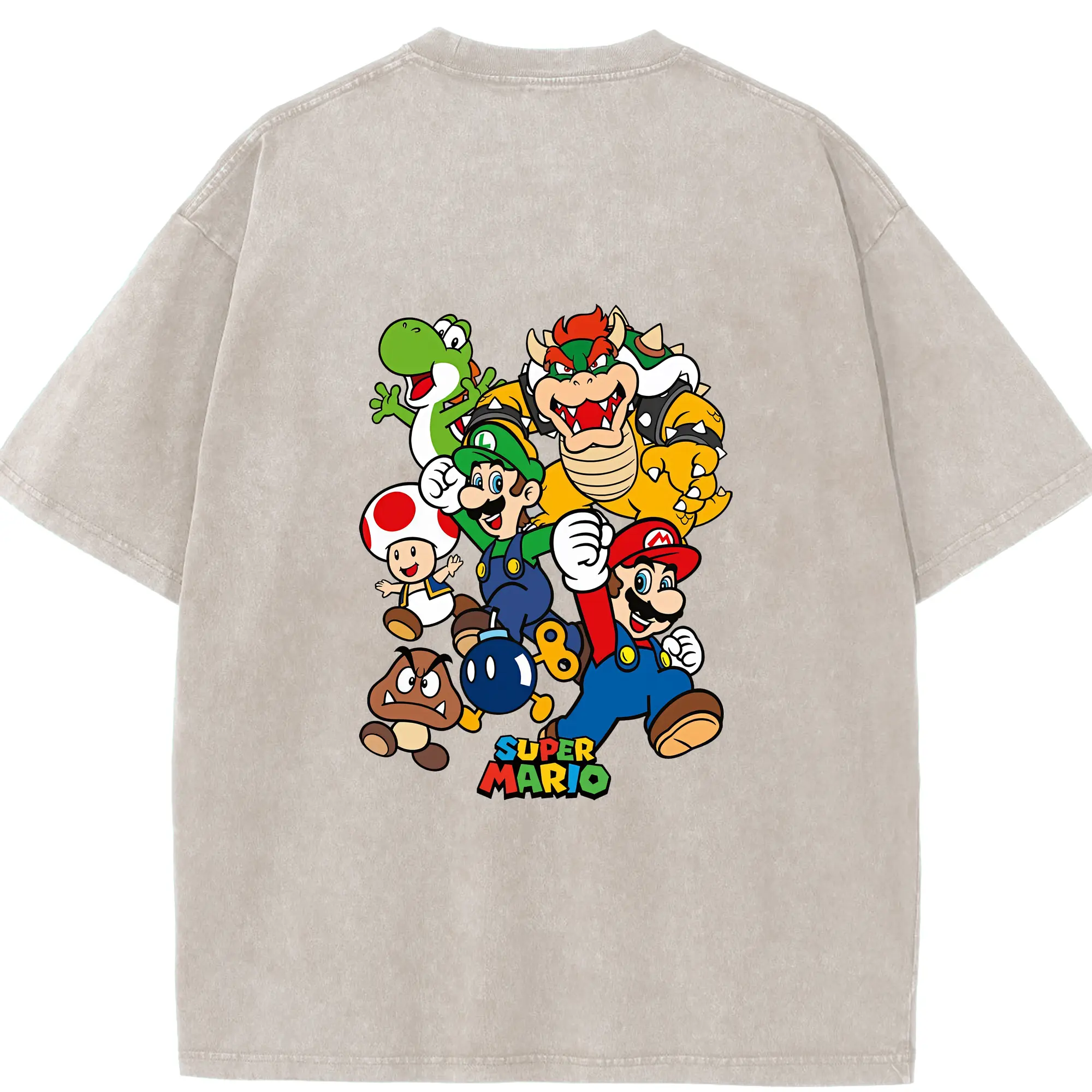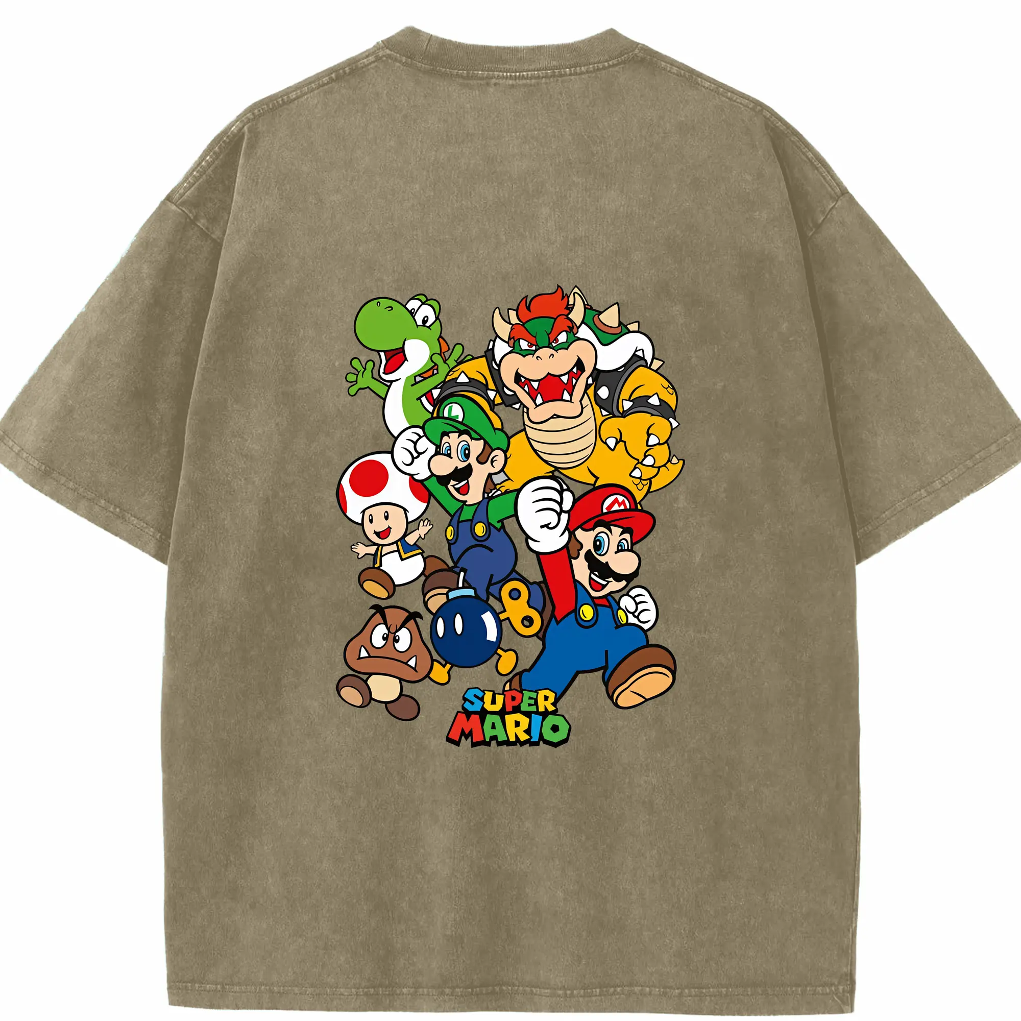 マリオ グッズ ルイージ - 綿100% ヴィンテージ風 半袖Tシャツ ・ フロントプリント ・ 柔らか肌触り ・ 通気性 快適 ・ スポーツ カジュアル 外出用