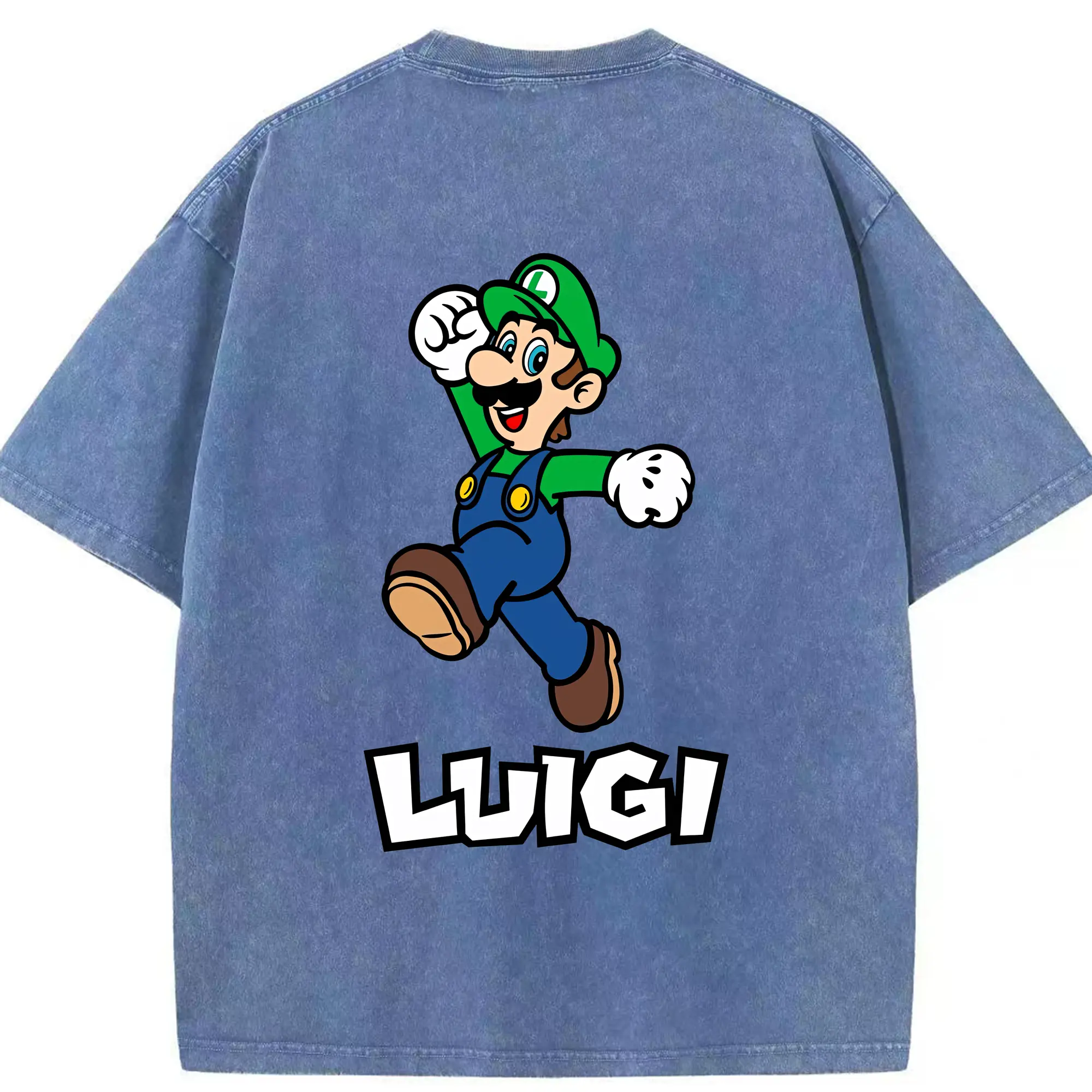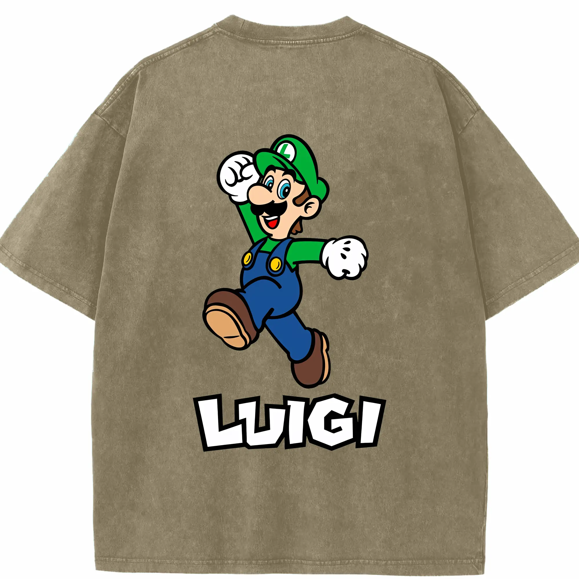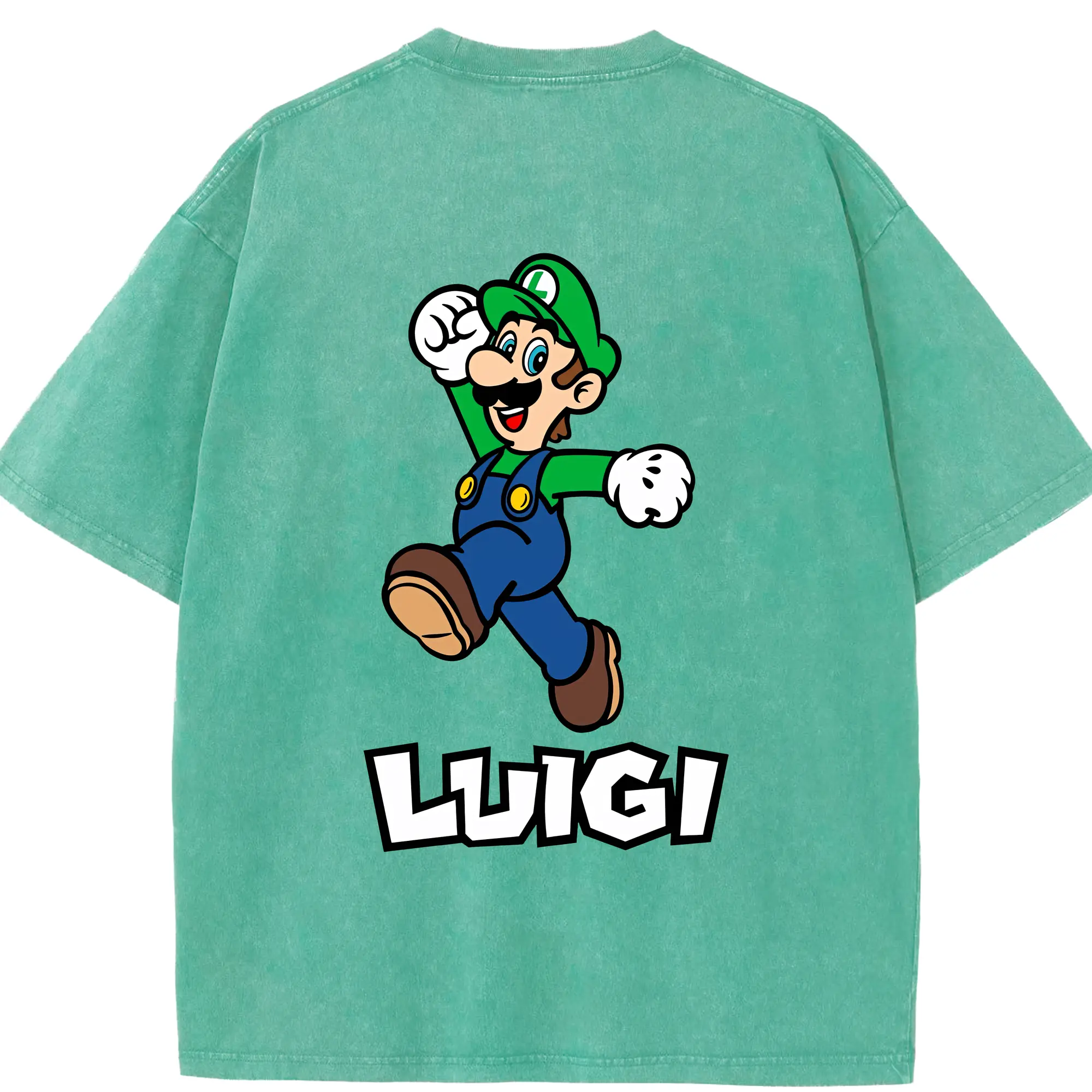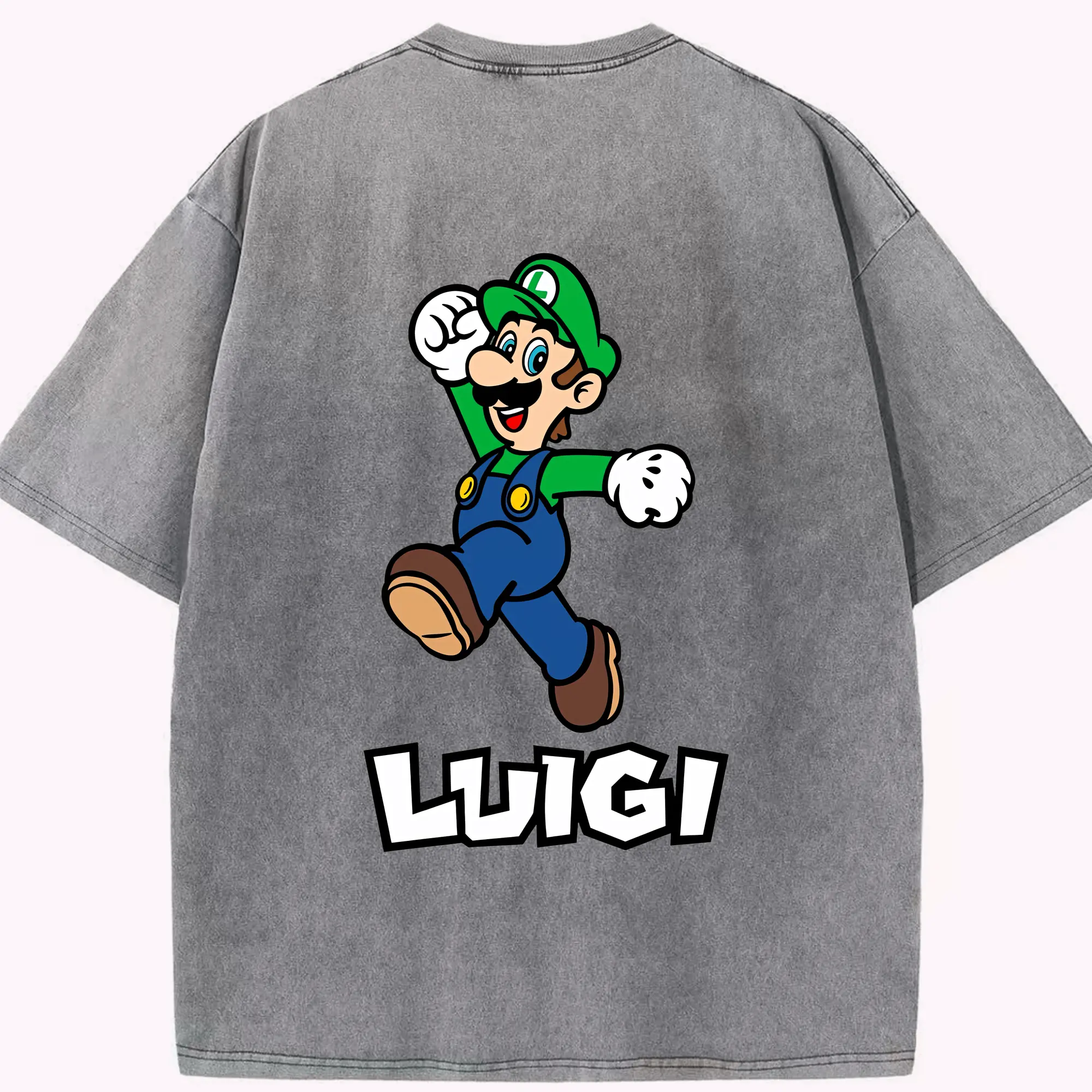 マリオ グッズ ルイージ - 綿100% ヴィンテージ風 半袖Tシャツ ・ フロントプリント ・ 柔らか肌触り ・ 通気性 快適 ・ スポーツ カジュアル 外出用