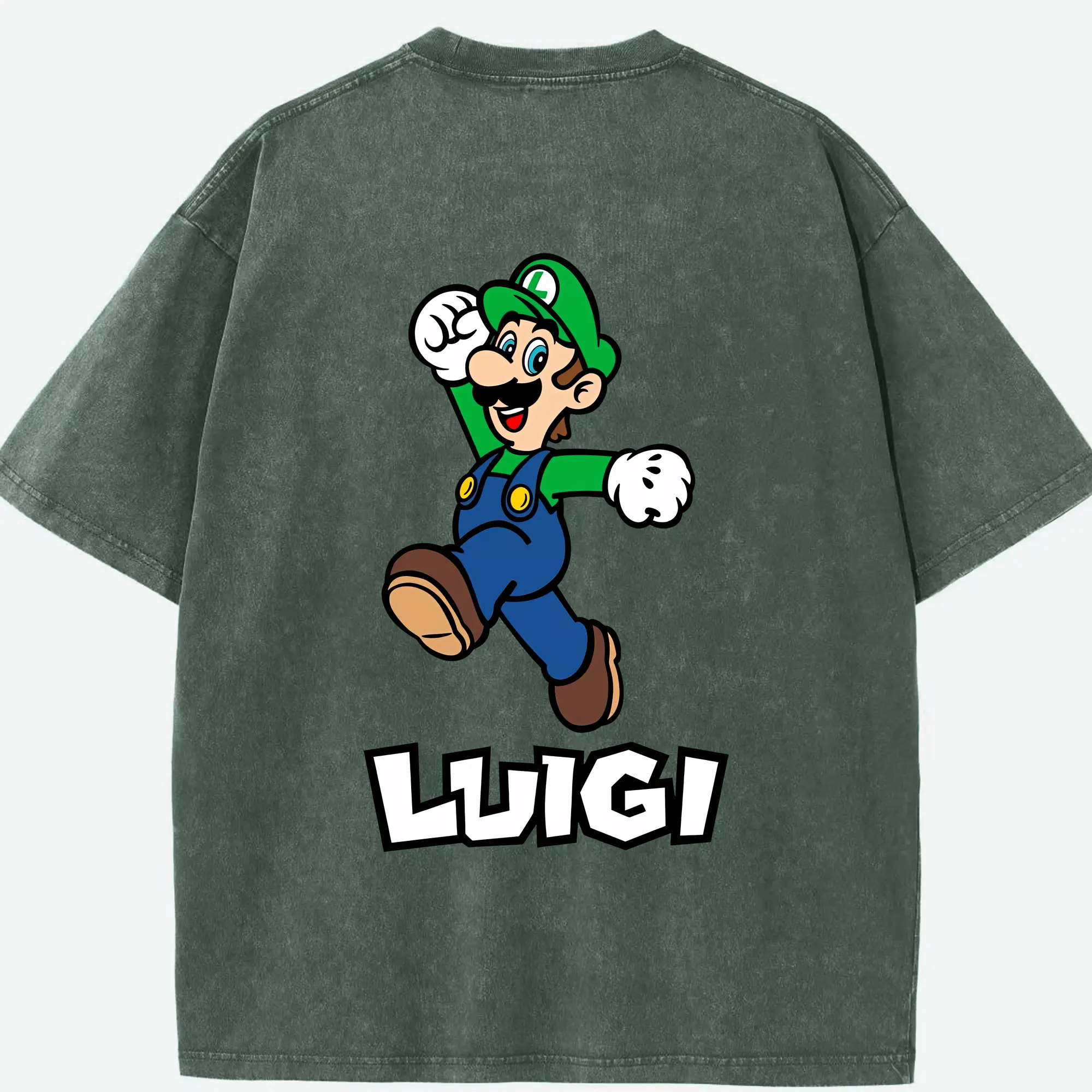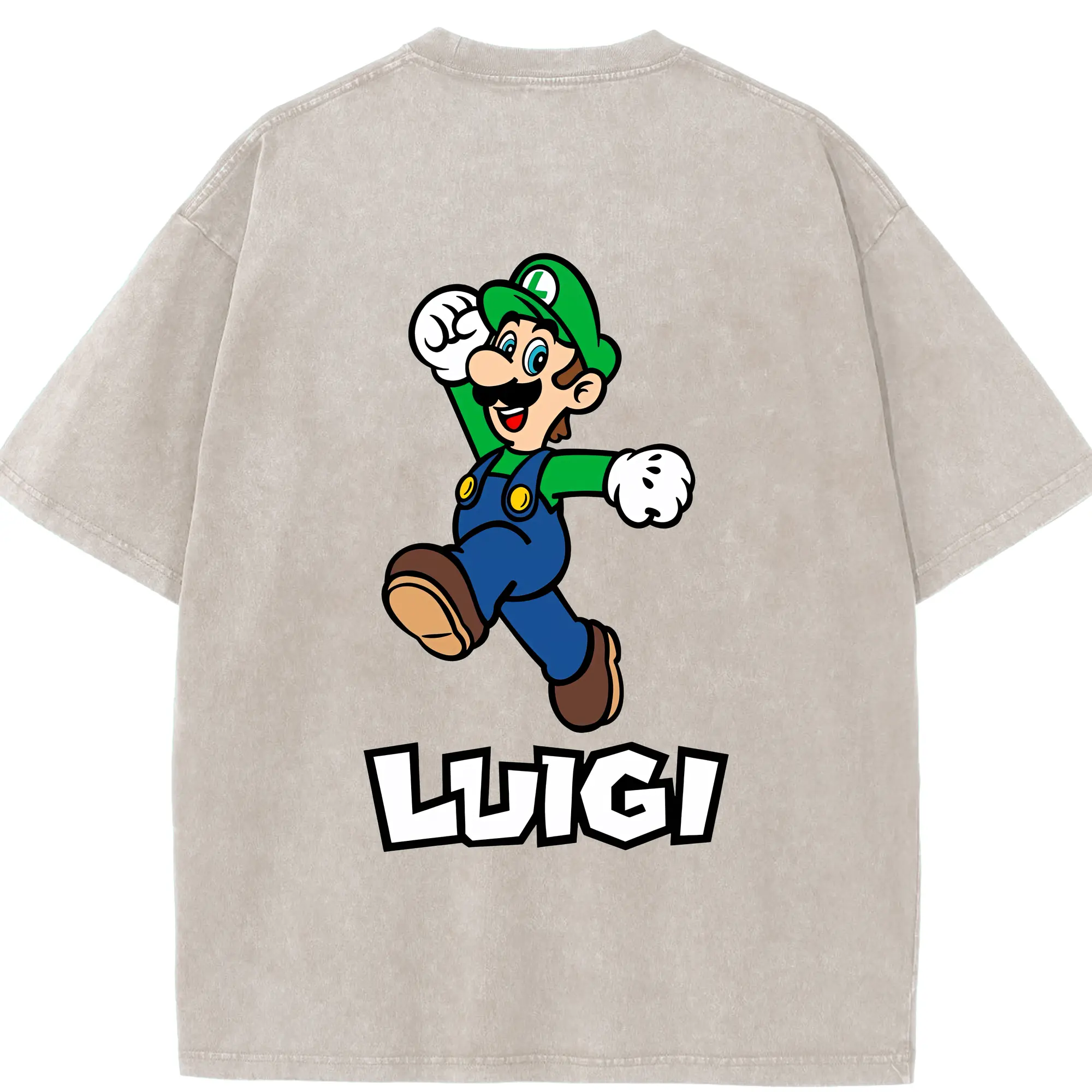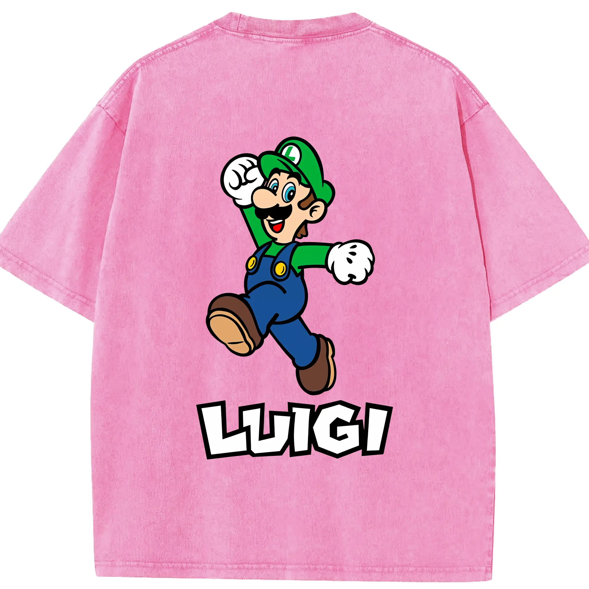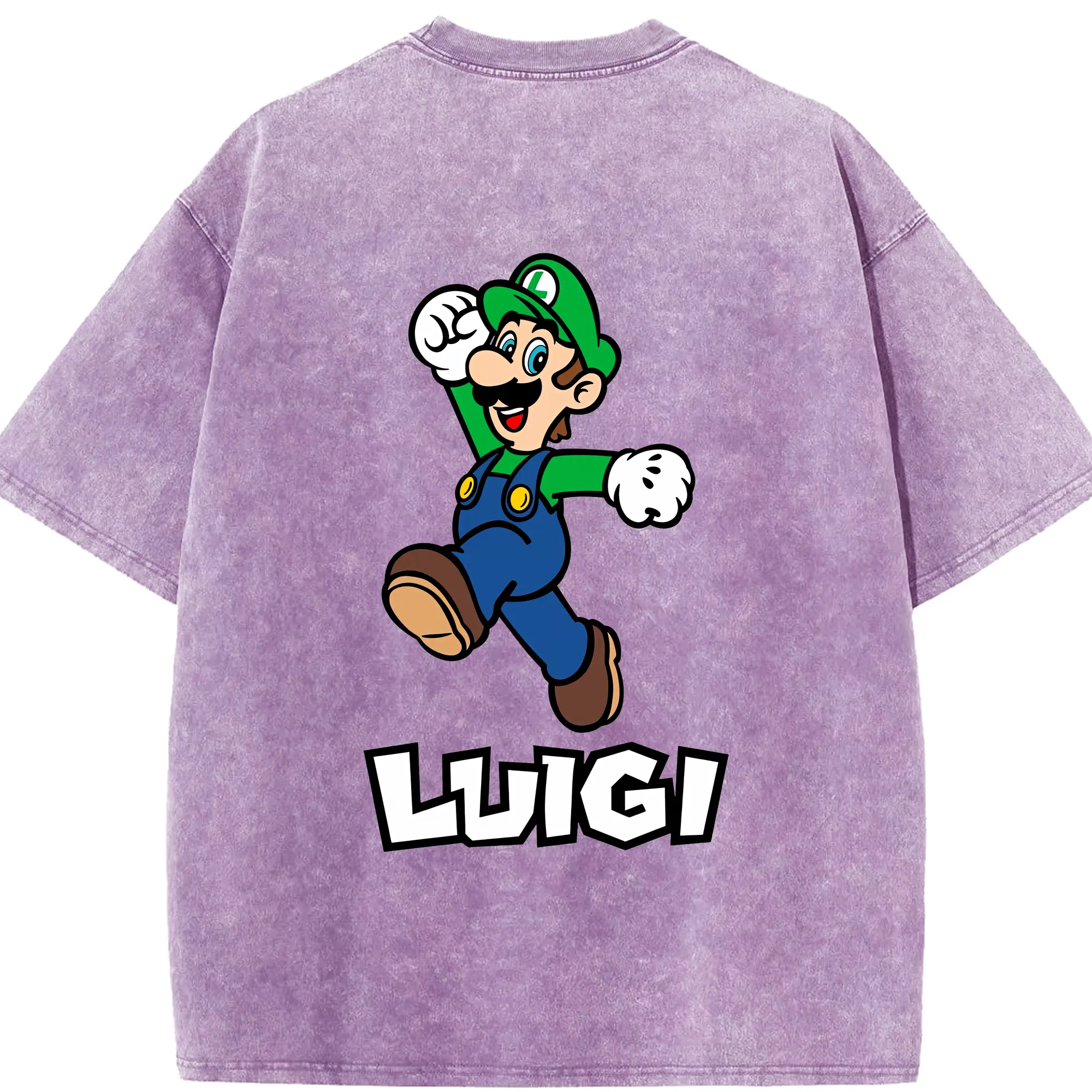 マリオ グッズ ルイージ - 綿100% ヴィンテージ風 半袖Tシャツ ・ フロントプリント ・ 柔らか肌触り ・ 通気性 快適 ・ スポーツ カジュアル 外出用