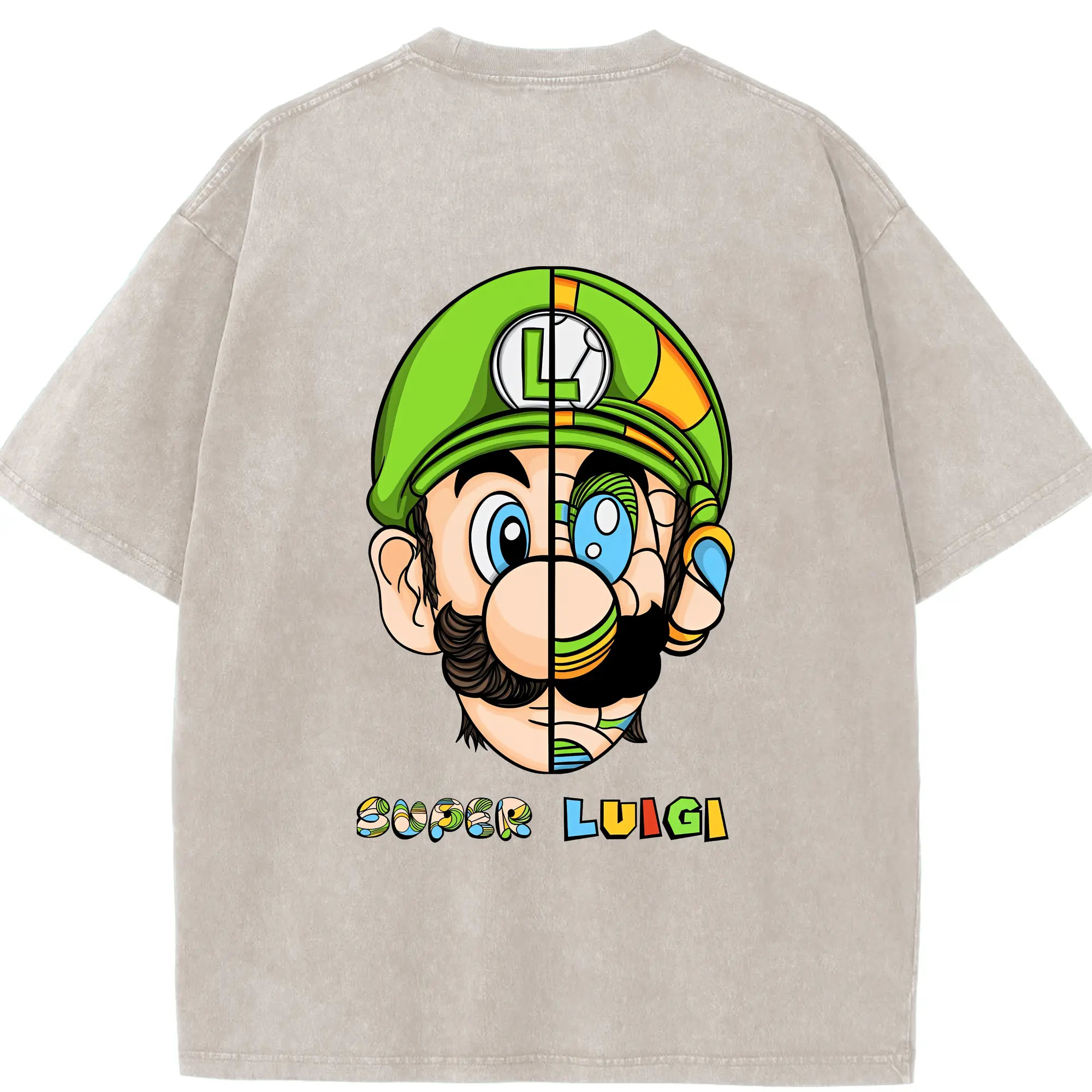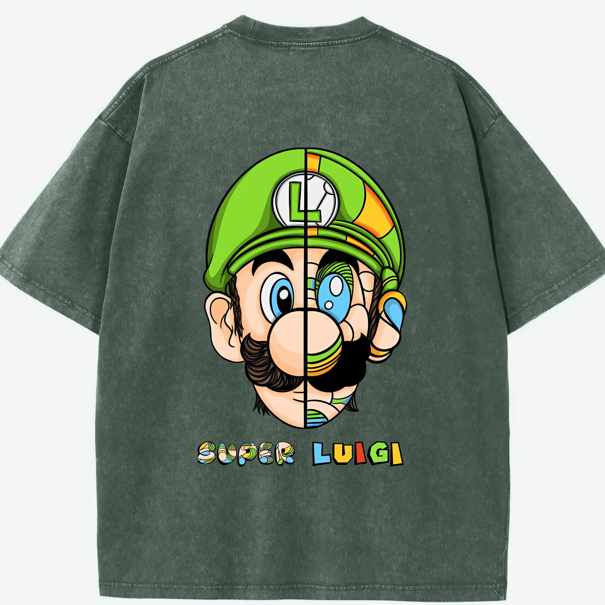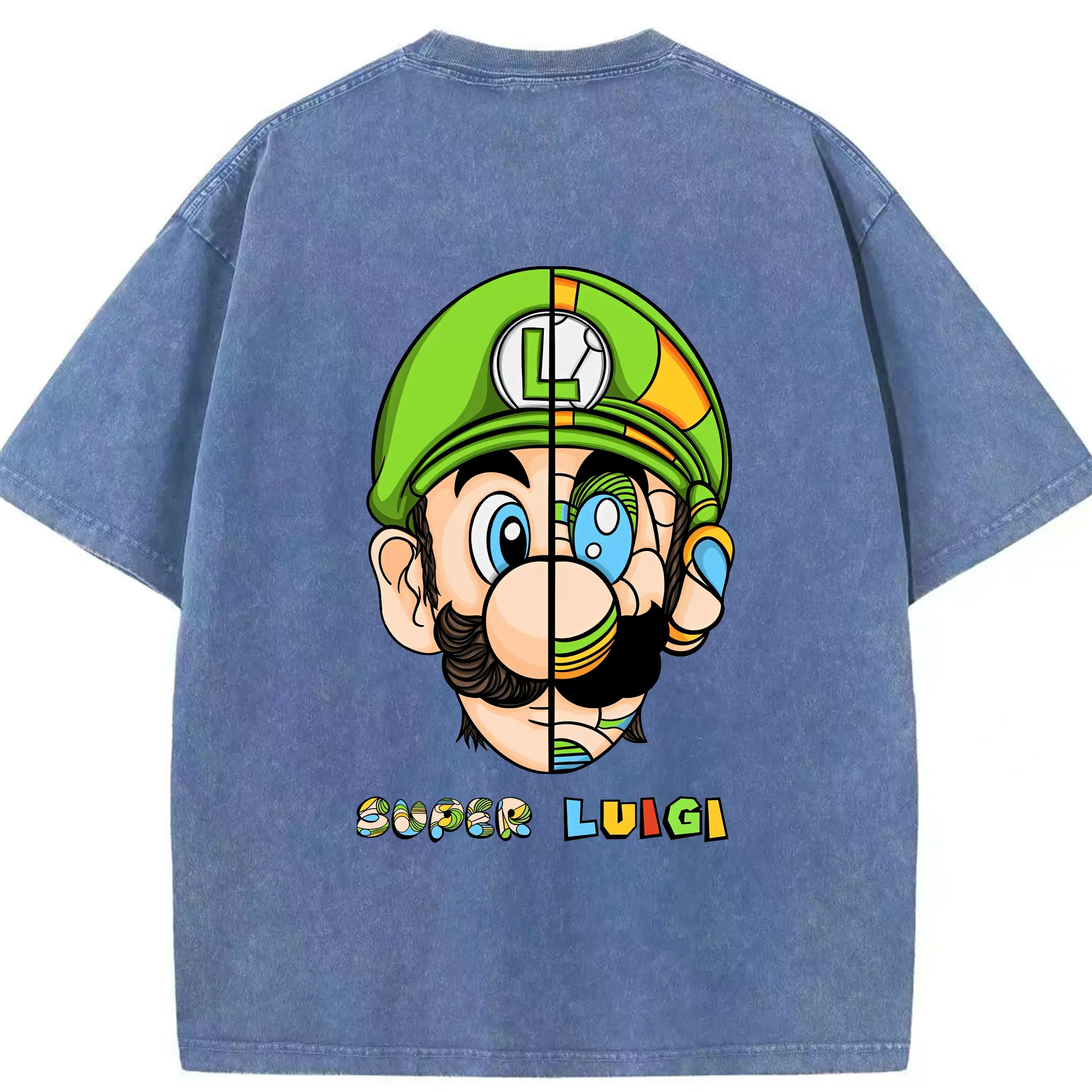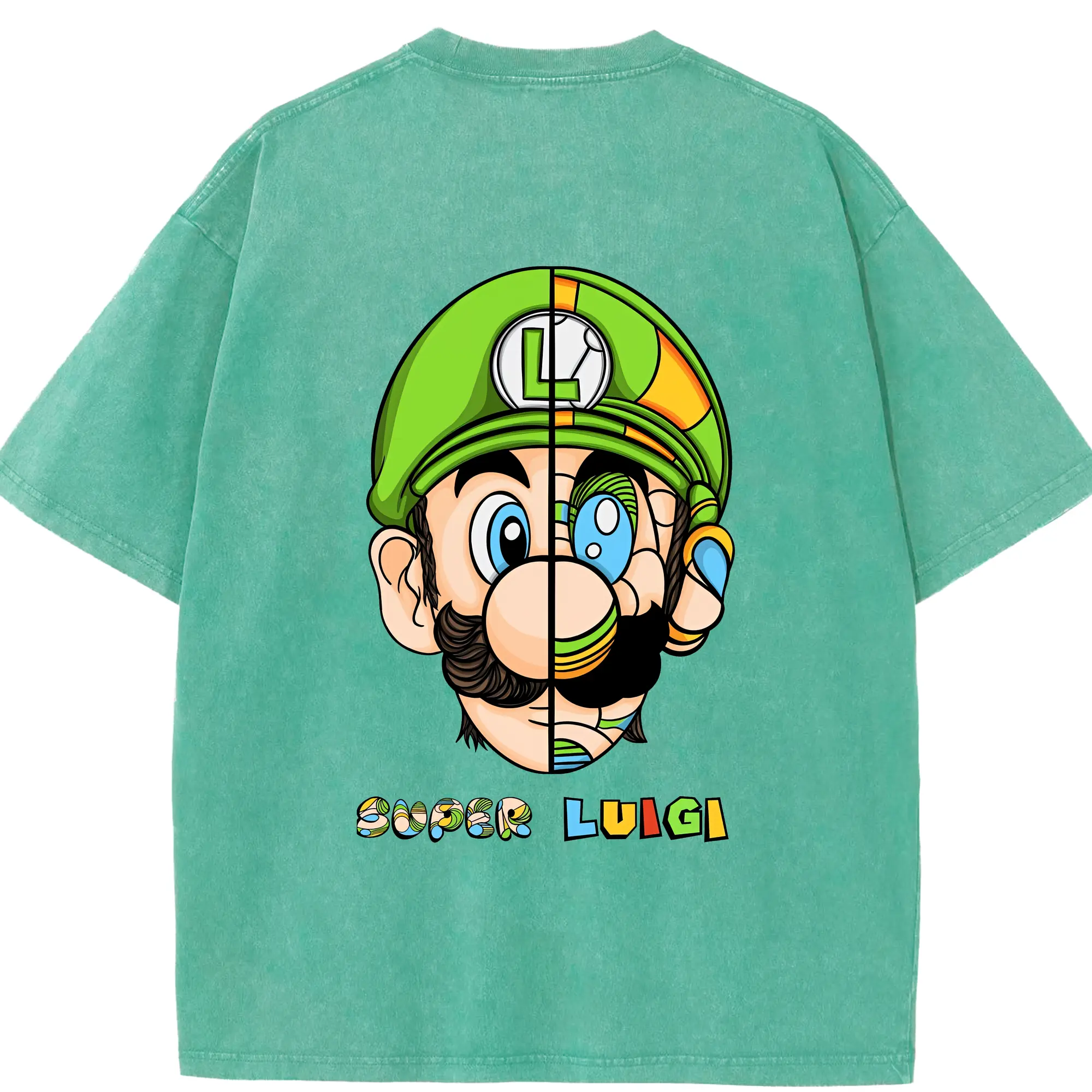 マリオ グッズ ルイージ - 綿100% ヴィンテージ風 半袖Tシャツ ・ フロントプリント ・ 柔らか肌触り ・ 通気性 快適 ・ スポーツ カジュアル 外出用