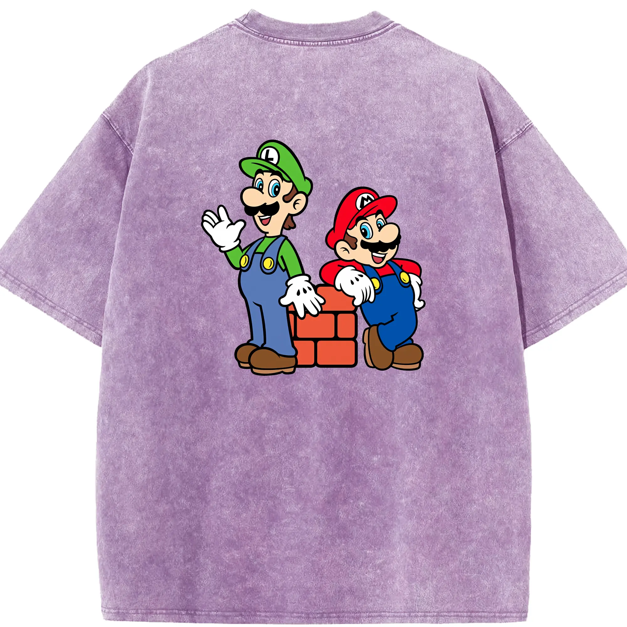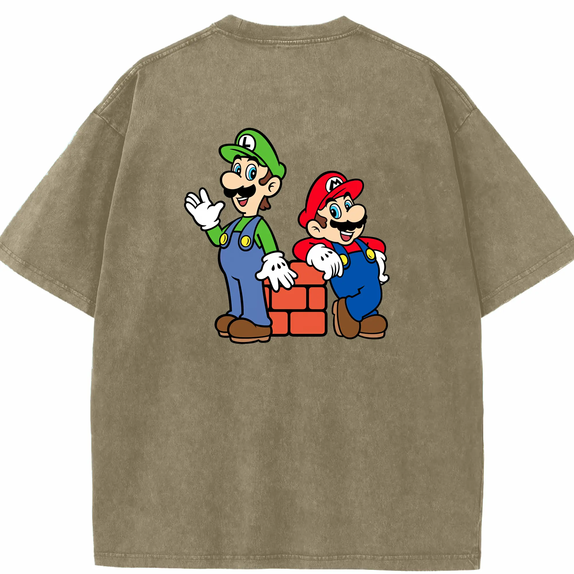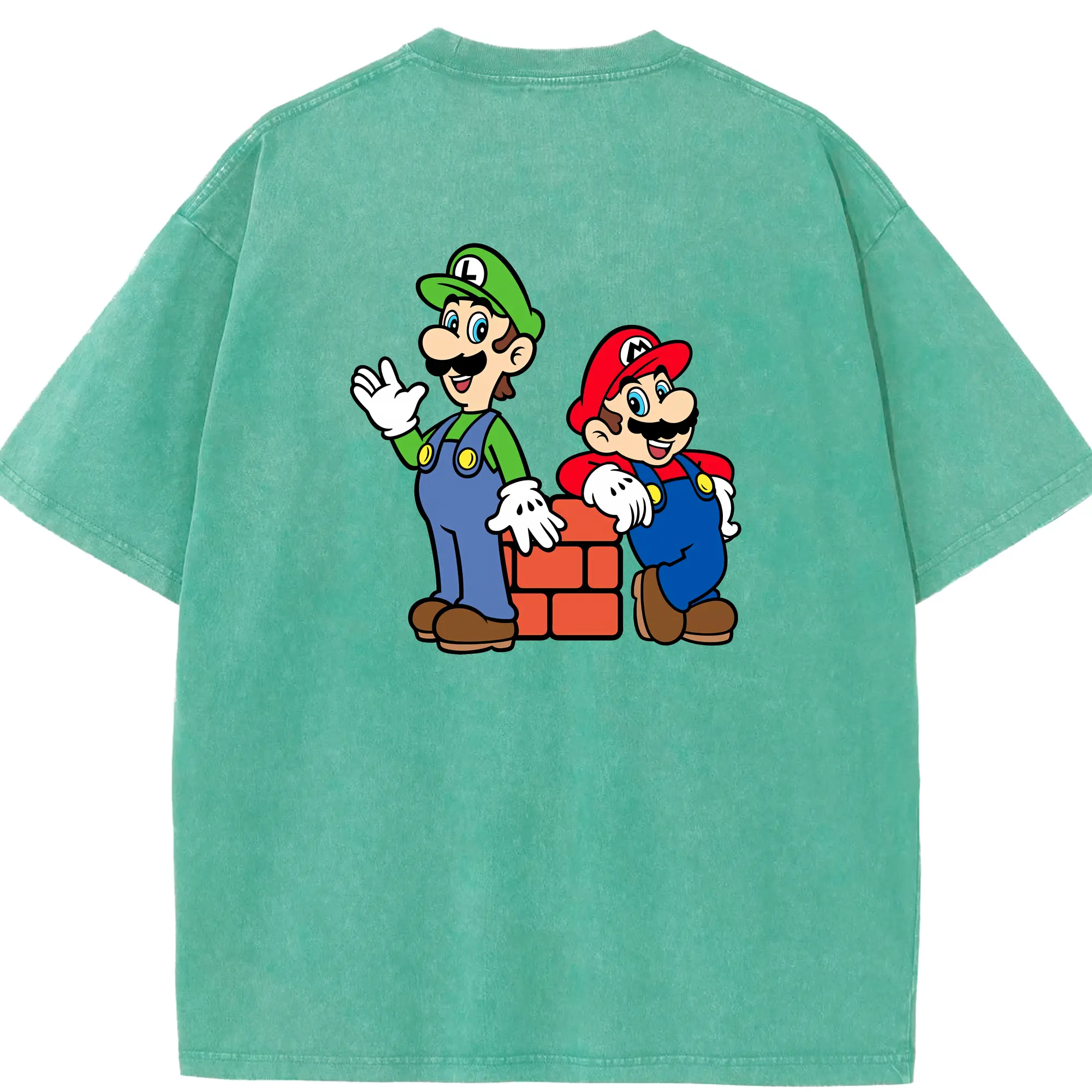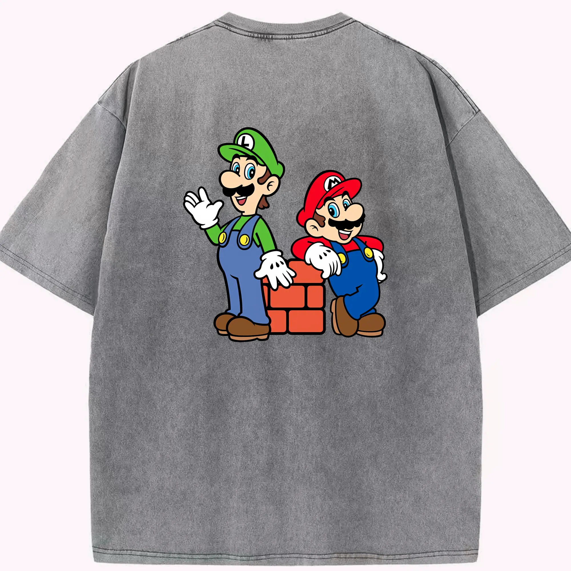 マリオ グッズ ルイージ - 綿100% ヴィンテージ風 半袖Tシャツ ・ フロントプリント ・ 柔らか肌触り ・ 通気性 快適 ・ スポーツ カジュアル 外出用