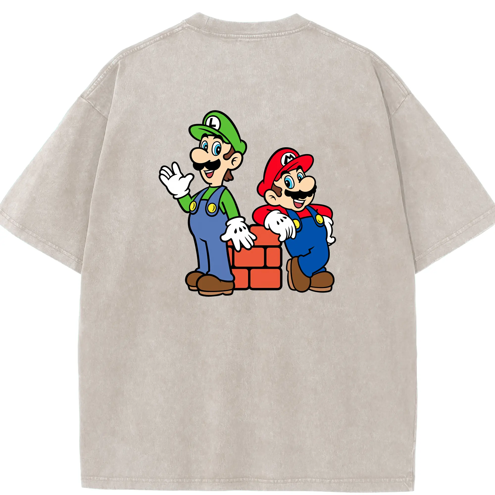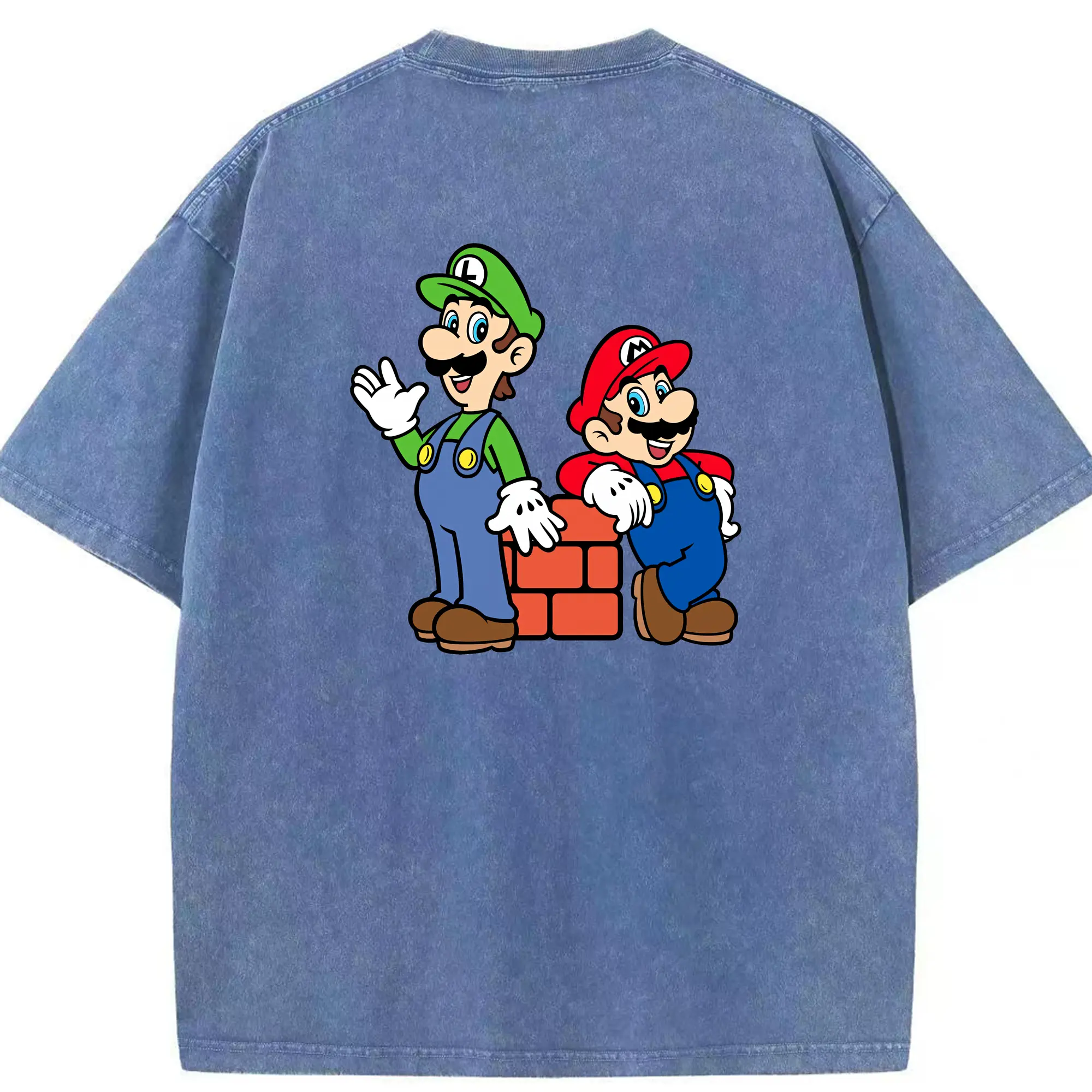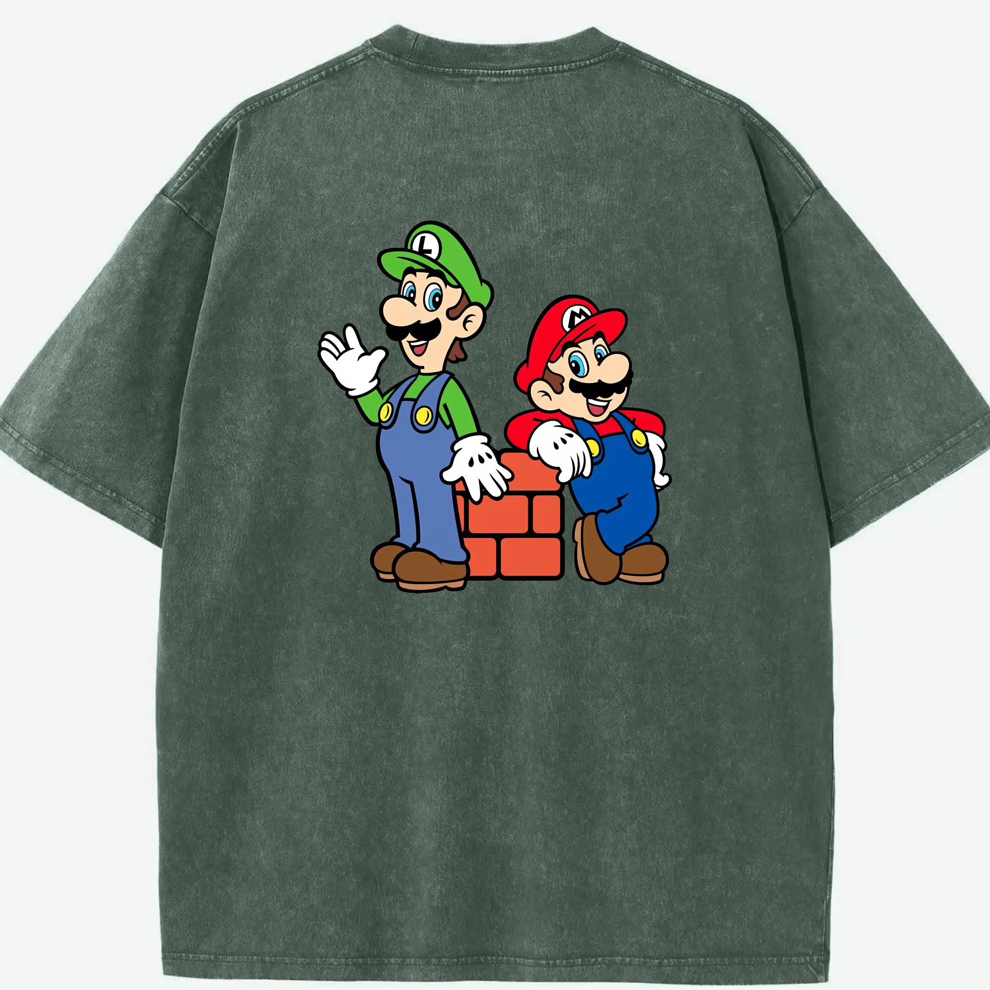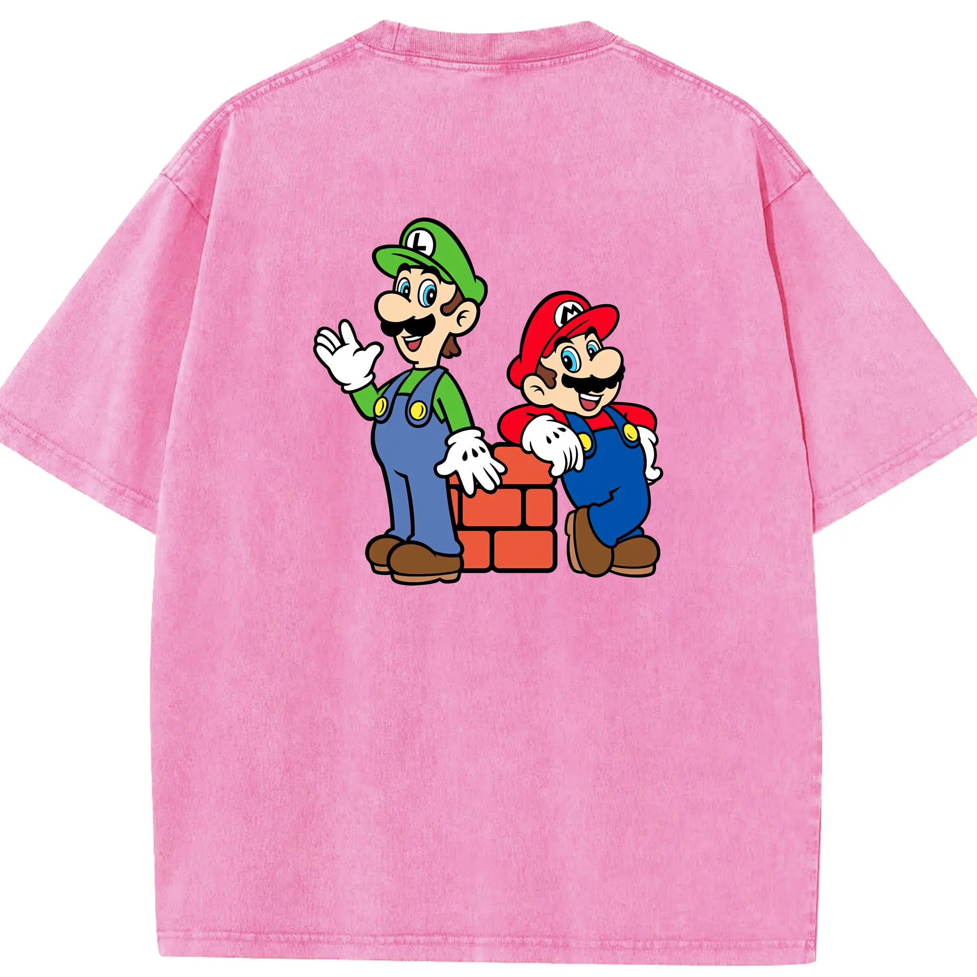マリオ グッズ ルイージ - 綿100% ヴィンテージ風 半袖Tシャツ ・ フロントプリント ・ 柔らか肌触り ・ 通気性 快適 ・ スポーツ カジュアル 外出用