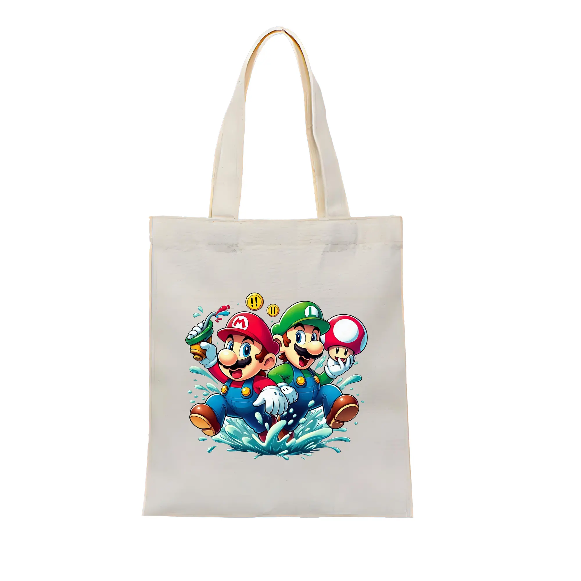 マリオ グッズ ルイージ - 縦型キャンバス手提げバッグ(トートバッグ) ・ キャンバス素材 ・ ショッピング用 ・ 軽量 丈夫 お手入れ簡単