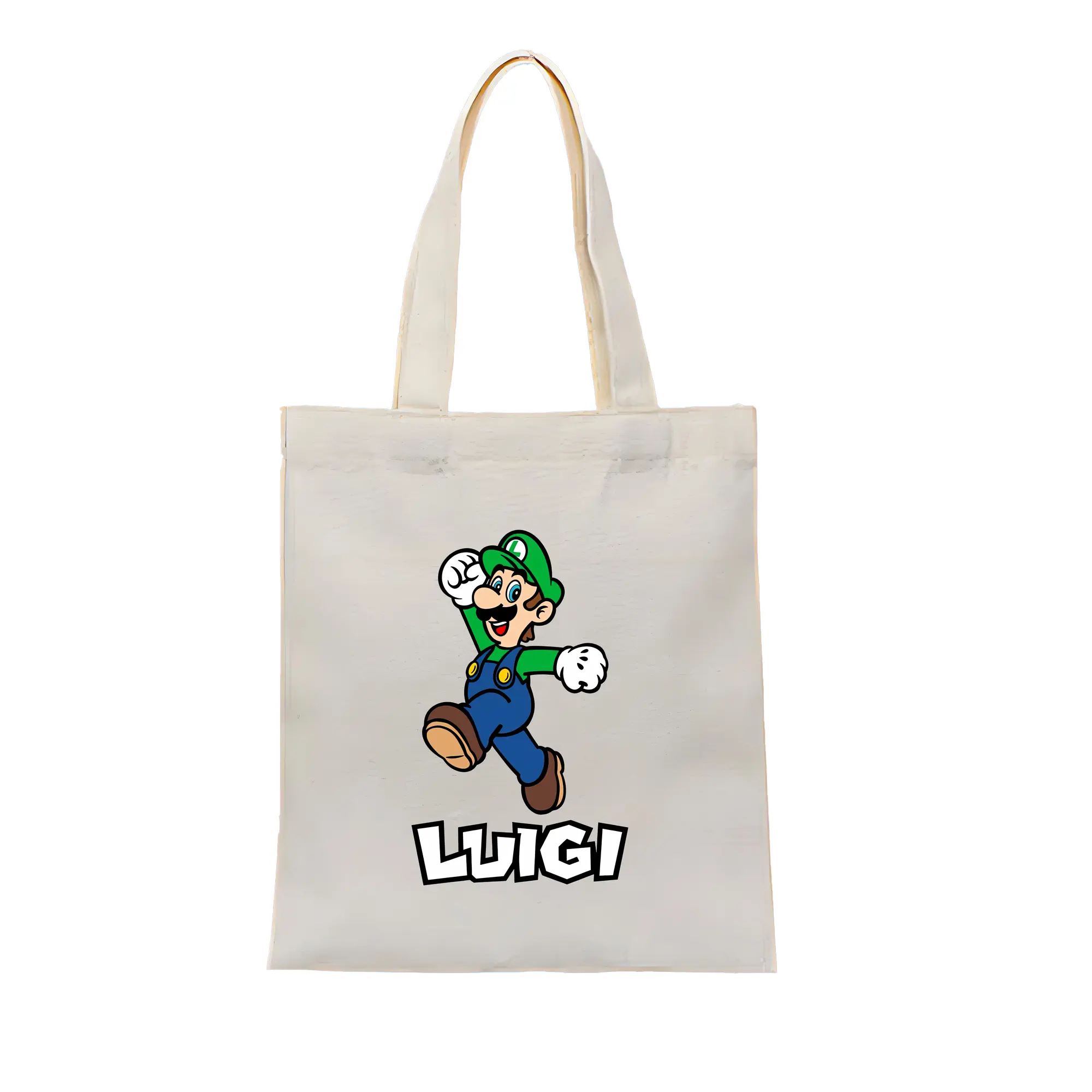 マリオ グッズ ルイージ - 縦型キャンバス手提げバッグ(トートバッグ) ・ キャンバス素材 ・ ショッピング用 ・ 軽量 丈夫 お手入れ簡単