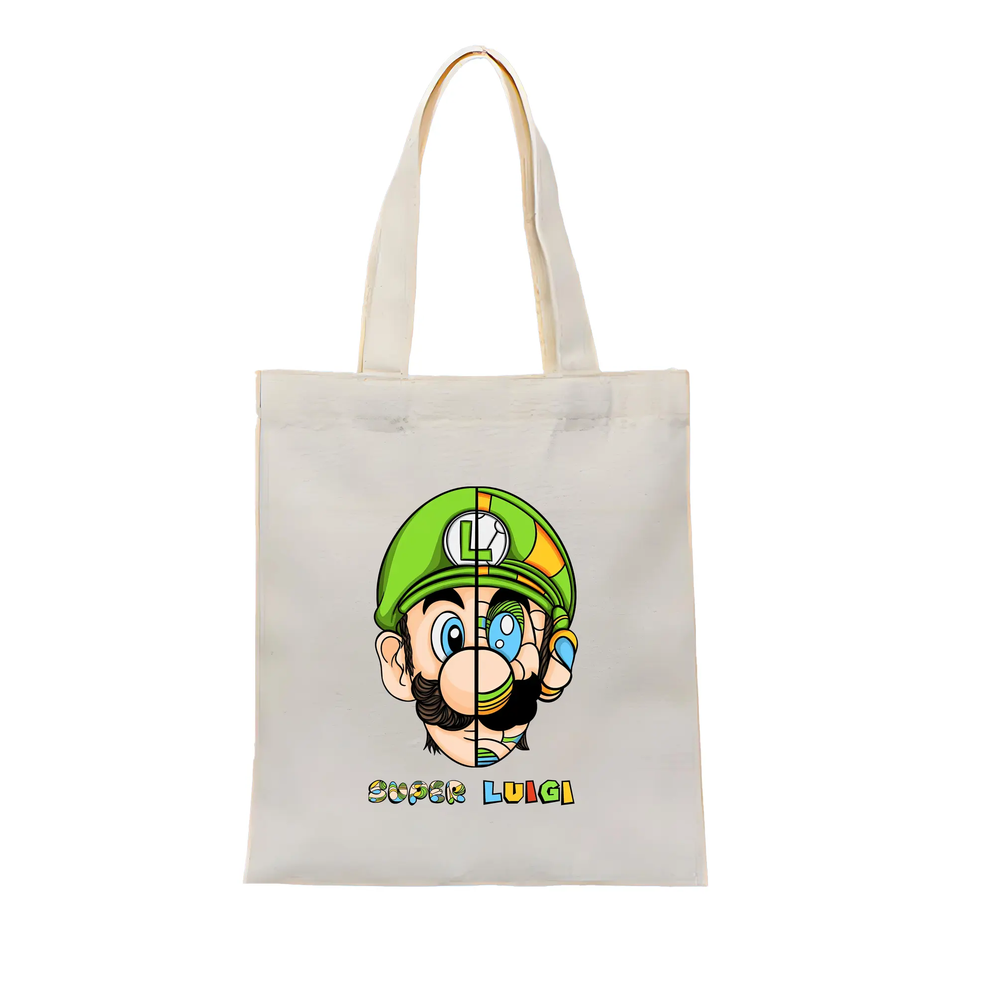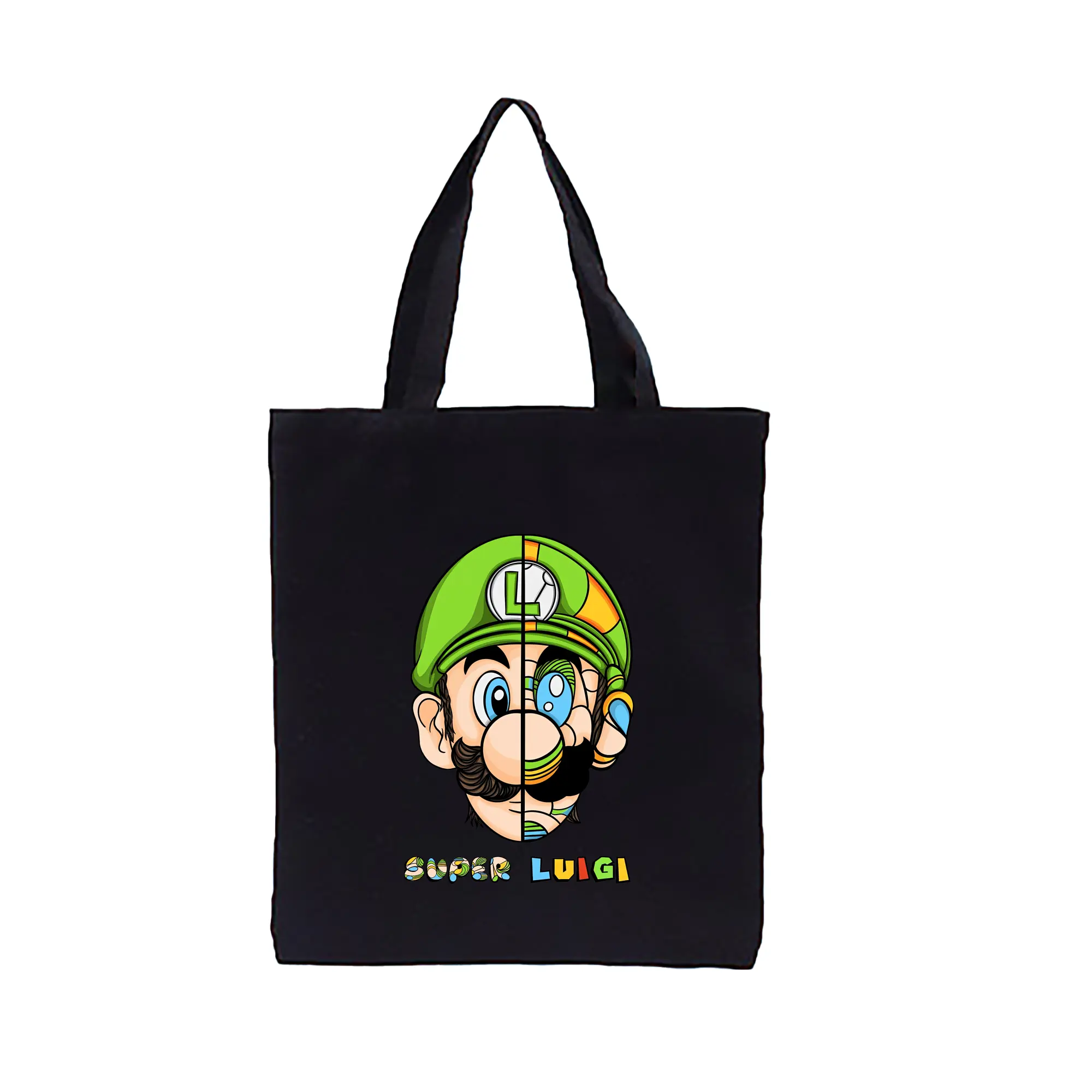 マリオ グッズ ルイージ - 縦型キャンバス手提げバッグ(トートバッグ) ・ キャンバス素材 ・ ショッピング用 ・ 軽量 丈夫 お手入れ簡単