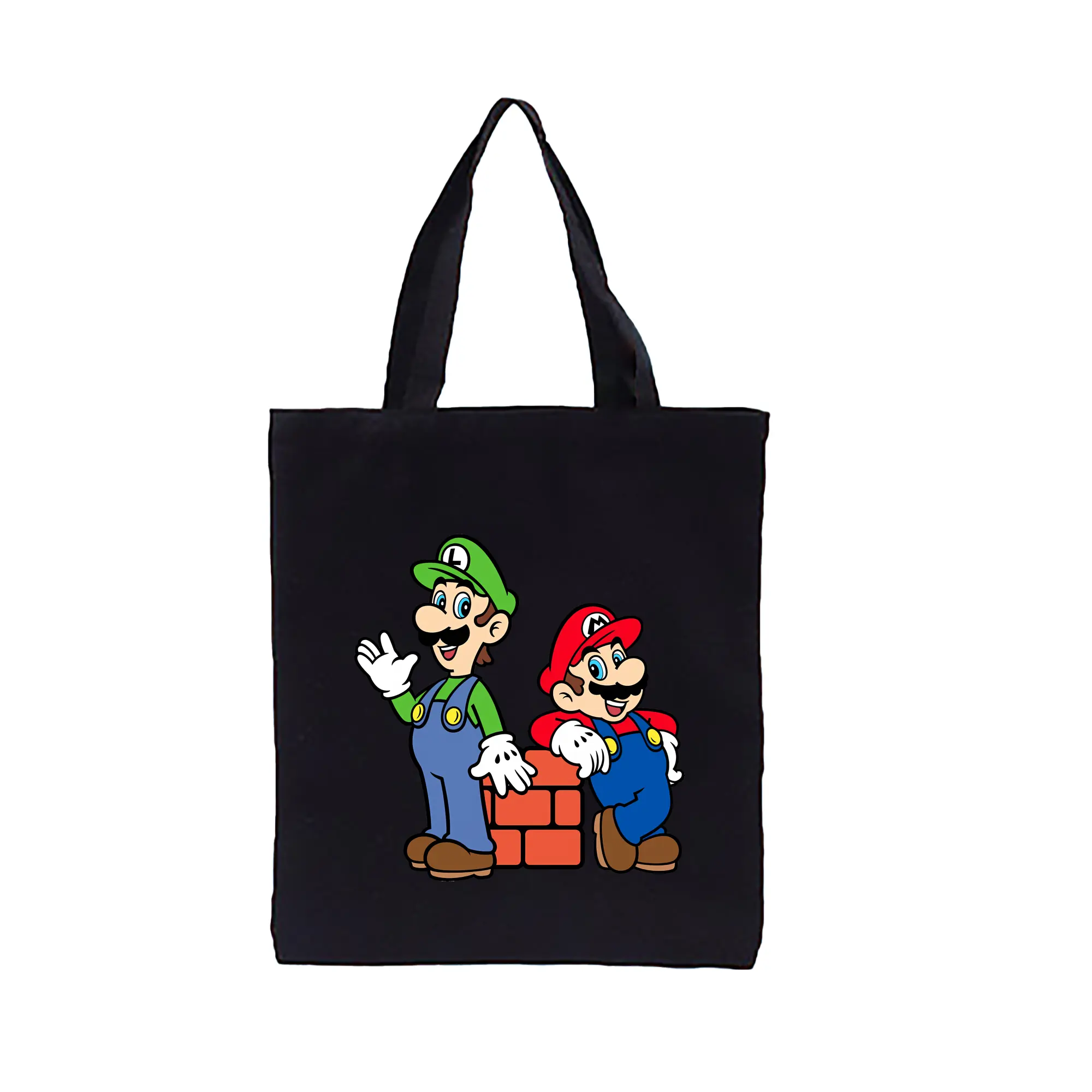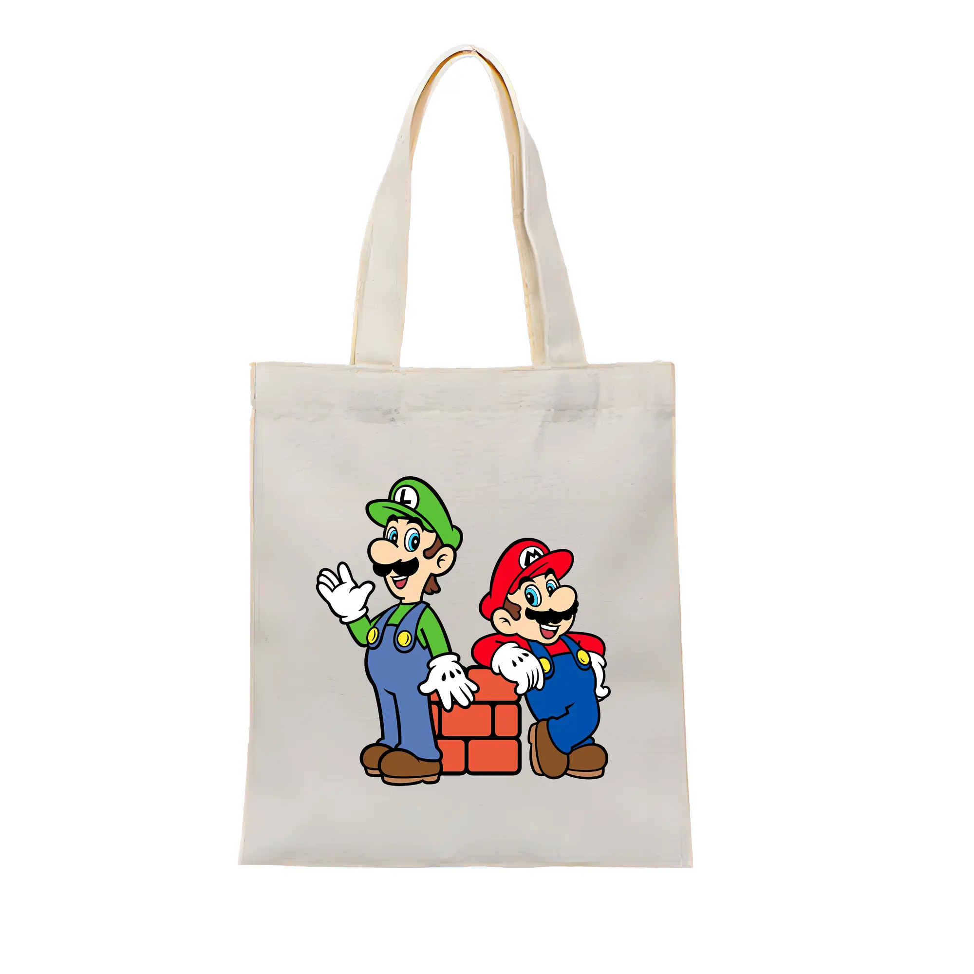 マリオ グッズ ルイージ - 縦型キャンバス手提げバッグ(トートバッグ) ・ キャンバス素材 ・ ショッピング用 ・ 軽量 丈夫 お手入れ簡単