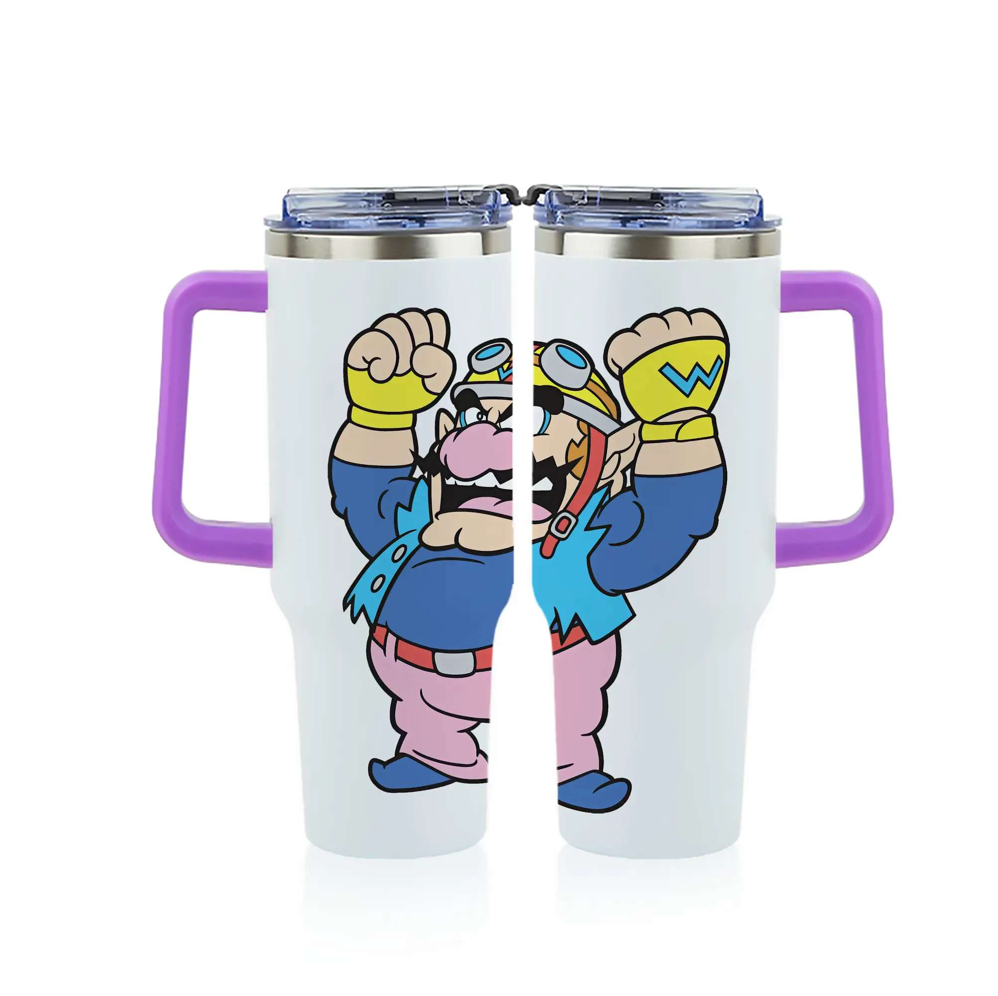 マリオ グッズ ワリオ - 1200mL フルプリント車用タンブラー ・ 304ステンレス 内側 ・ 201ステンレス 外側 ・ 保温 保冷 ・ 通勤 ドライブ アウトドア用