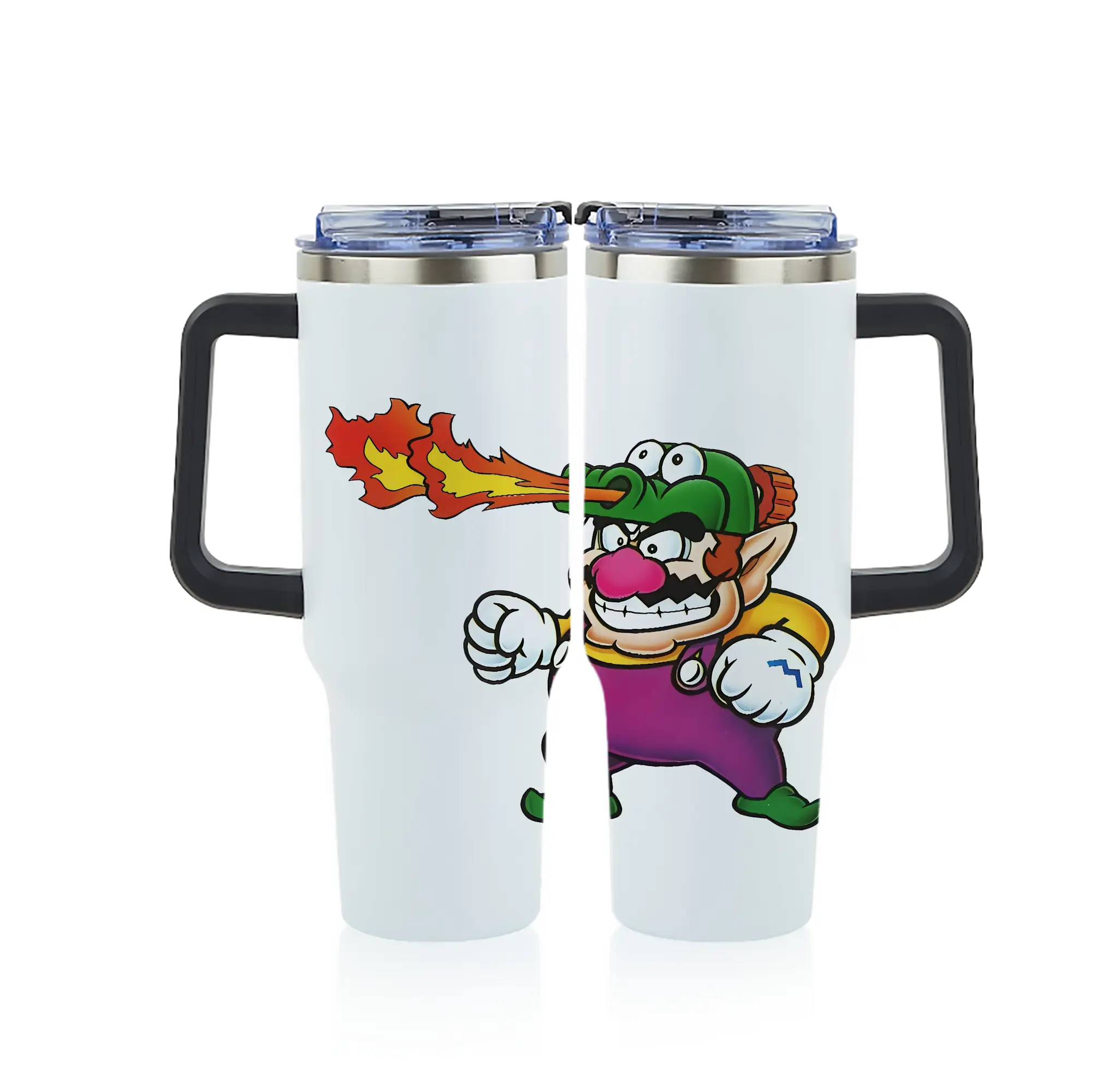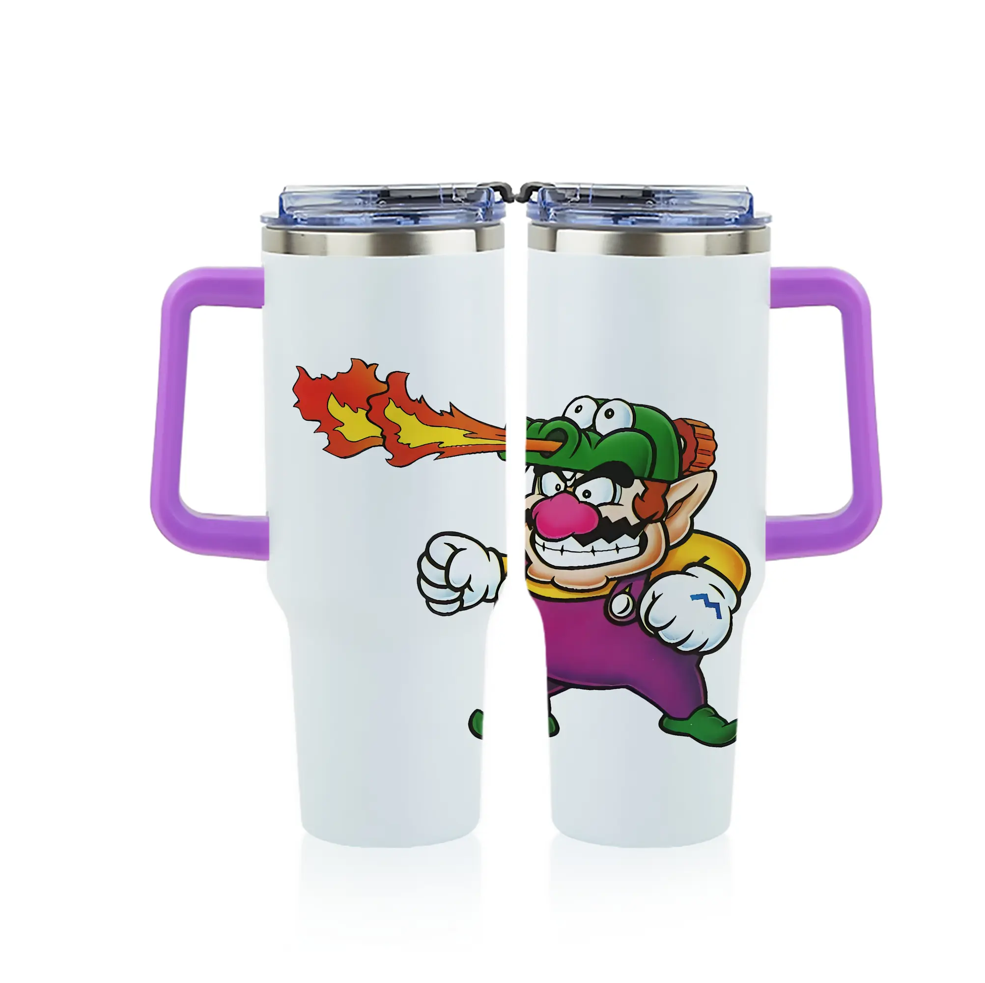 マリオ グッズ ワリオ - 1200mL フルプリント車用タンブラー ・ 304ステンレス 内側 ・ 201ステンレス 外側 ・ 保温 保冷 ・ 通勤 ドライブ アウトドア用