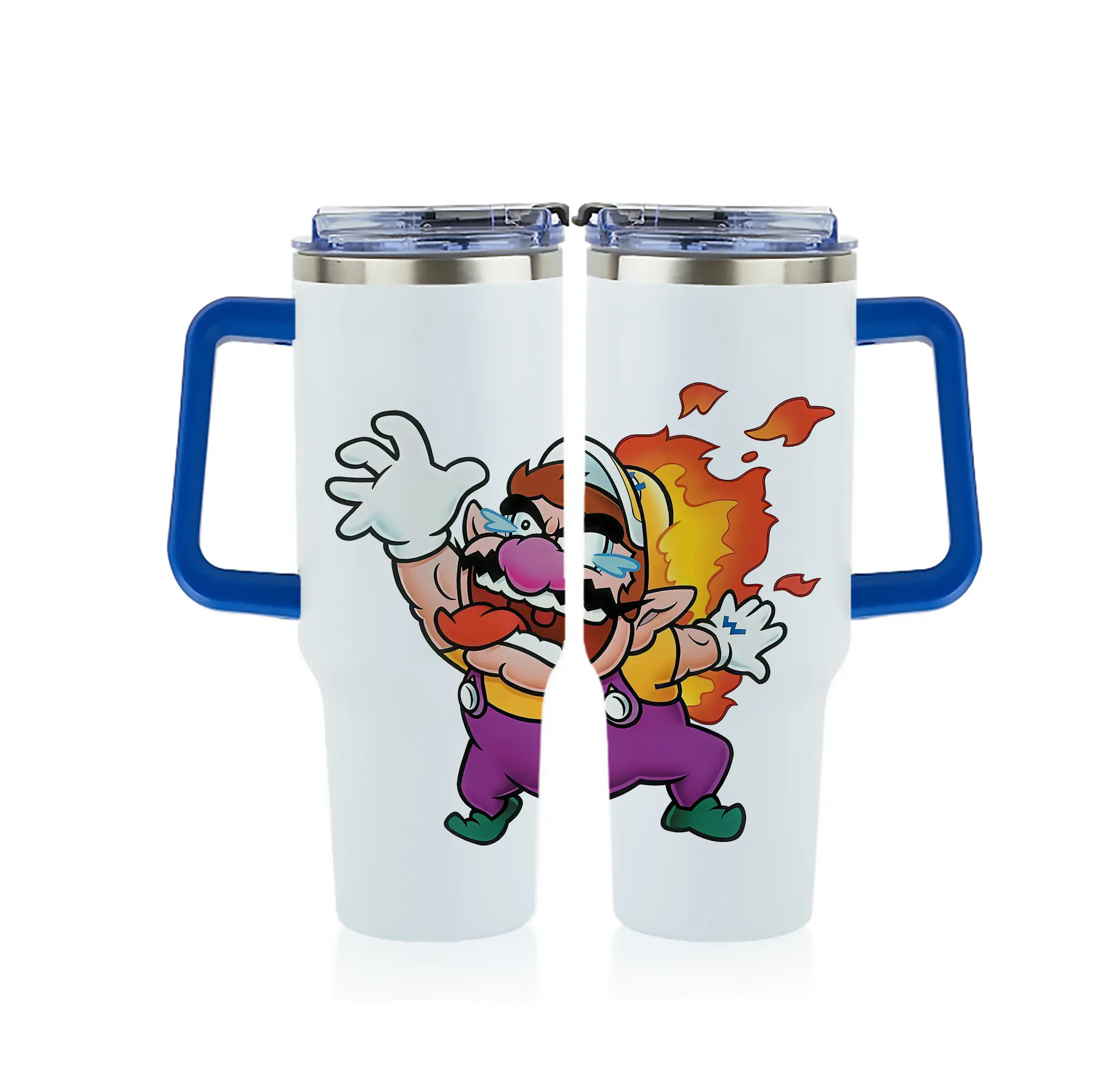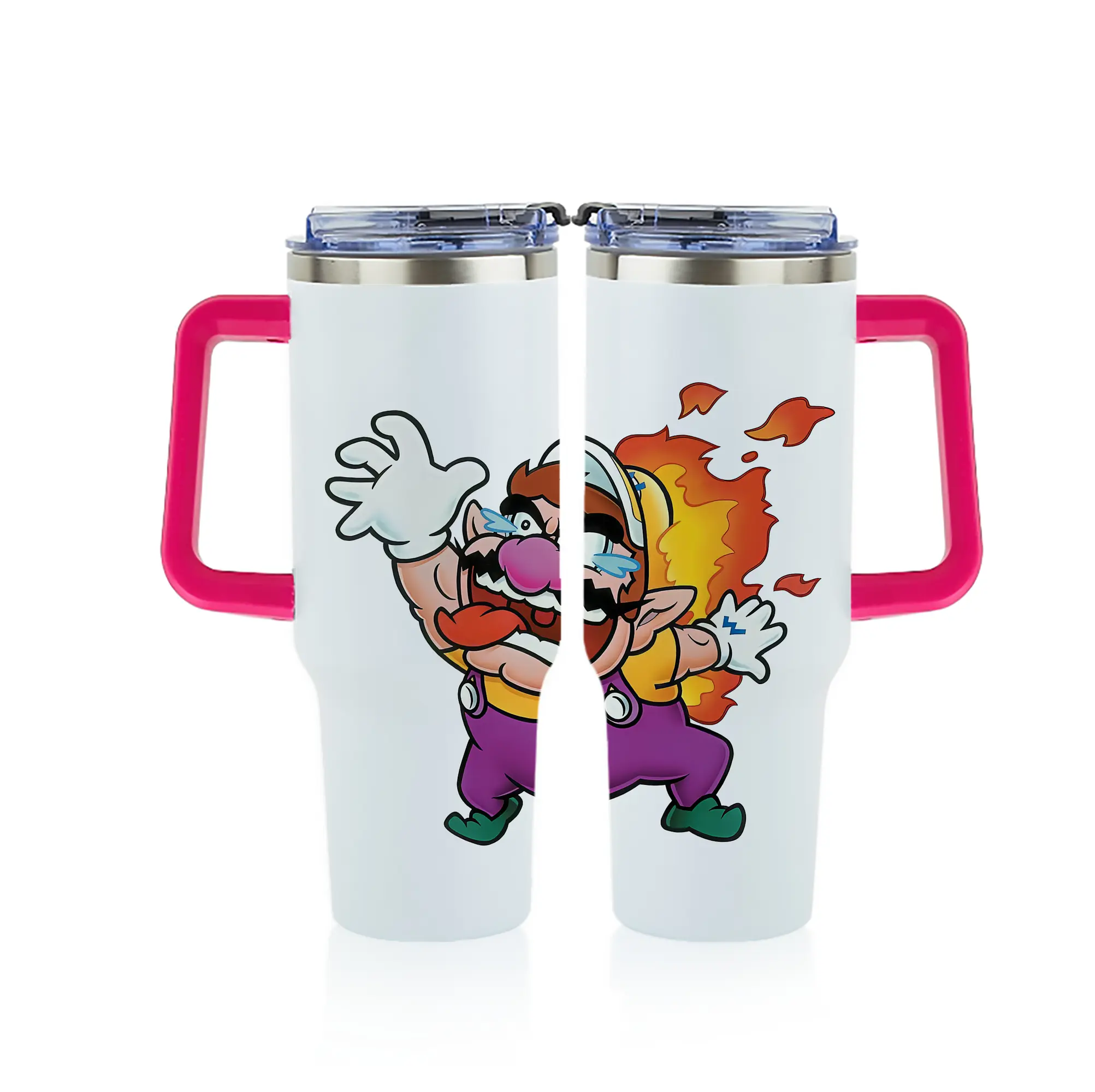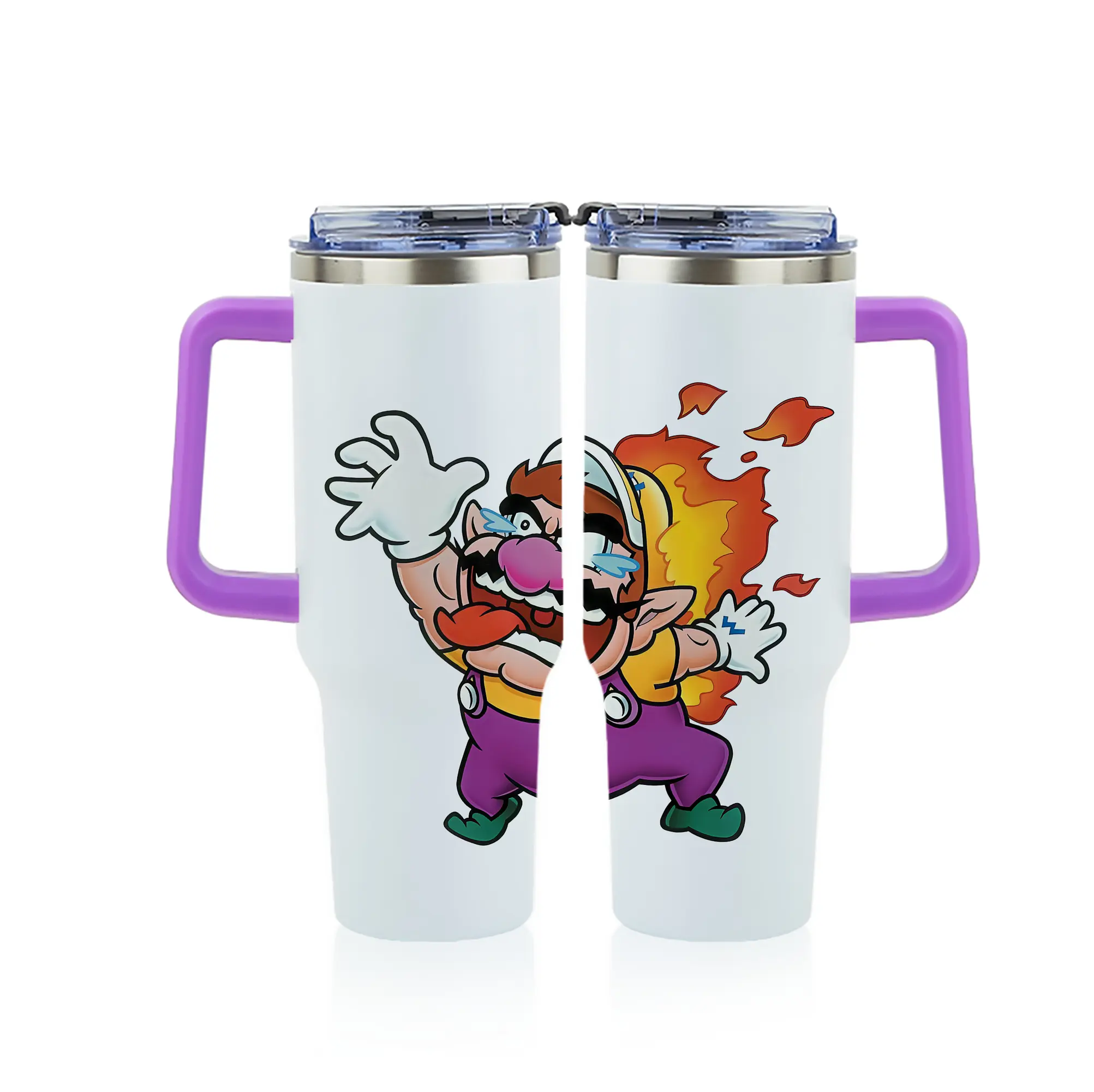 マリオ グッズ ワリオ - 1200mL フルプリント車用タンブラー ・ 304ステンレス 内側 ・ 201ステンレス 外側 ・ 保温 保冷 ・ 通勤 ドライブ アウトドア用