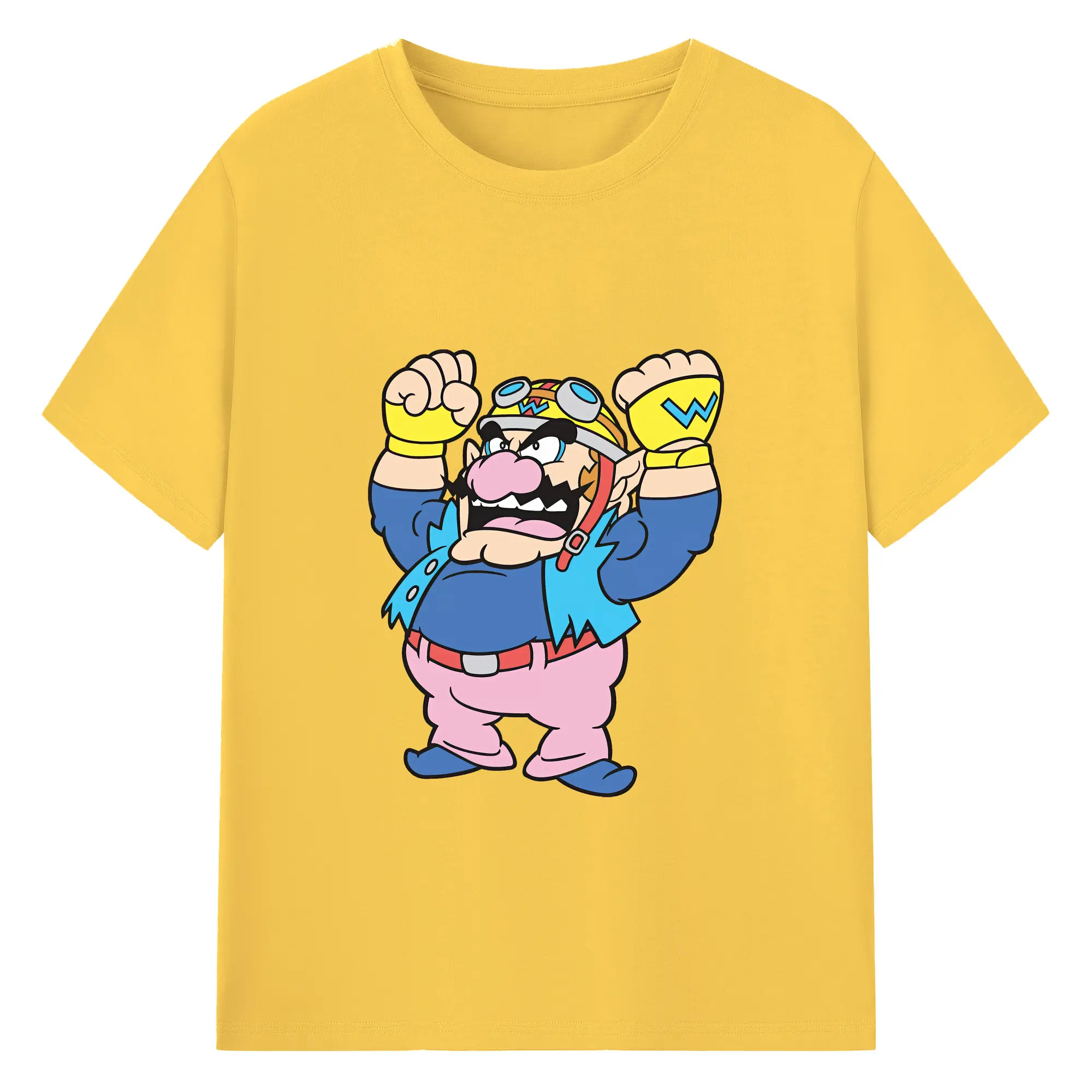 マリオ グッズ ワリオ - 綿100% 半袖Tシャツ ・ バックプリント ・ 快適 通気性 ・ 日常使い 散歩 スポーツ用