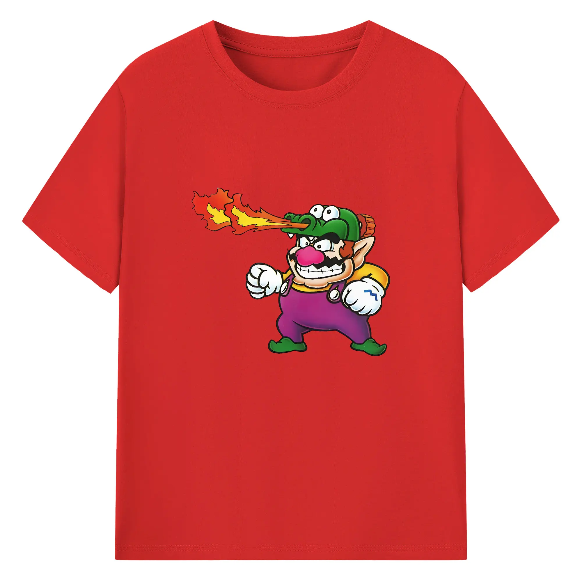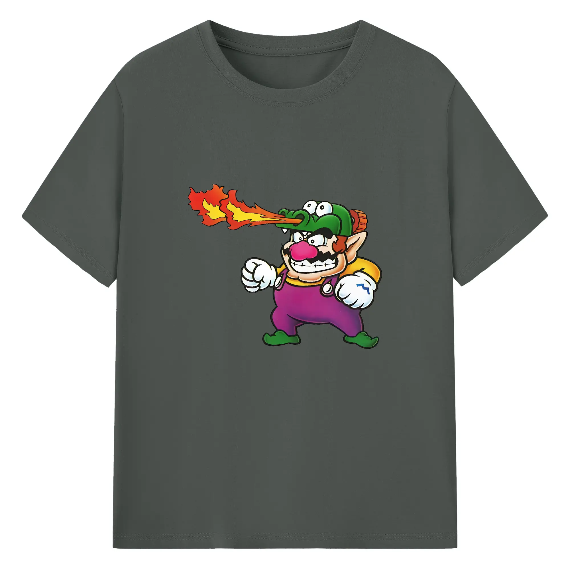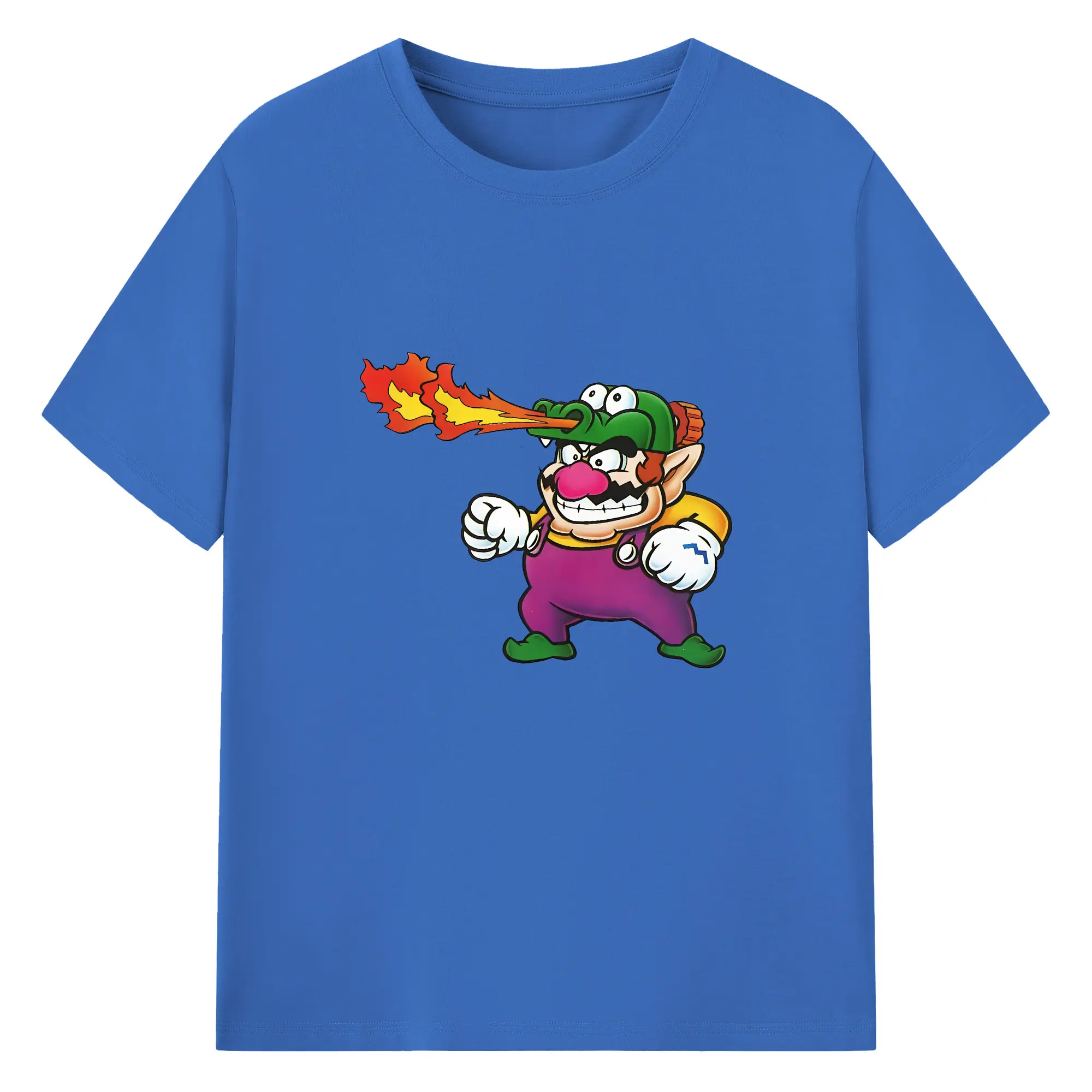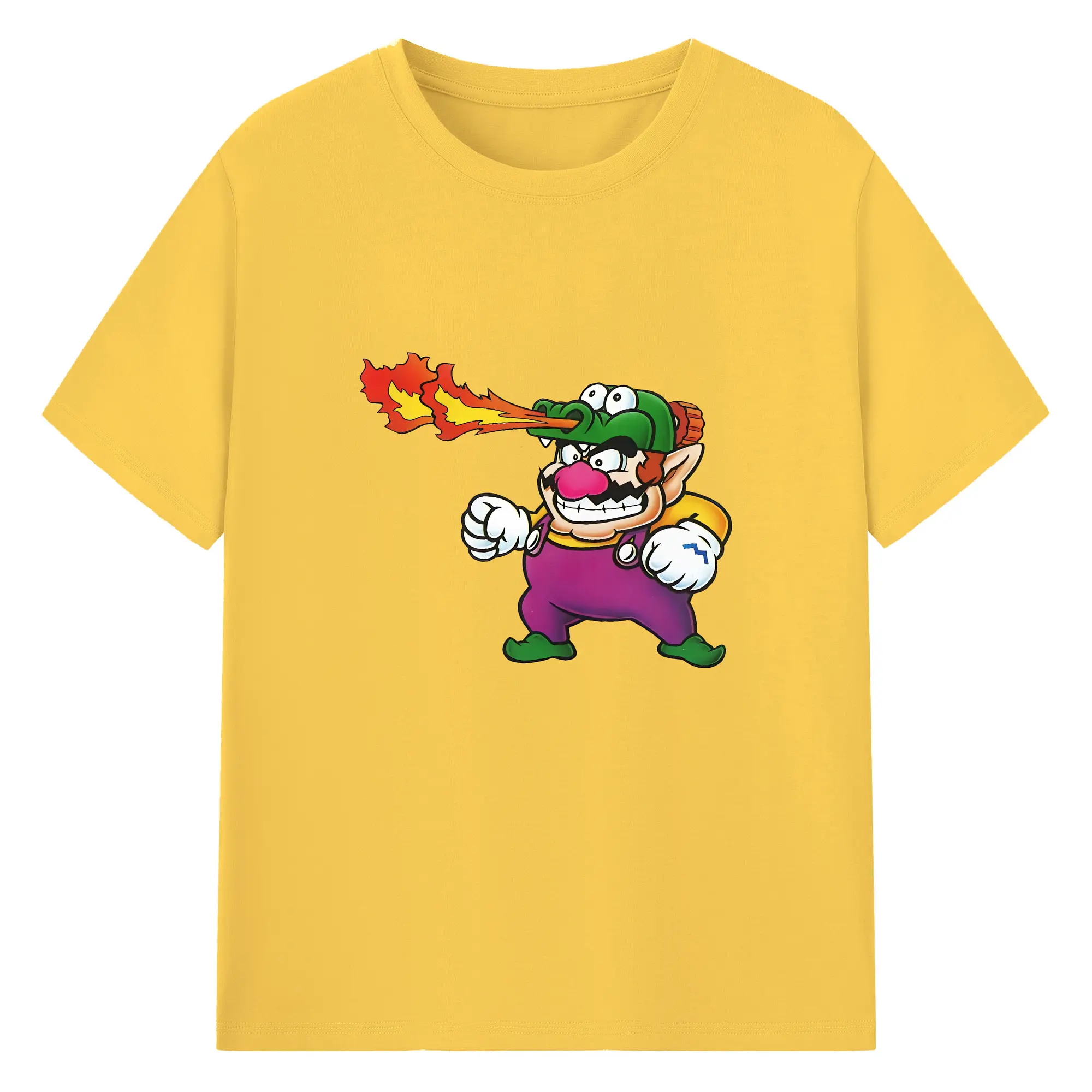 マリオ グッズ ワリオ - 綿100% 半袖Tシャツ ・ バックプリント ・ 快適 通気性 ・ 日常使い 散歩 スポーツ用