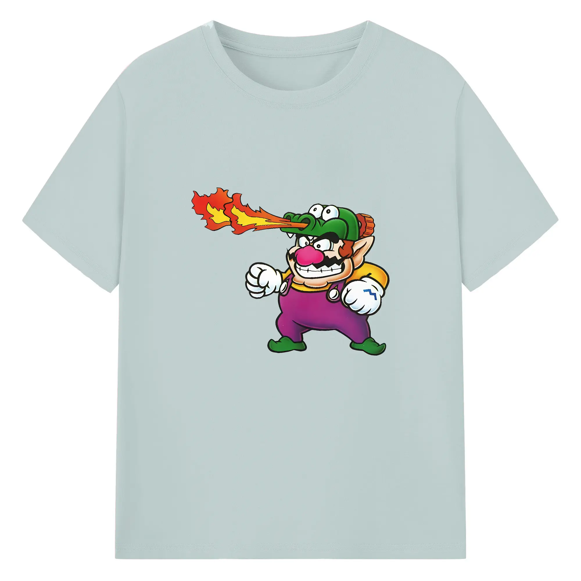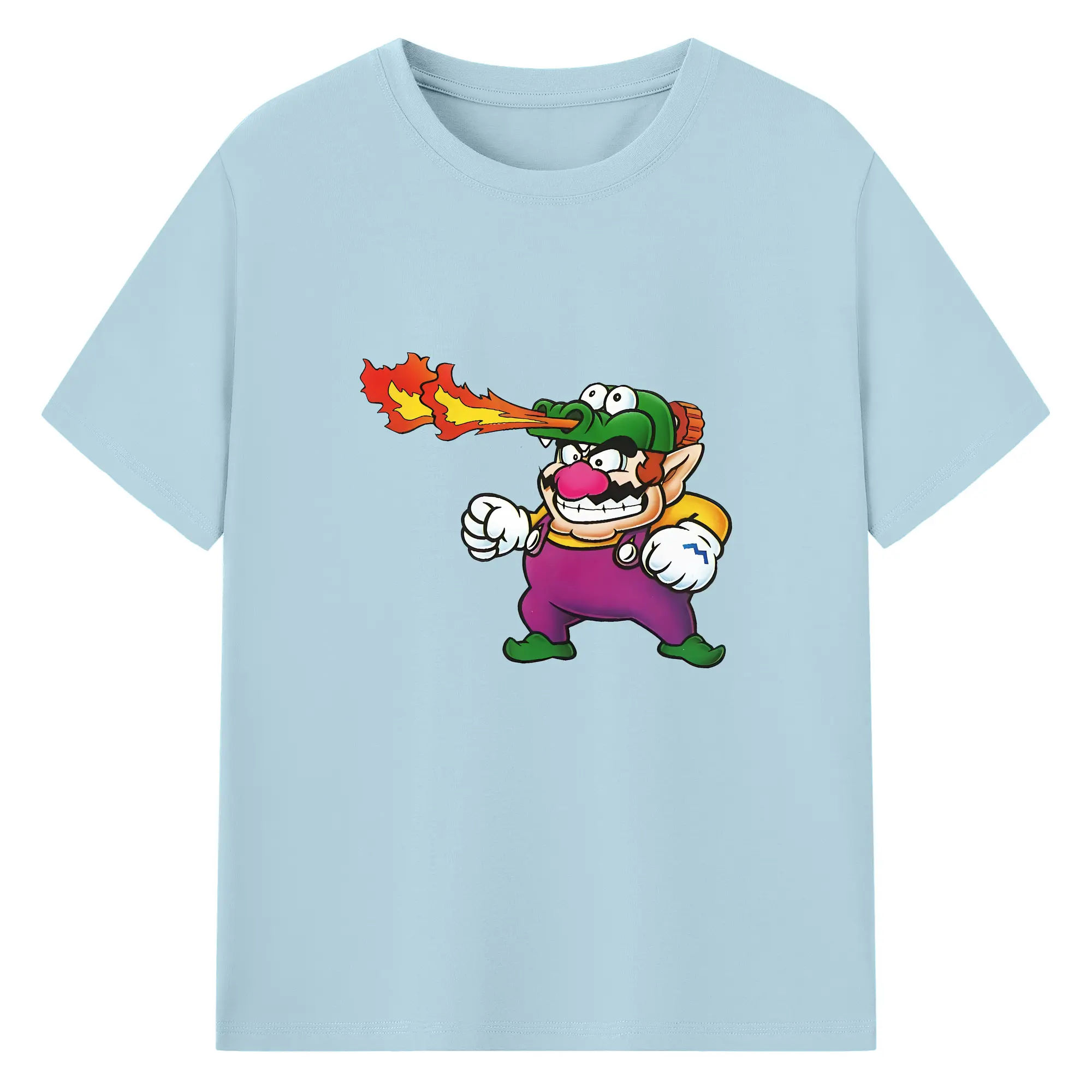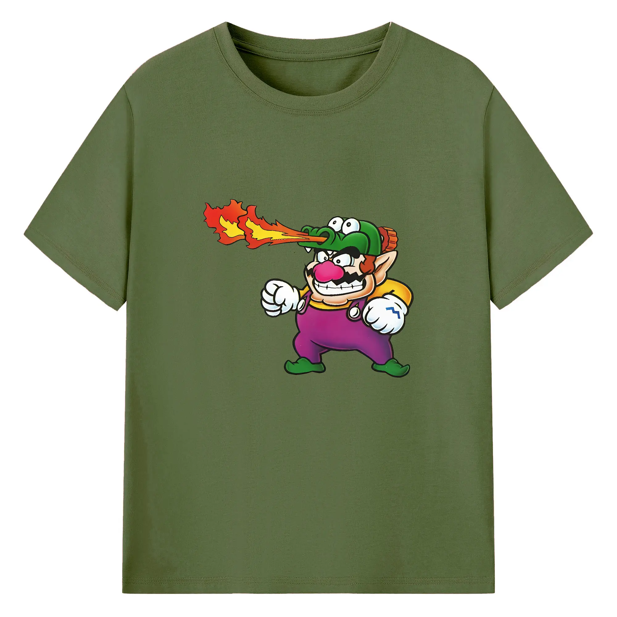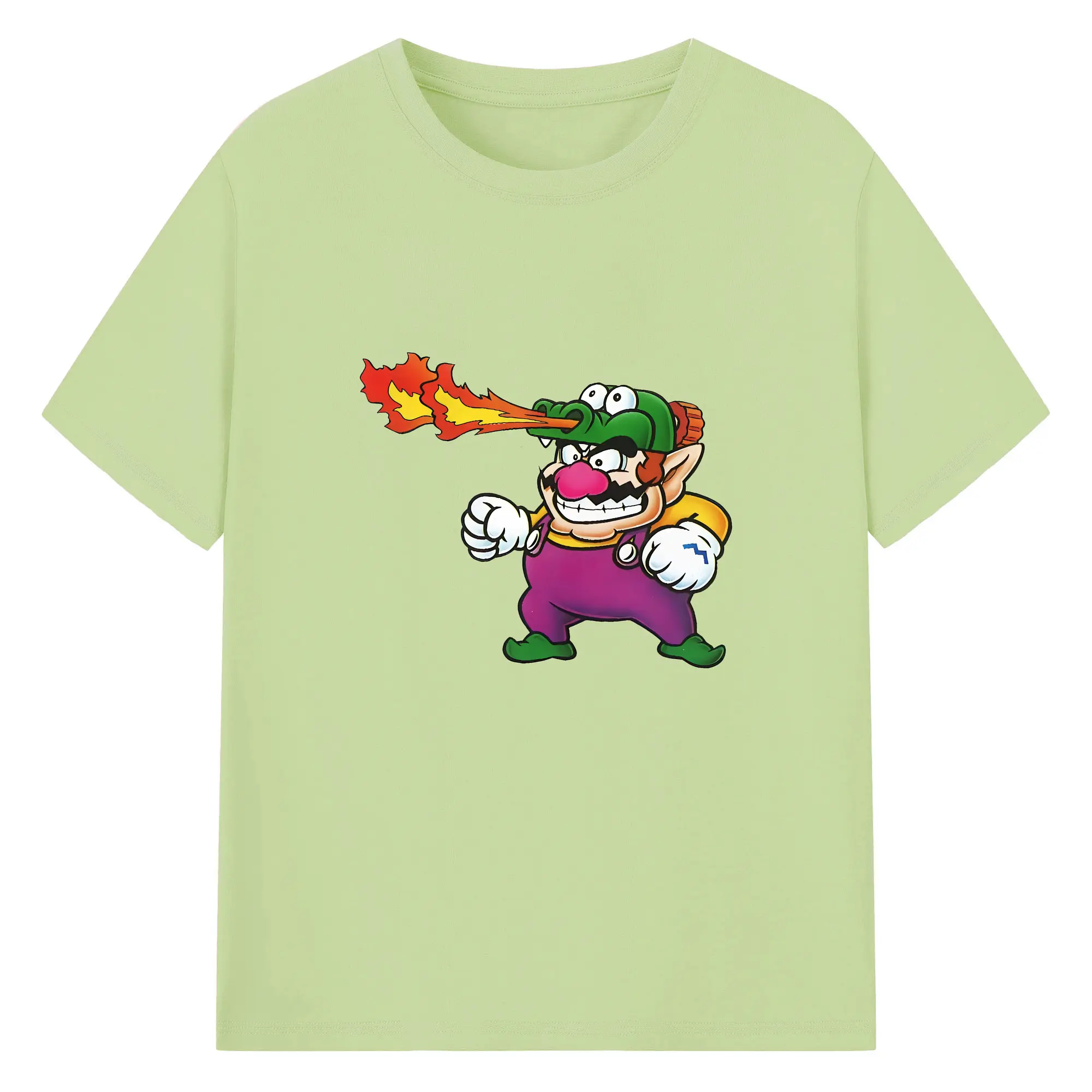 マリオ グッズ ワリオ - 綿100% 半袖Tシャツ ・ バックプリント ・ 快適 通気性 ・ 日常使い 散歩 スポーツ用