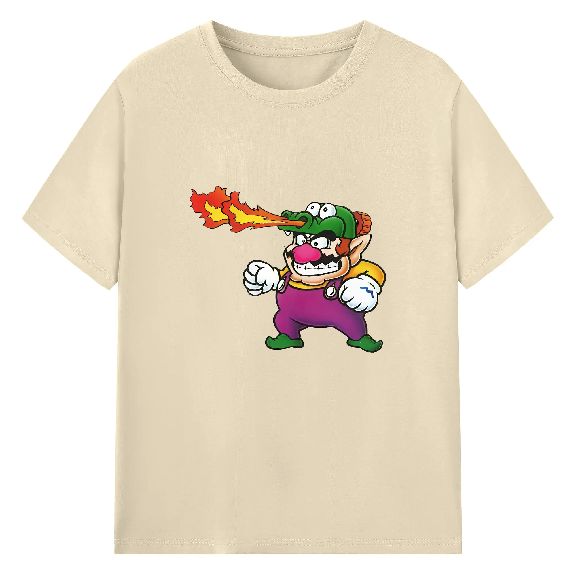 マリオ グッズ ワリオ - 綿100% ヴィンテージ風 半袖Tシャツ ・ フロントプリント ・ 柔らか肌触り ・ 通気性 快適 ・ スポーツ カジュアル 外出用