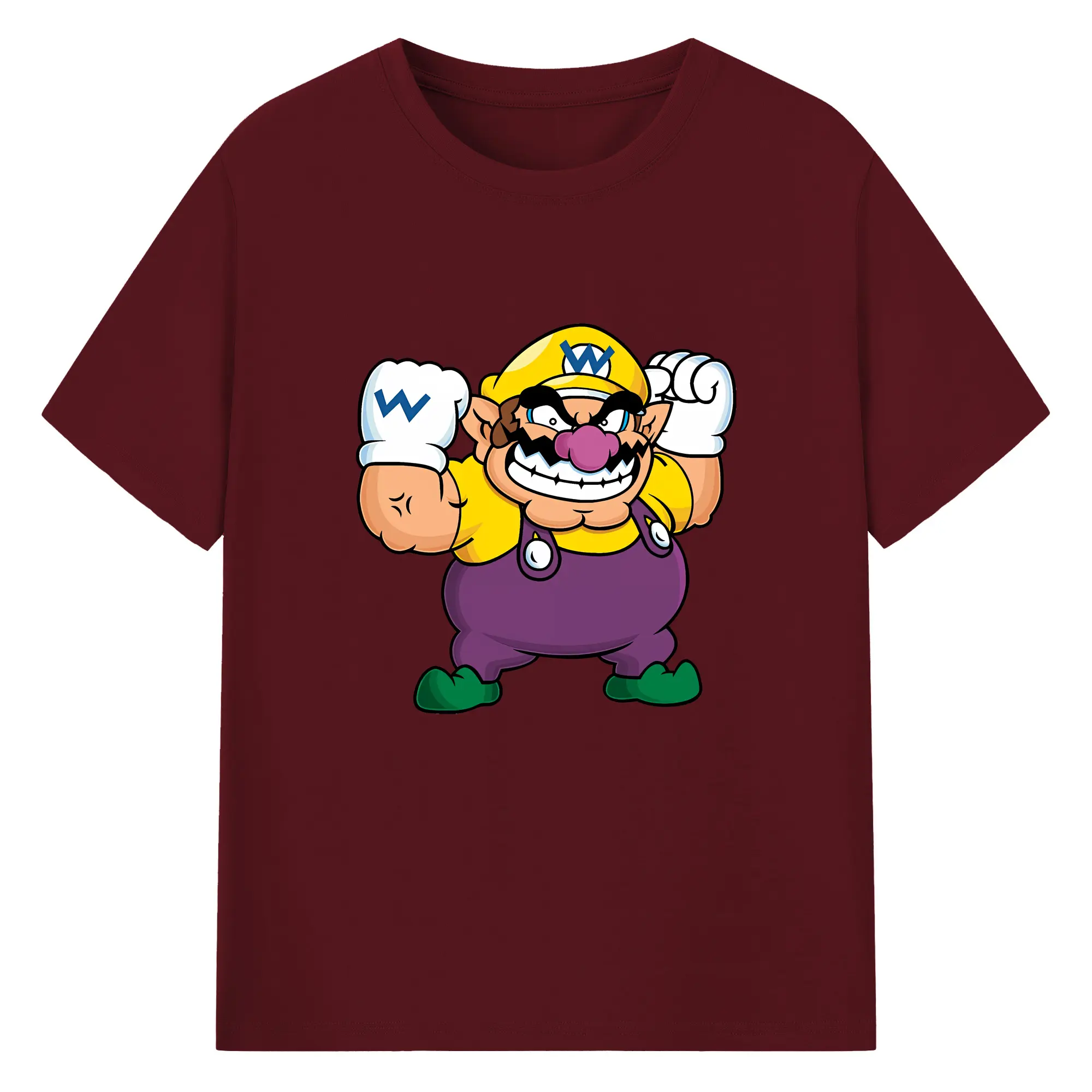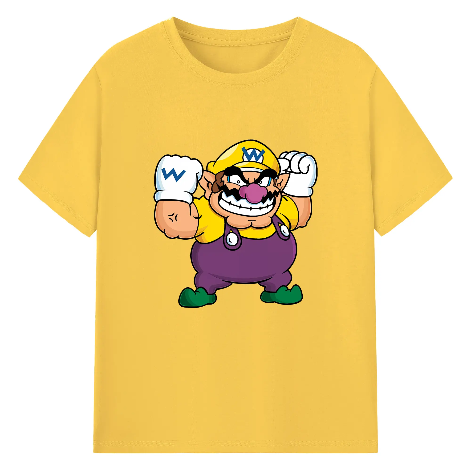 マリオ グッズ ワリオ - 綿100% 半袖Tシャツ ・ バックプリント ・ 快適 通気性 ・ 日常使い 散歩 スポーツ用