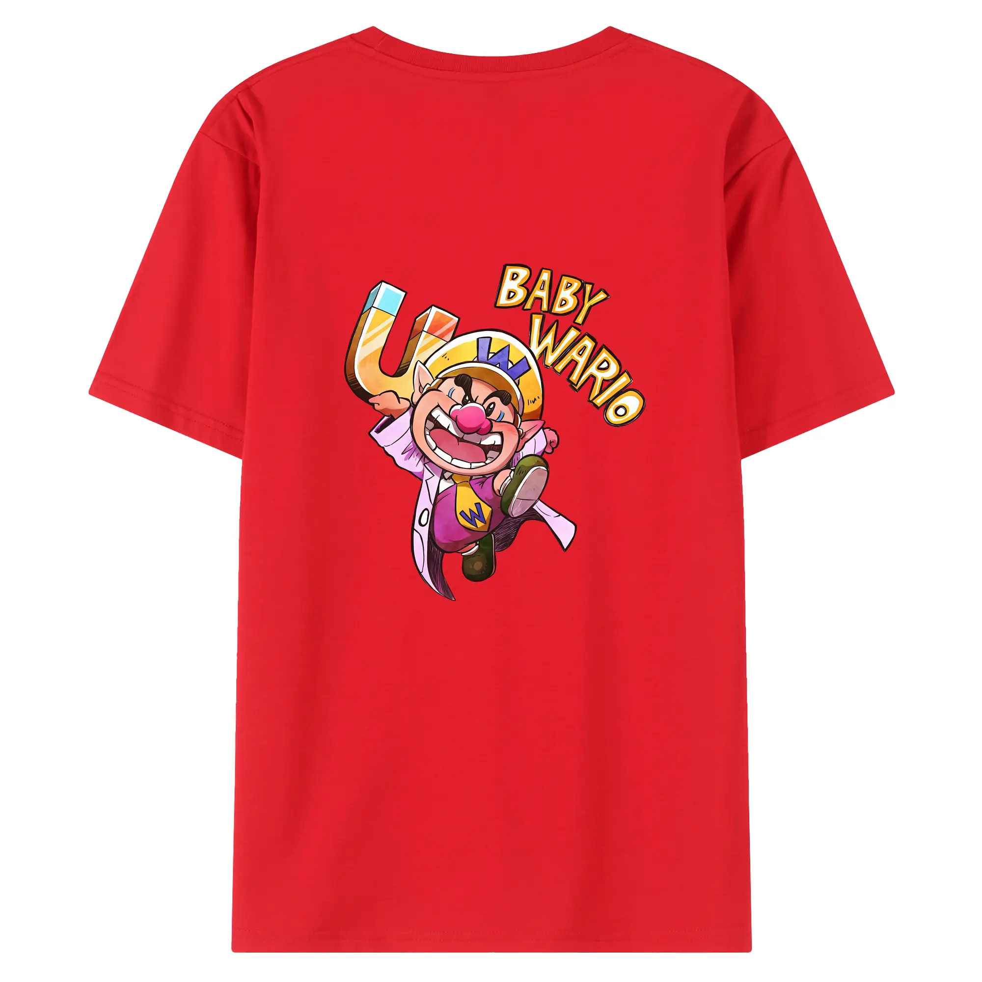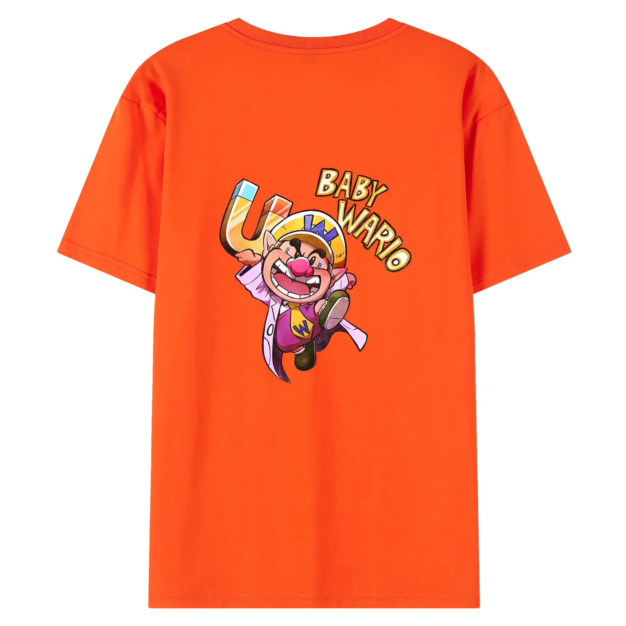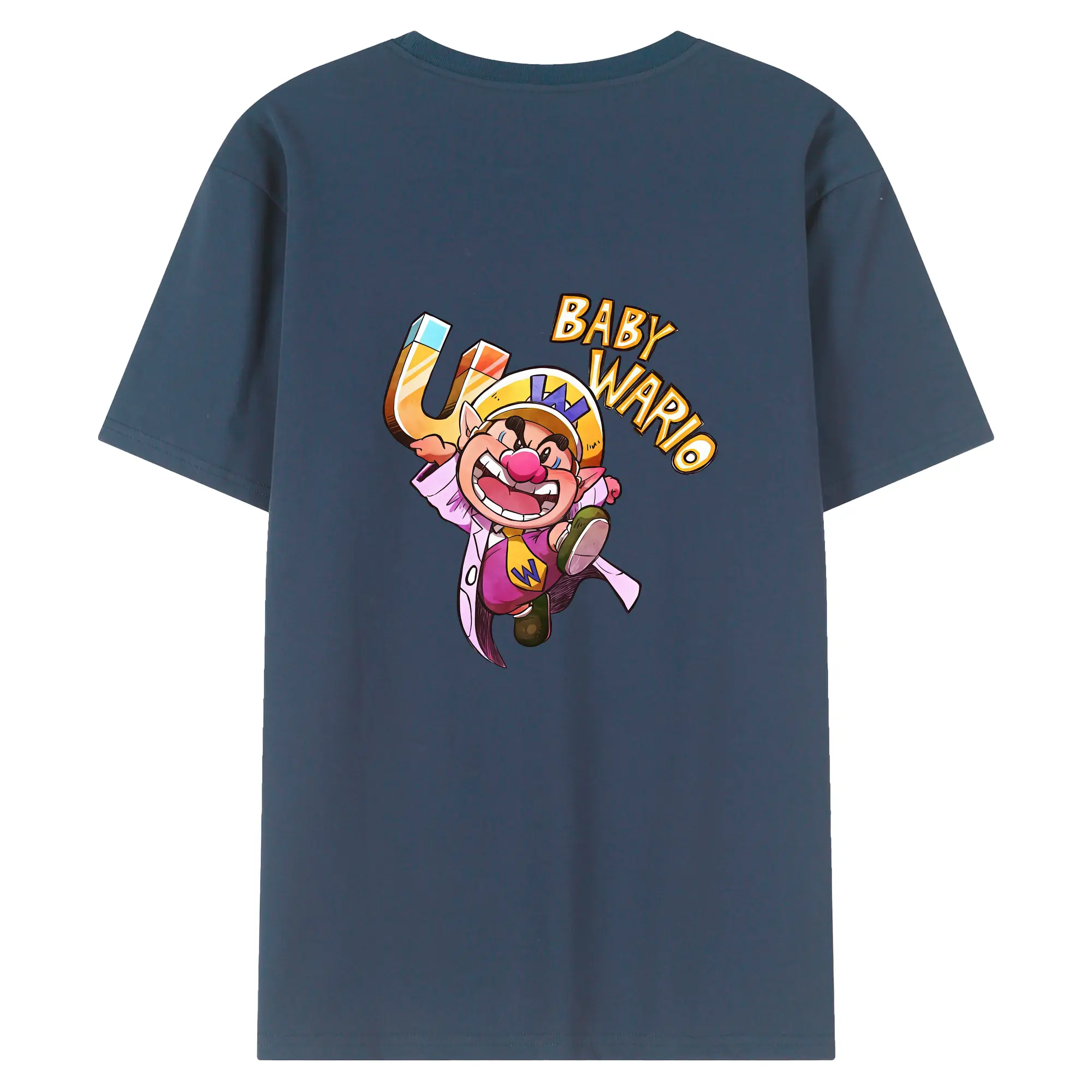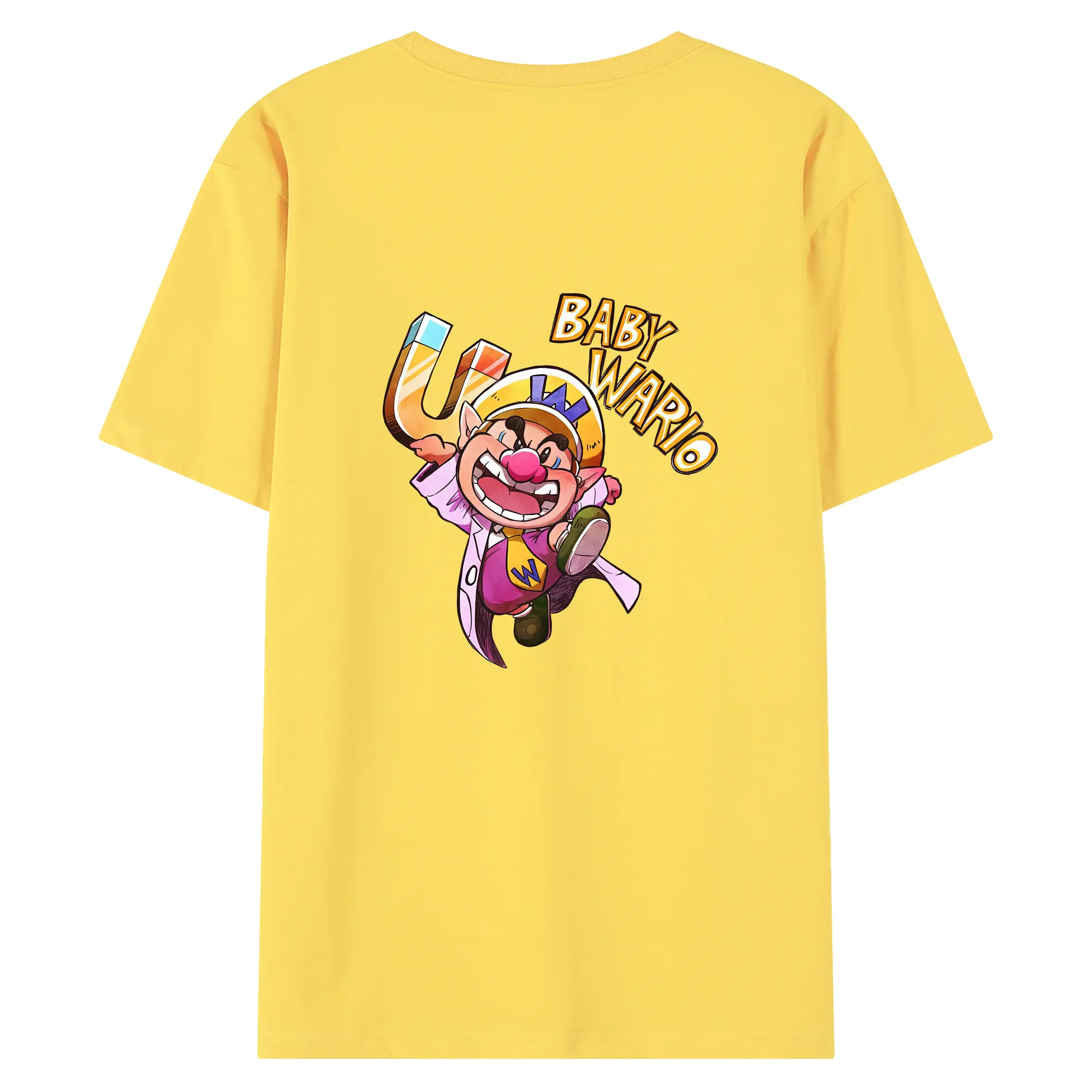 マリオ グッズ ワリオ - 綿100% 半袖Tシャツ ・ バックプリント ・ 快適 通気性 ・ 日常使い 散歩 スポーツ用
