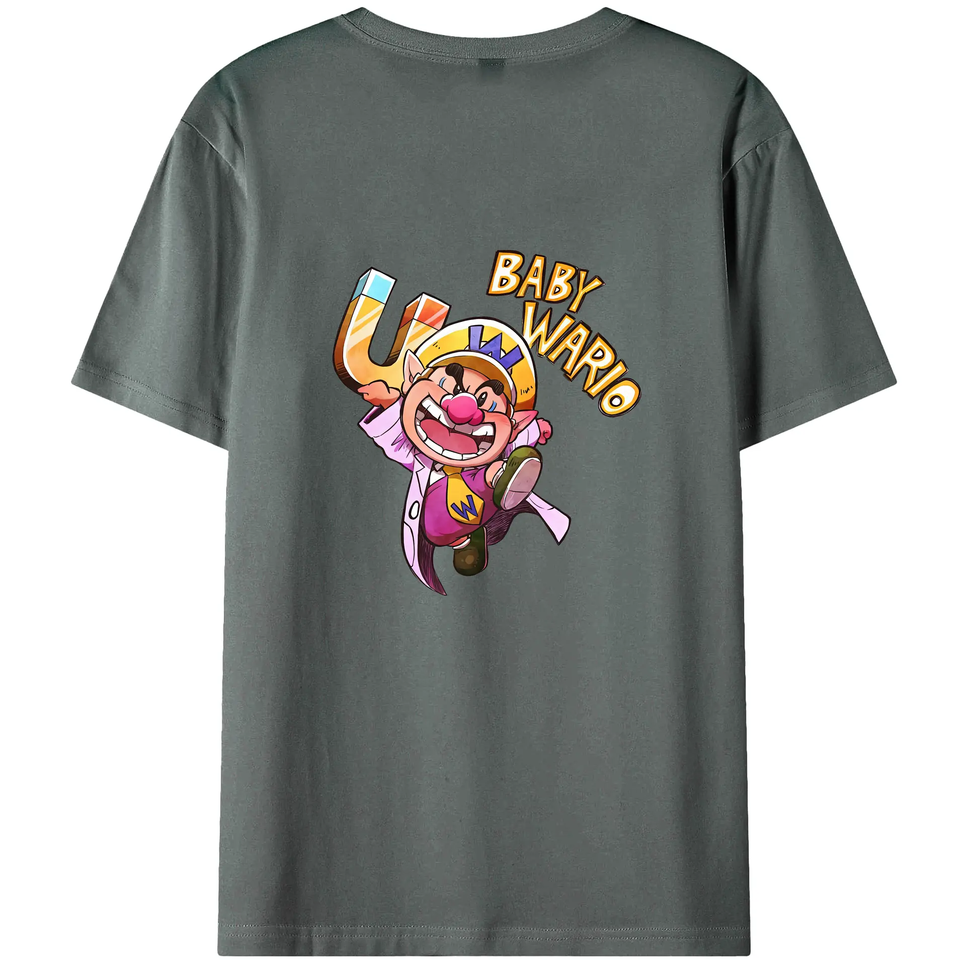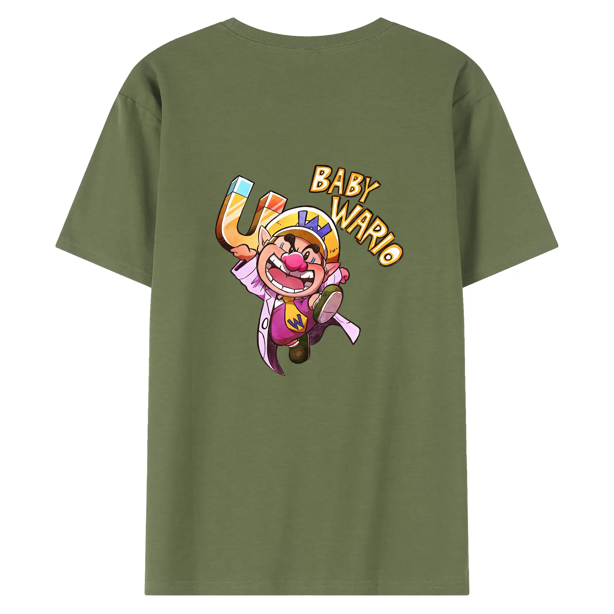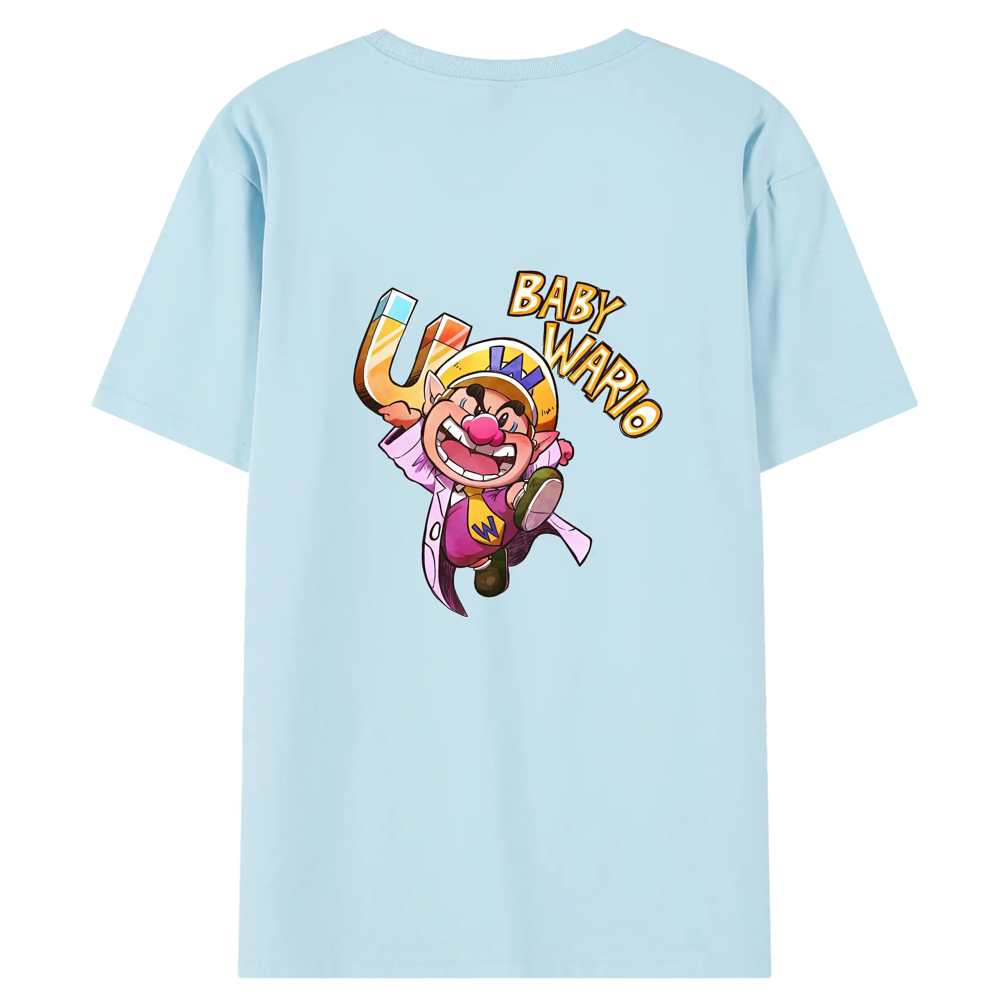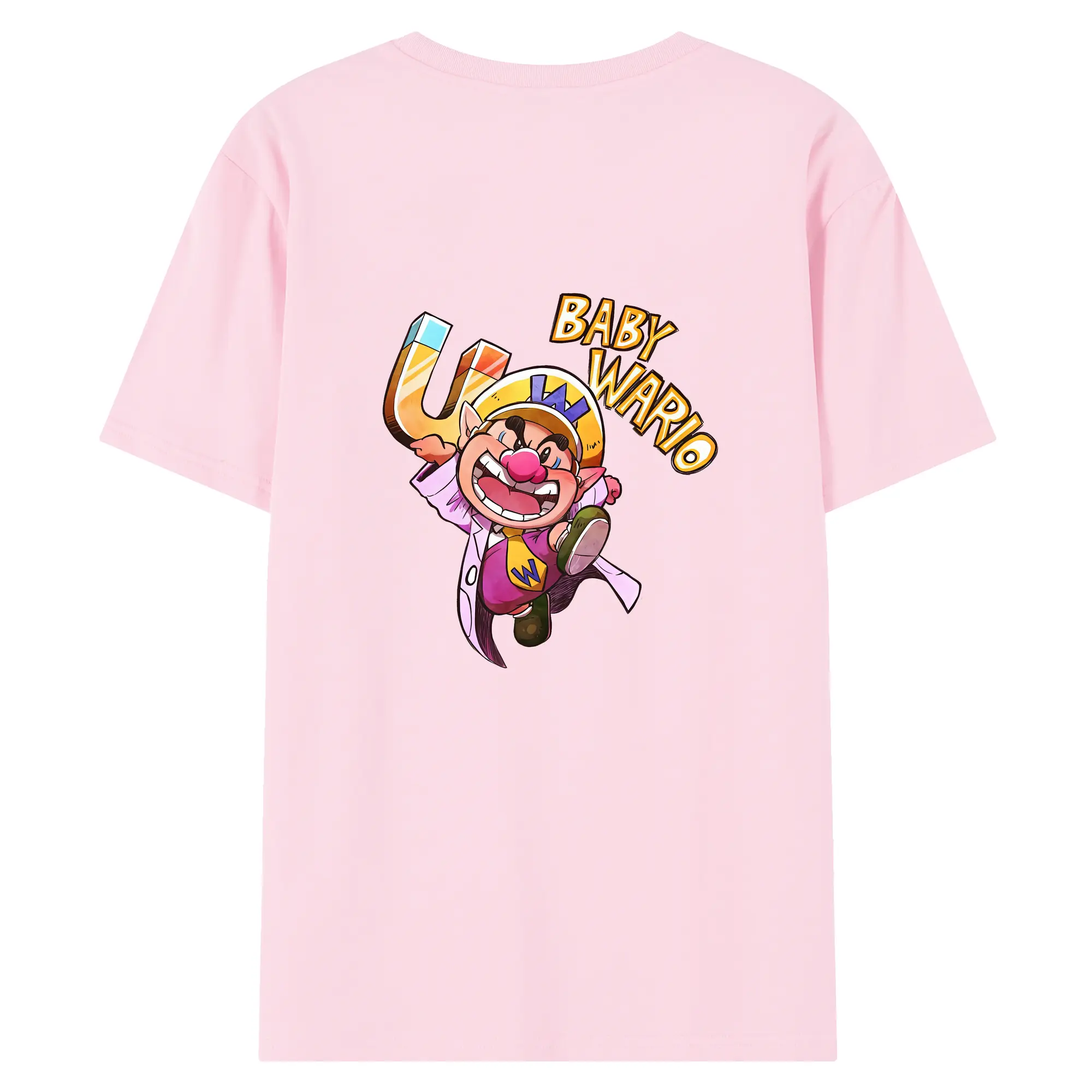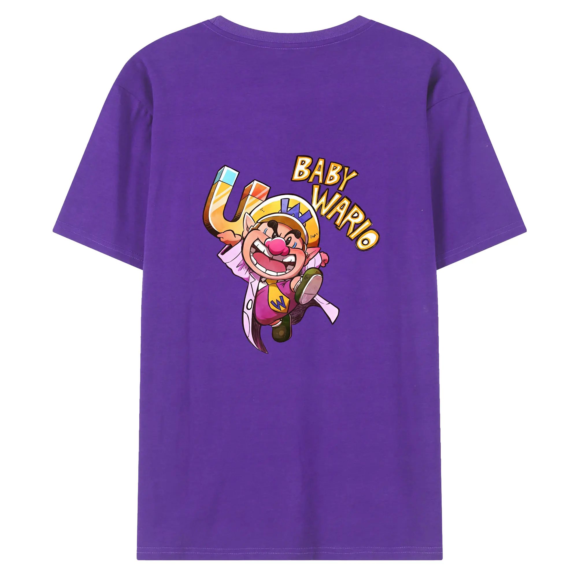 マリオ グッズ ワリオ - 綿100% 半袖Tシャツ ・ バックプリント ・ 快適 通気性 ・ 日常使い 散歩 スポーツ用