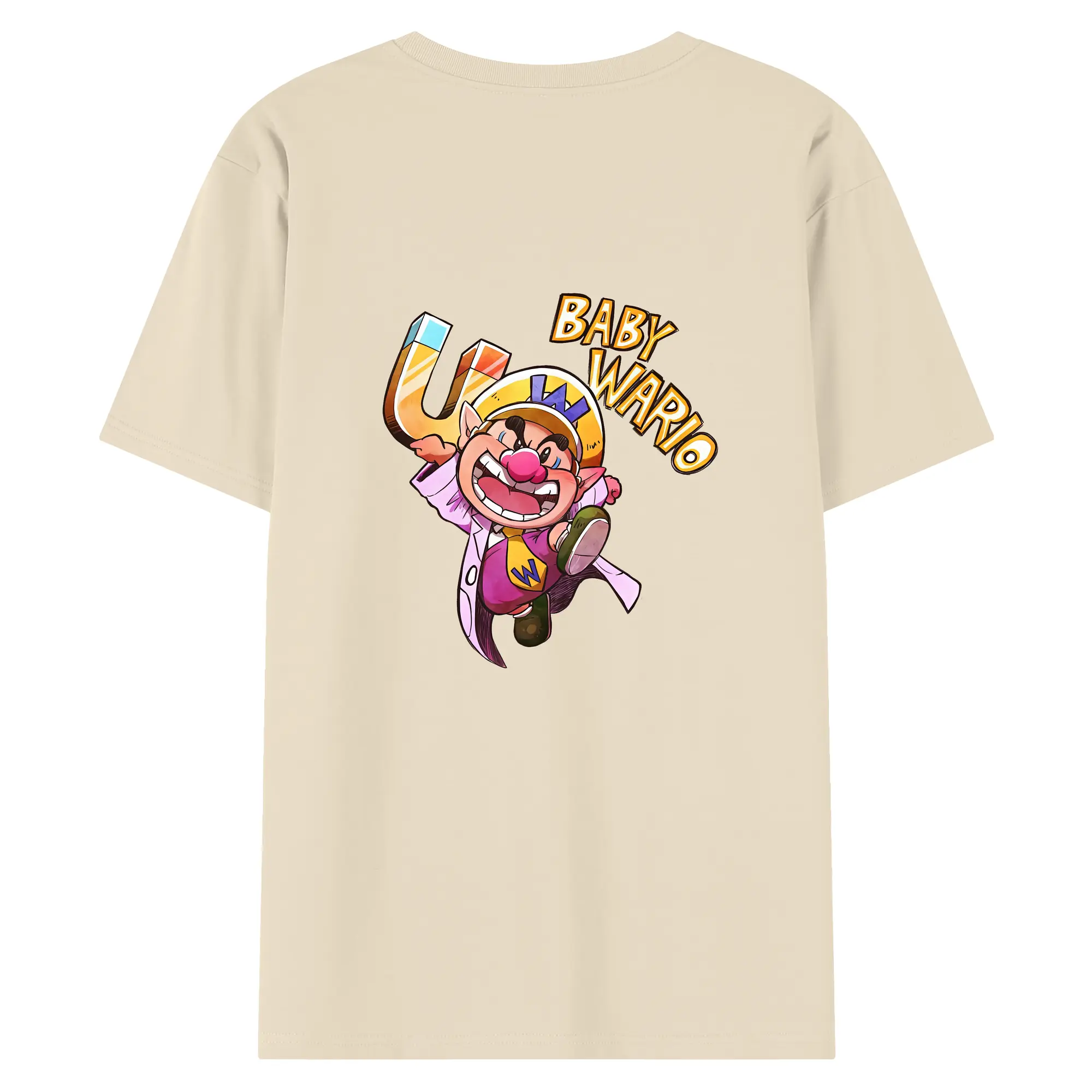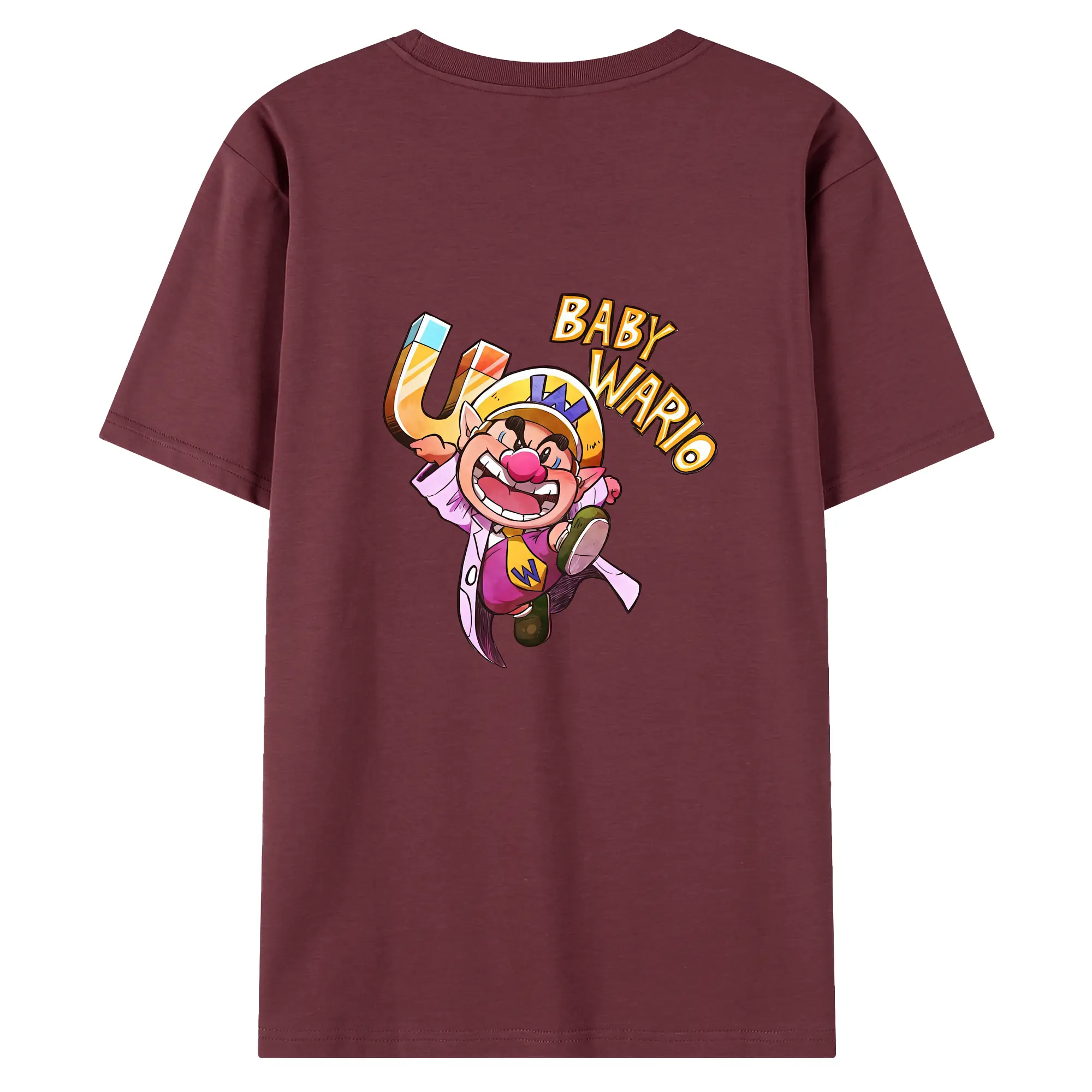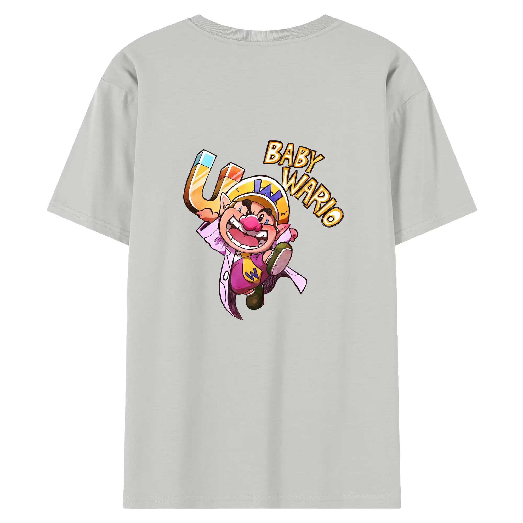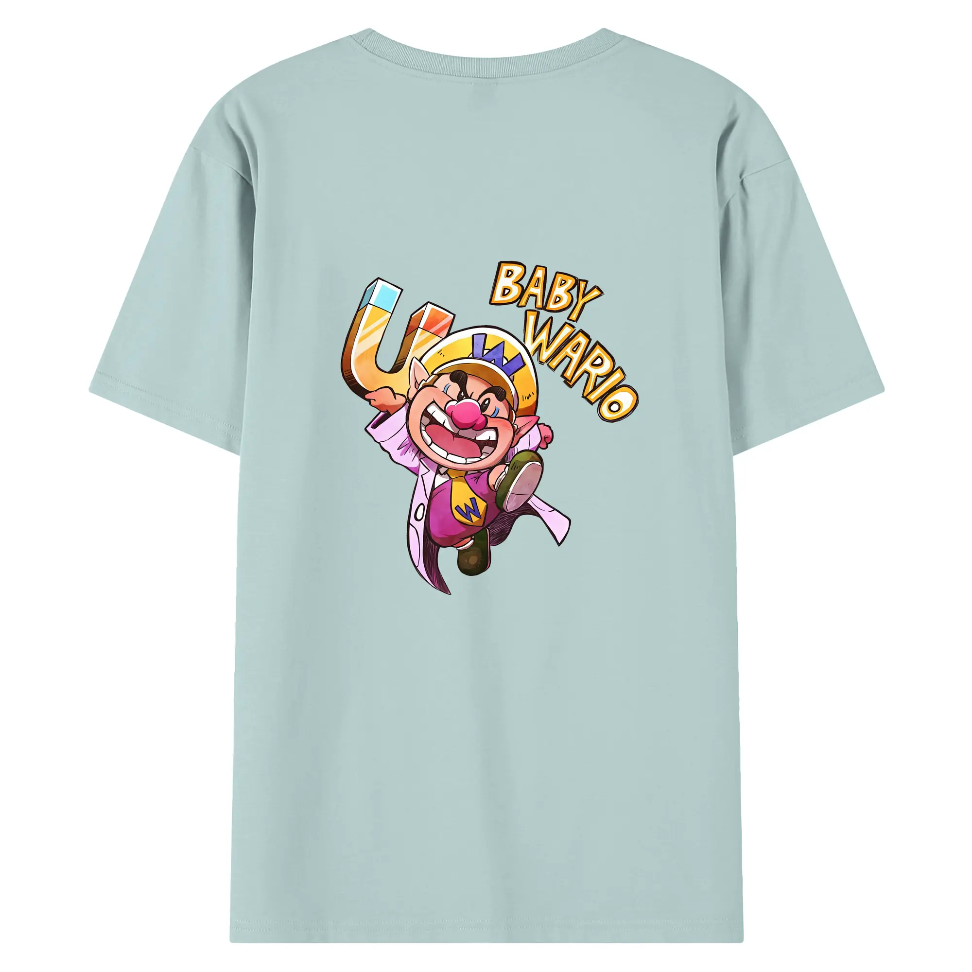 マリオ グッズ ワリオ - 綿100% 半袖Tシャツ ・ バックプリント ・ 快適 通気性 ・ 日常使い 散歩 スポーツ用