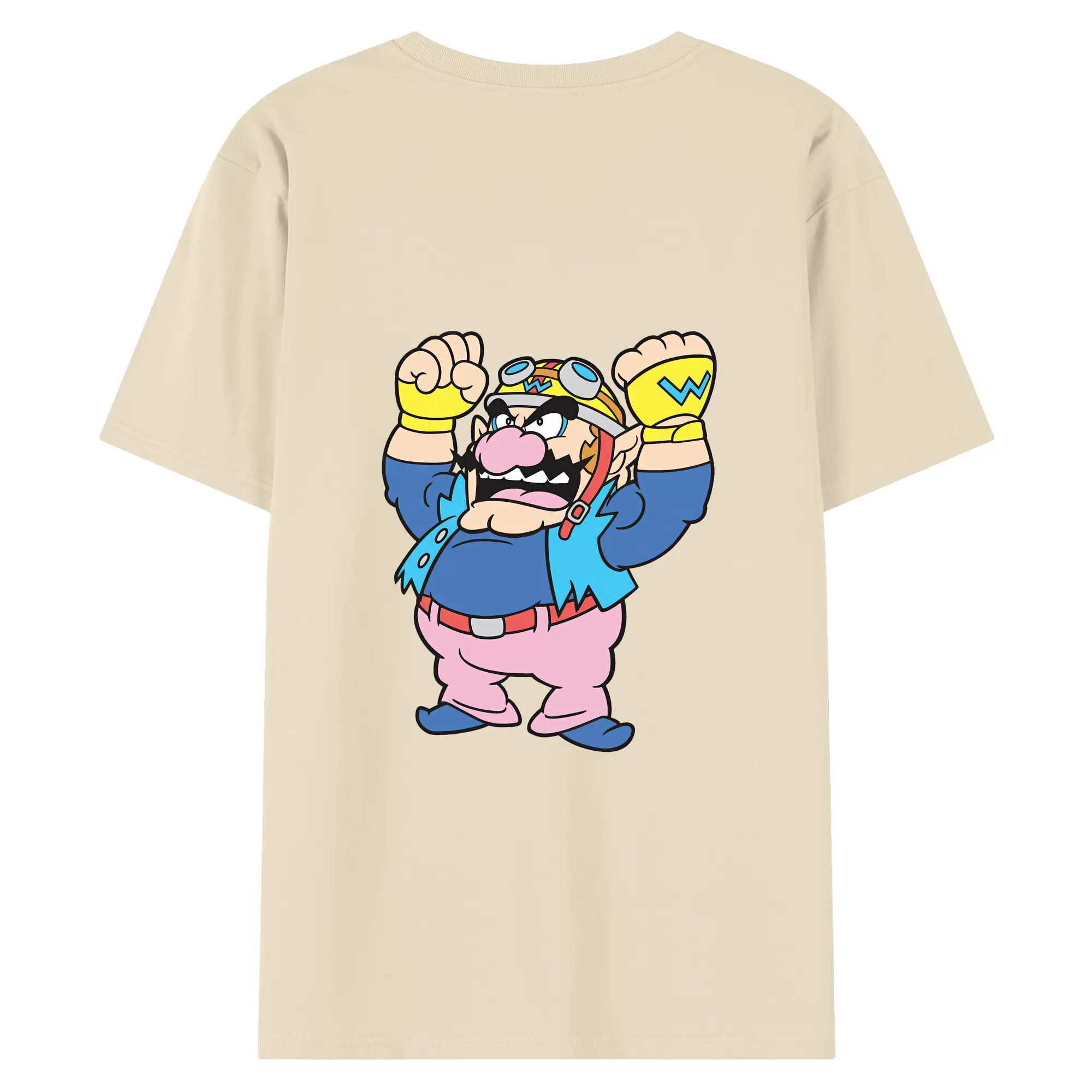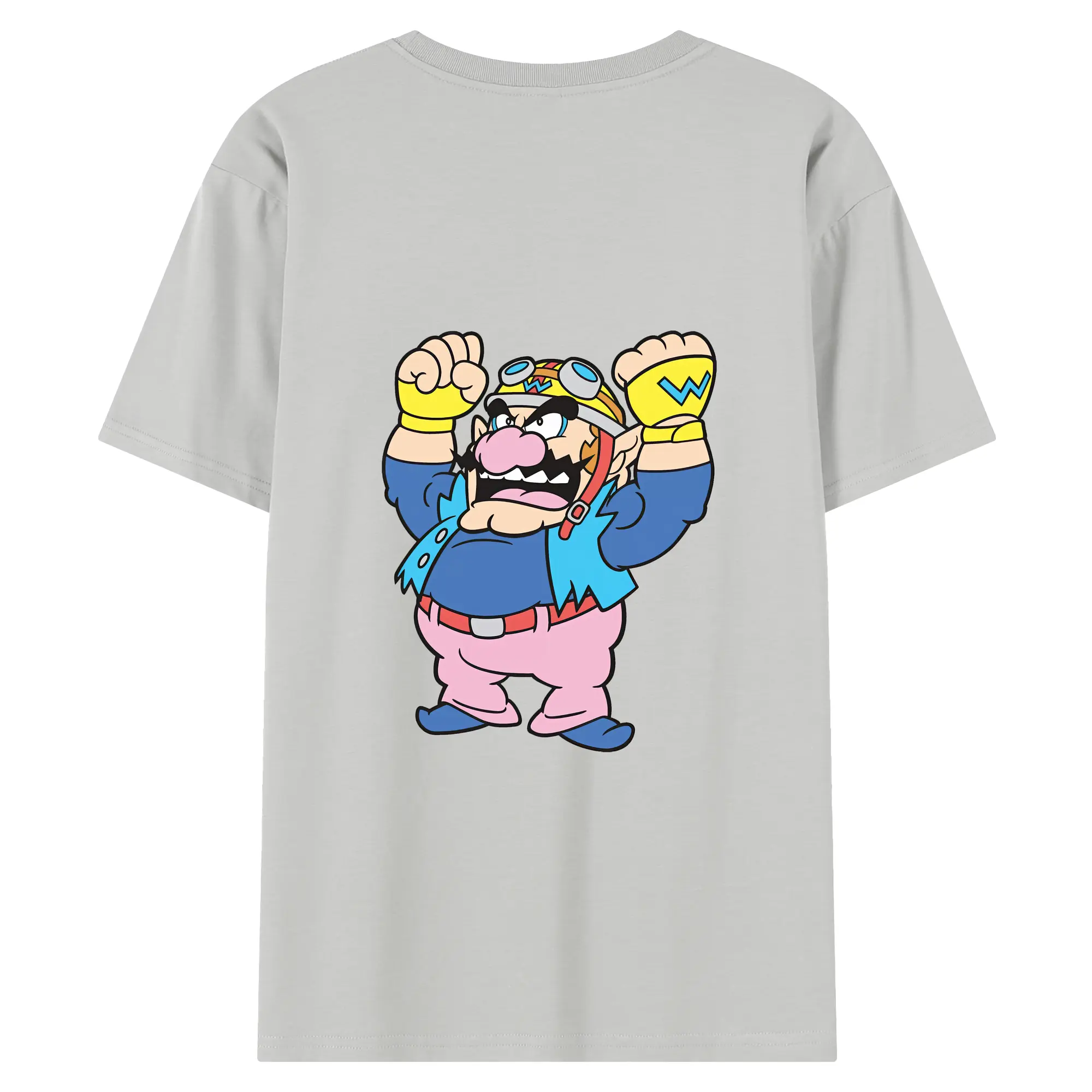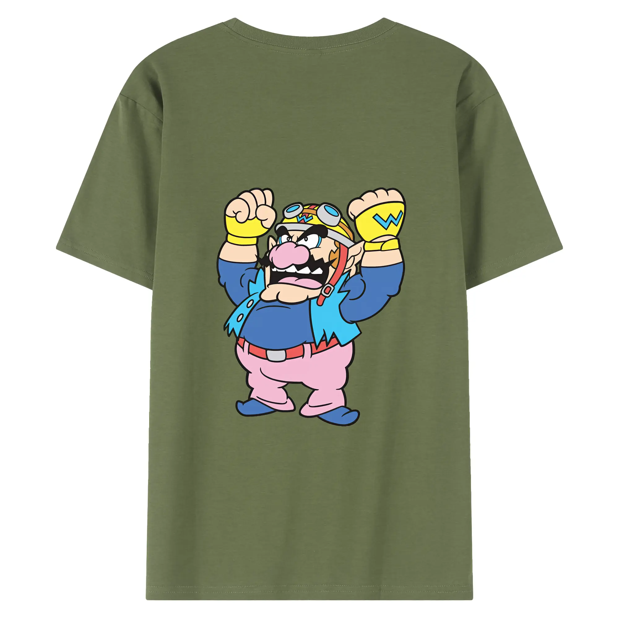 マリオ グッズ ワリオ - 綿100% ヴィンテージ風 半袖Tシャツ ・ 背面プリント ・ 柔らか肌触り ・ 通気性 快適 ・ スポーツ カジュアル 外出用