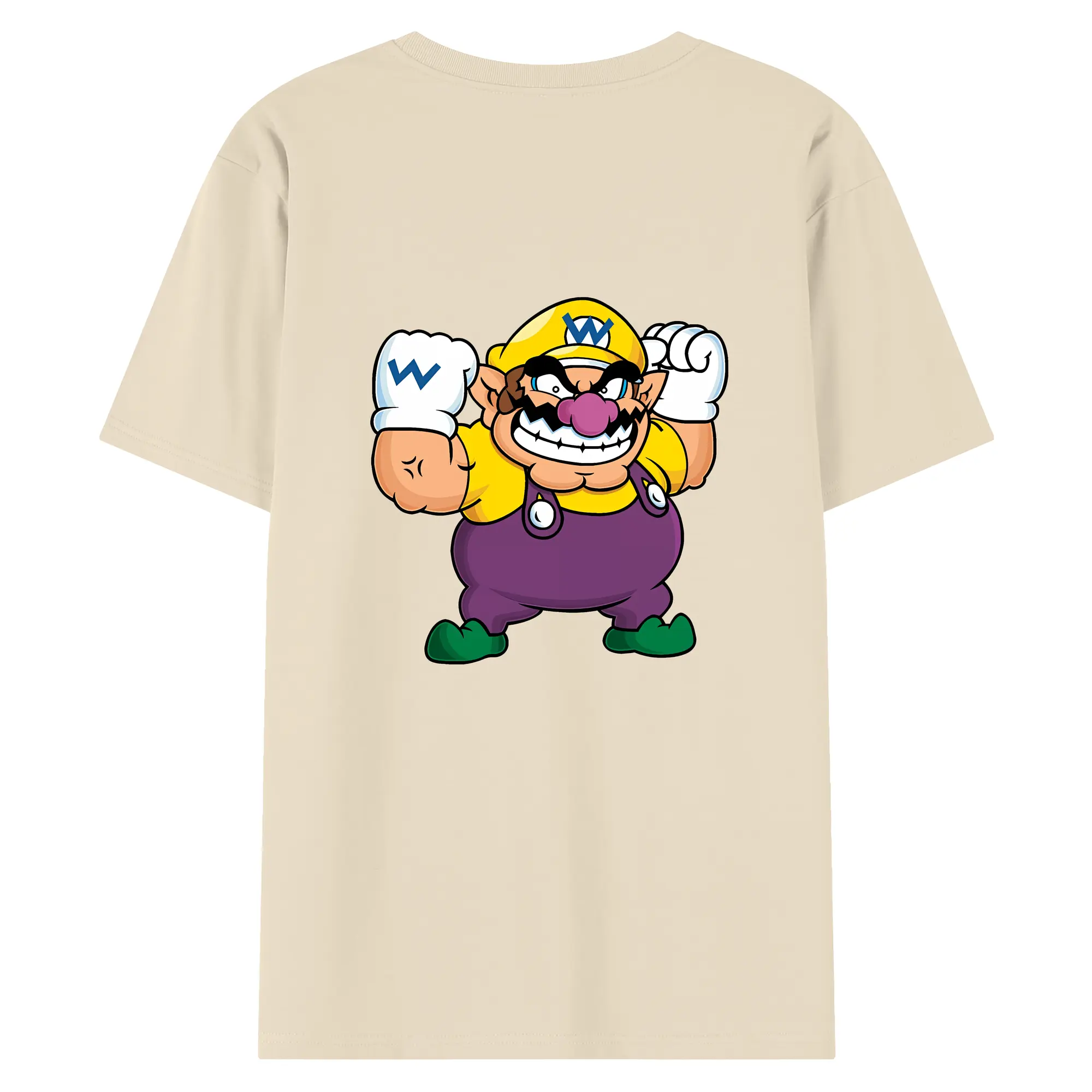 マリオ グッズ ワリオ - 綿100% ヴィンテージ風 半袖Tシャツ ・ 背面プリント ・ 柔らか肌触り ・ 通気性 快適 ・ スポーツ カジュアル 外出用