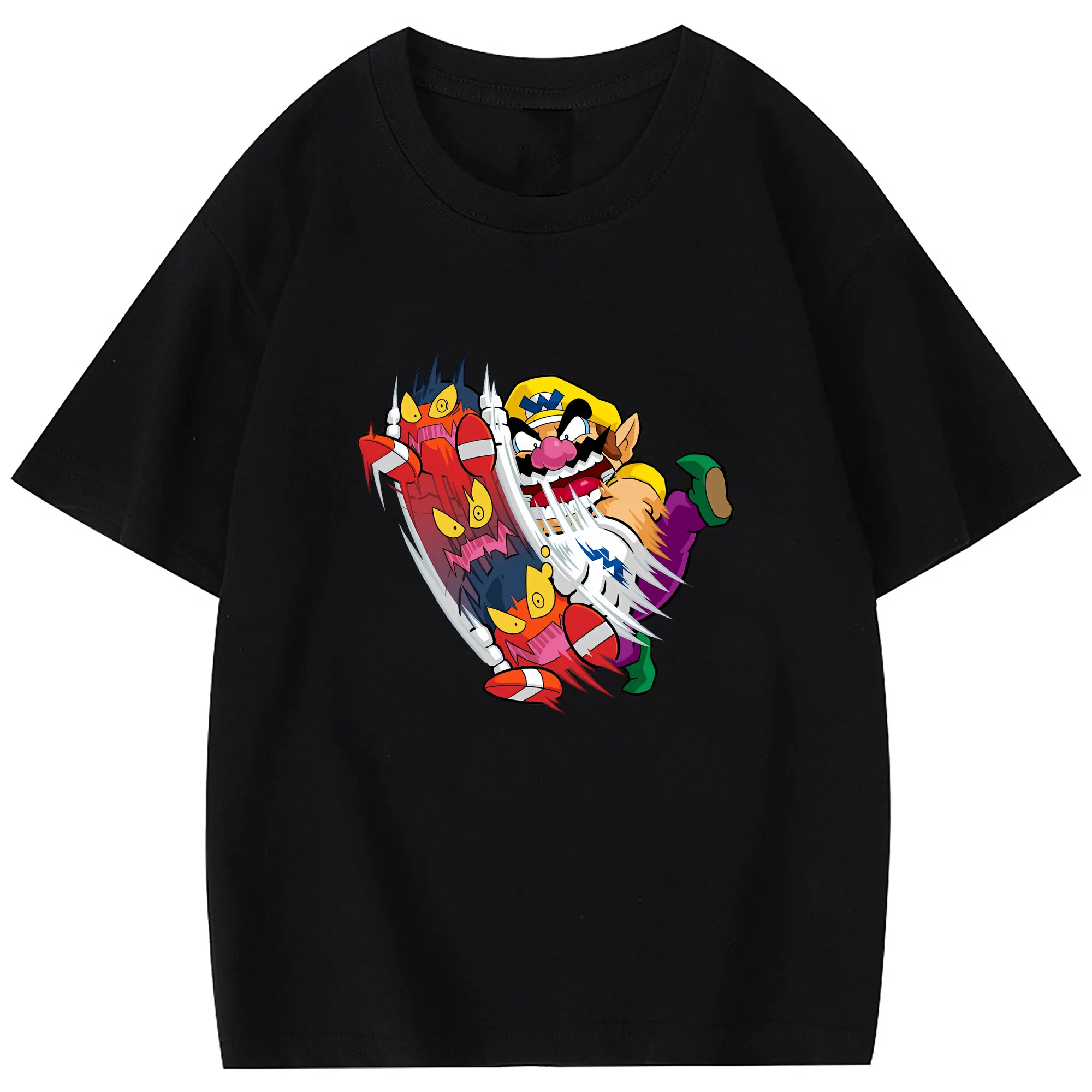 マリオ グッズ ワリオ - 綿100% 半袖Tシャツ ・ バックプリント ・ 快適 通気性 ・ 日常使い 散歩 スポーツ用