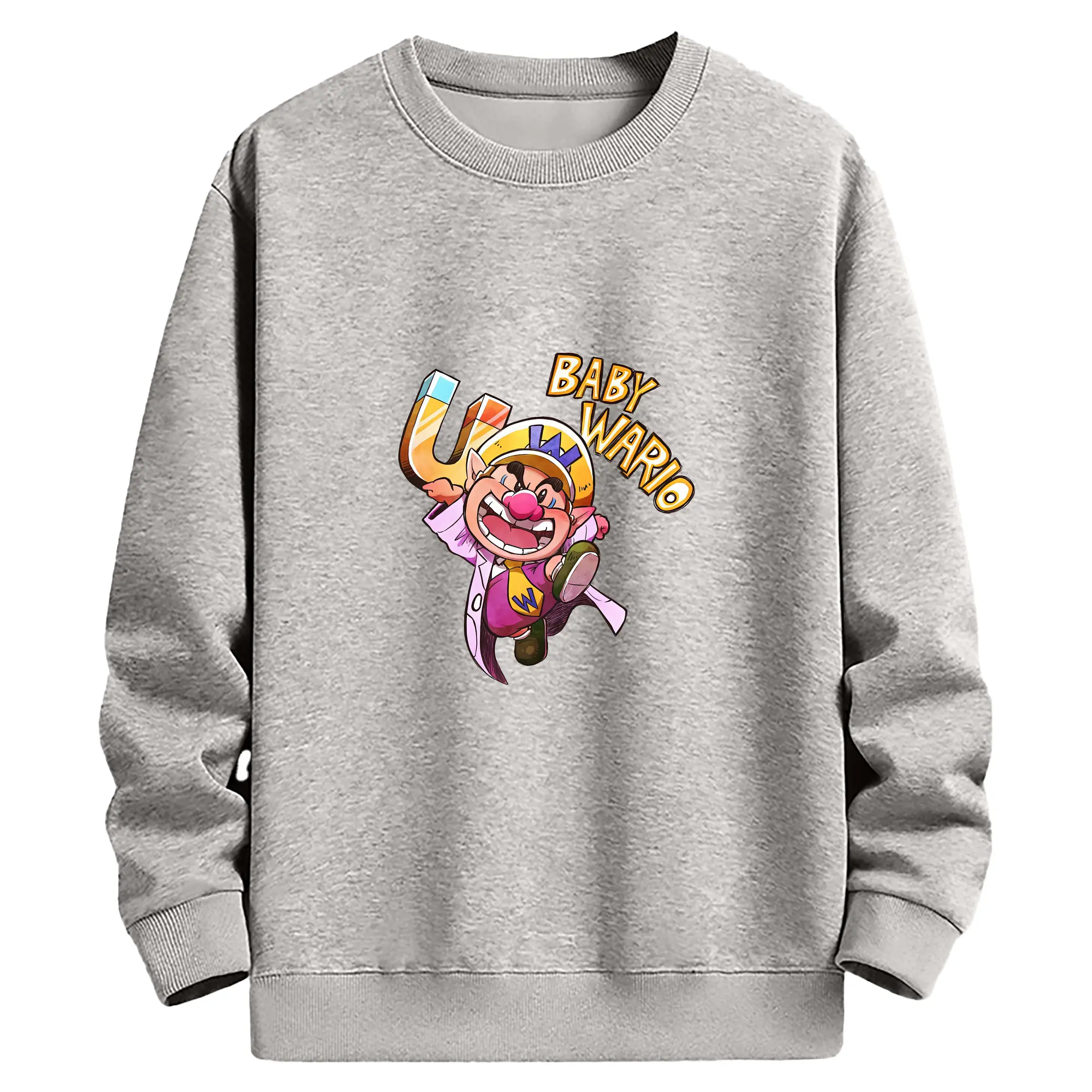 マリオ グッズ ワリオ - キッズ クルーネックスウェットシャツ ・ フロントプリント ・ 綿80% ポリエステル20% ・ 快適 通学 スポーツ 日常使い お散歩用
