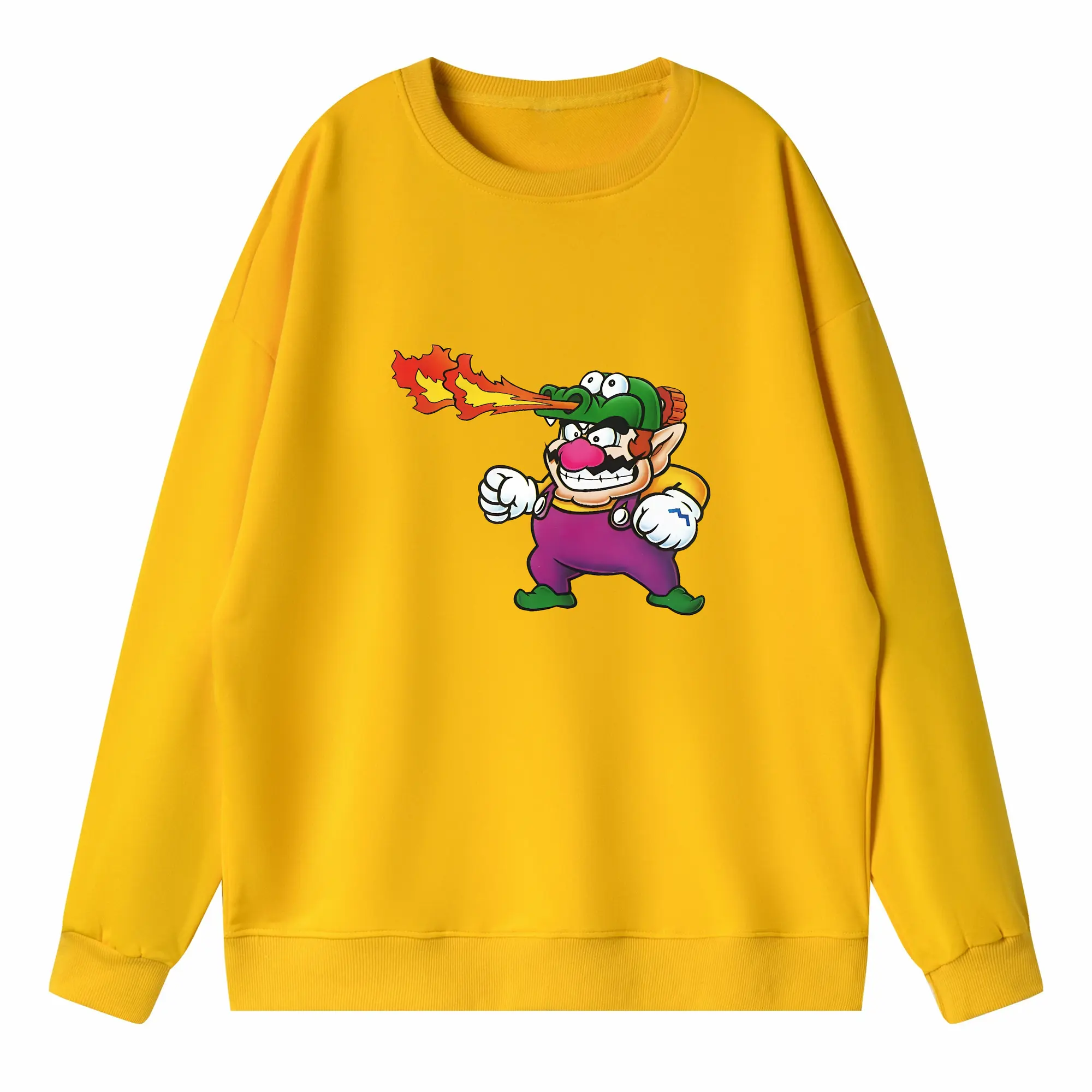 マリオ グッズ ワリオ - 高品質 クルーネック スウェット ・ コットン59% ポリエステル41% ・ ユニセックス 長袖 トレーナー ・ カジュアル デイリー スポーツ 散歩用