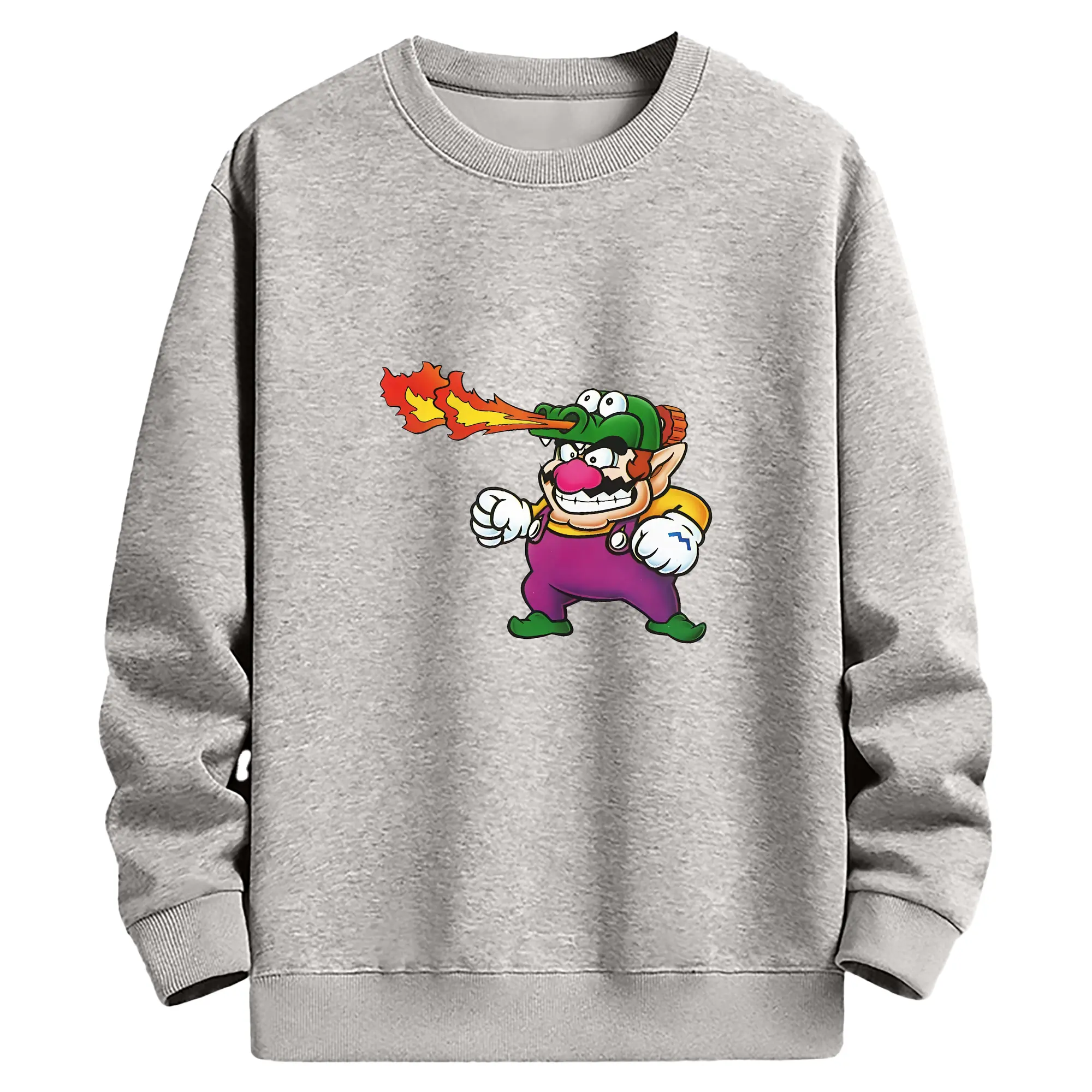 マリオ グッズ ワリオ - 高品質 クルーネック スウェット ・ コットン59% ポリエステル41% ・ ユニセックス 長袖 トレーナー ・ カジュアル デイリー スポーツ 散歩用