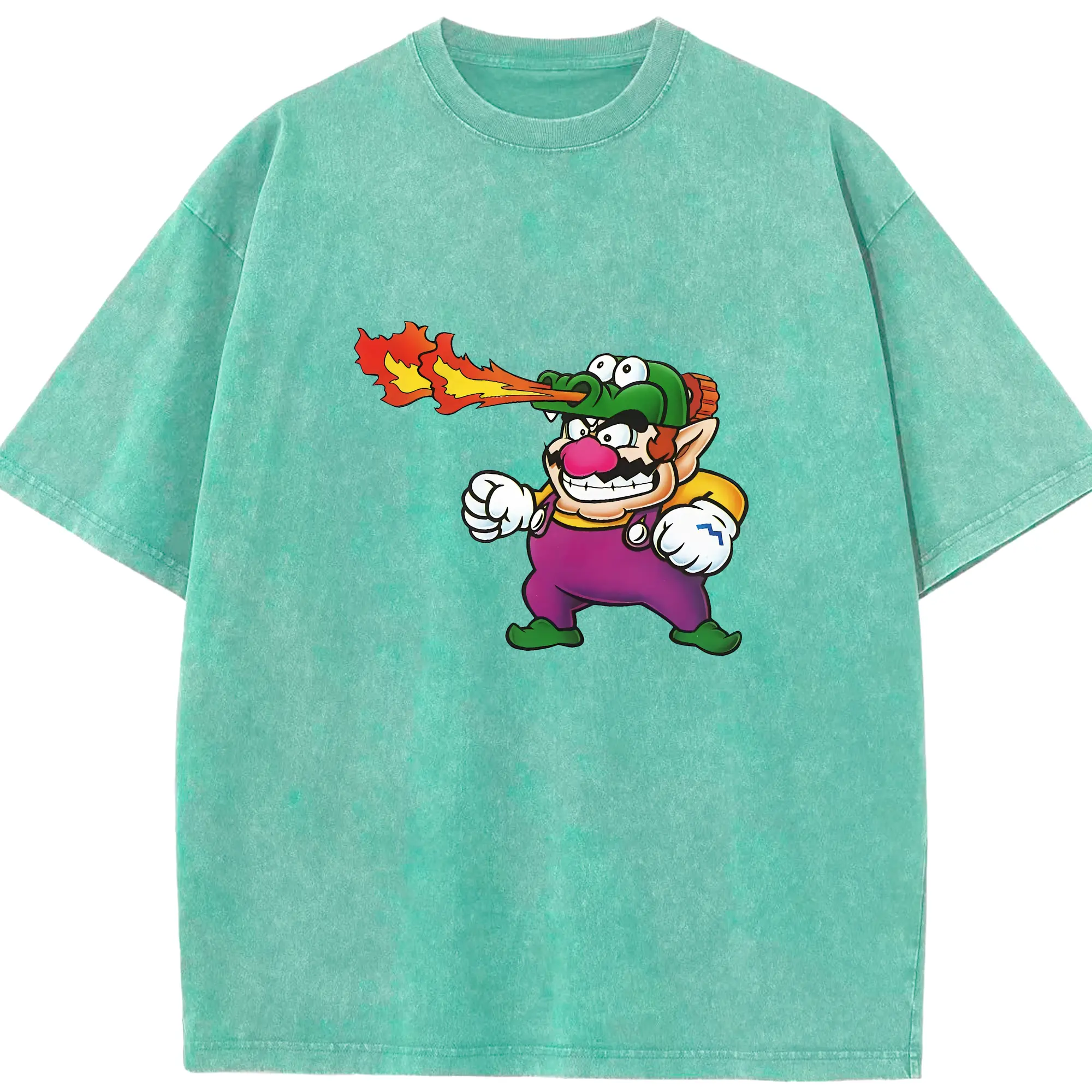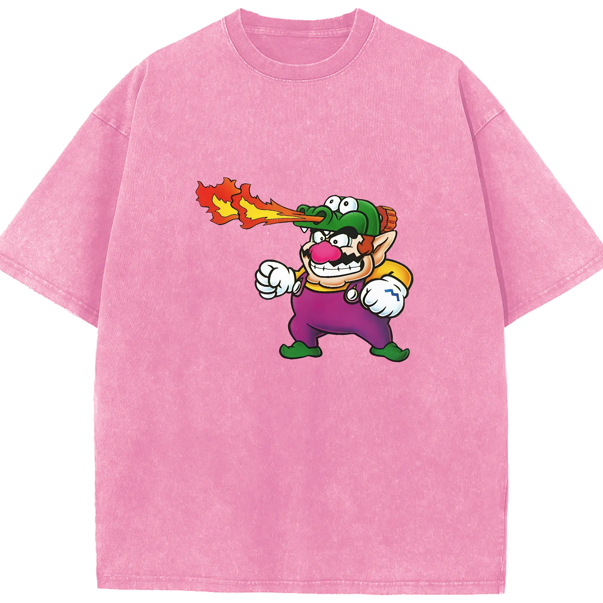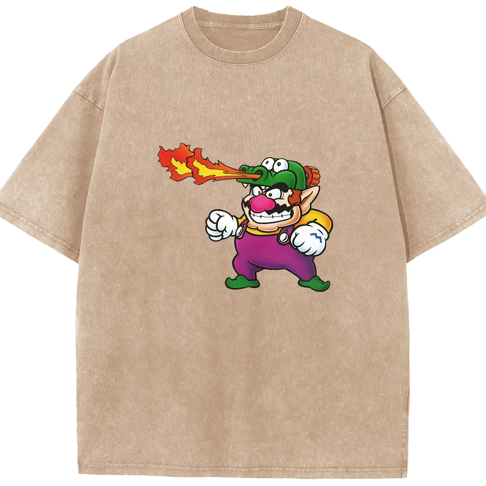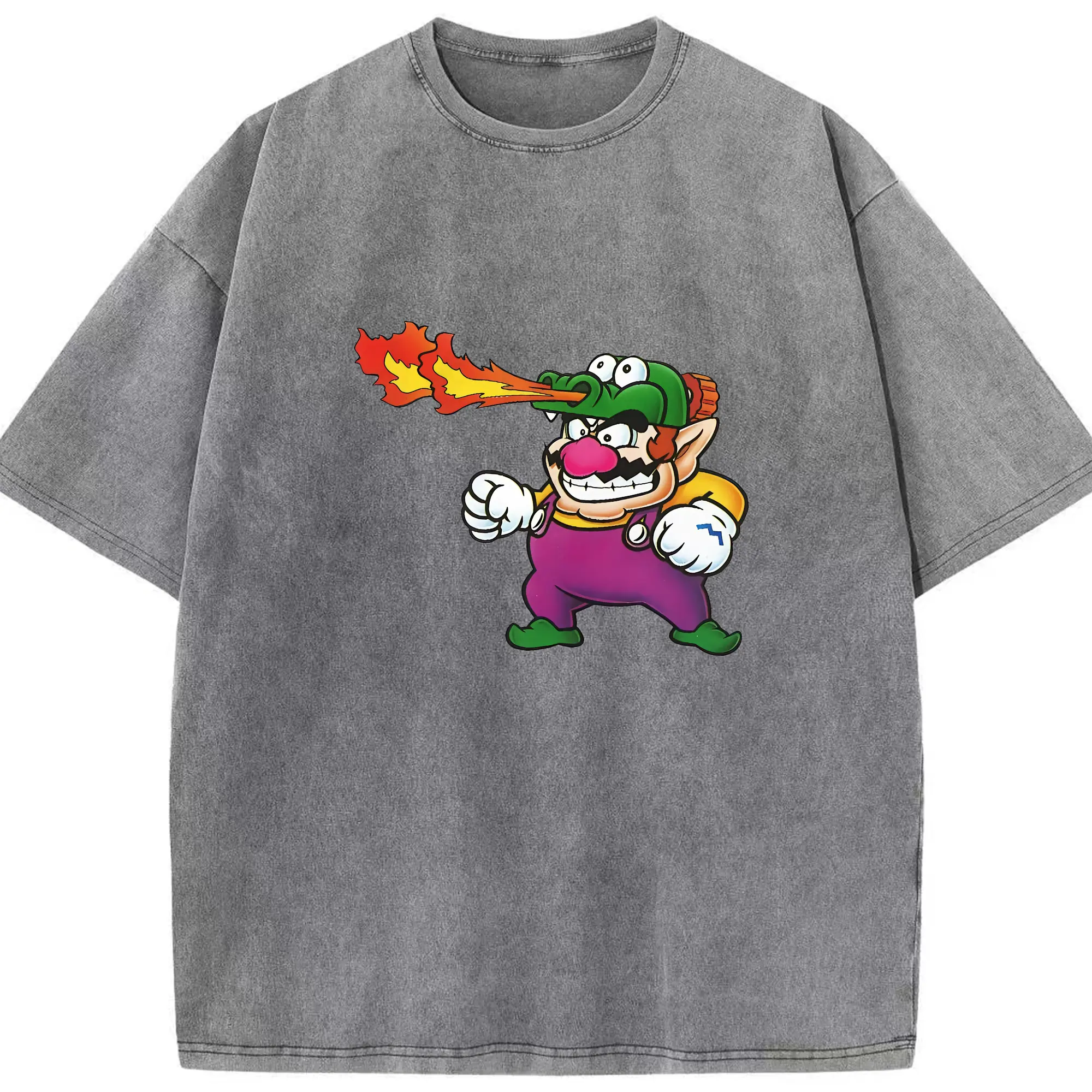 マリオ グッズ ワリオ - 綿100% ヴィンテージ風 半袖Tシャツ ・ 背面プリント ・ 柔らか肌触り ・ 通気性 快適 ・ スポーツ カジュアル 外出用