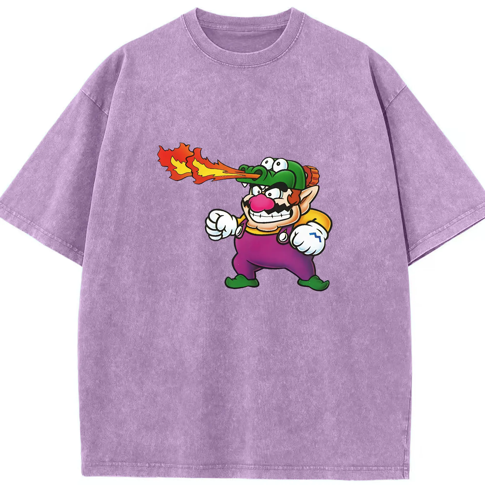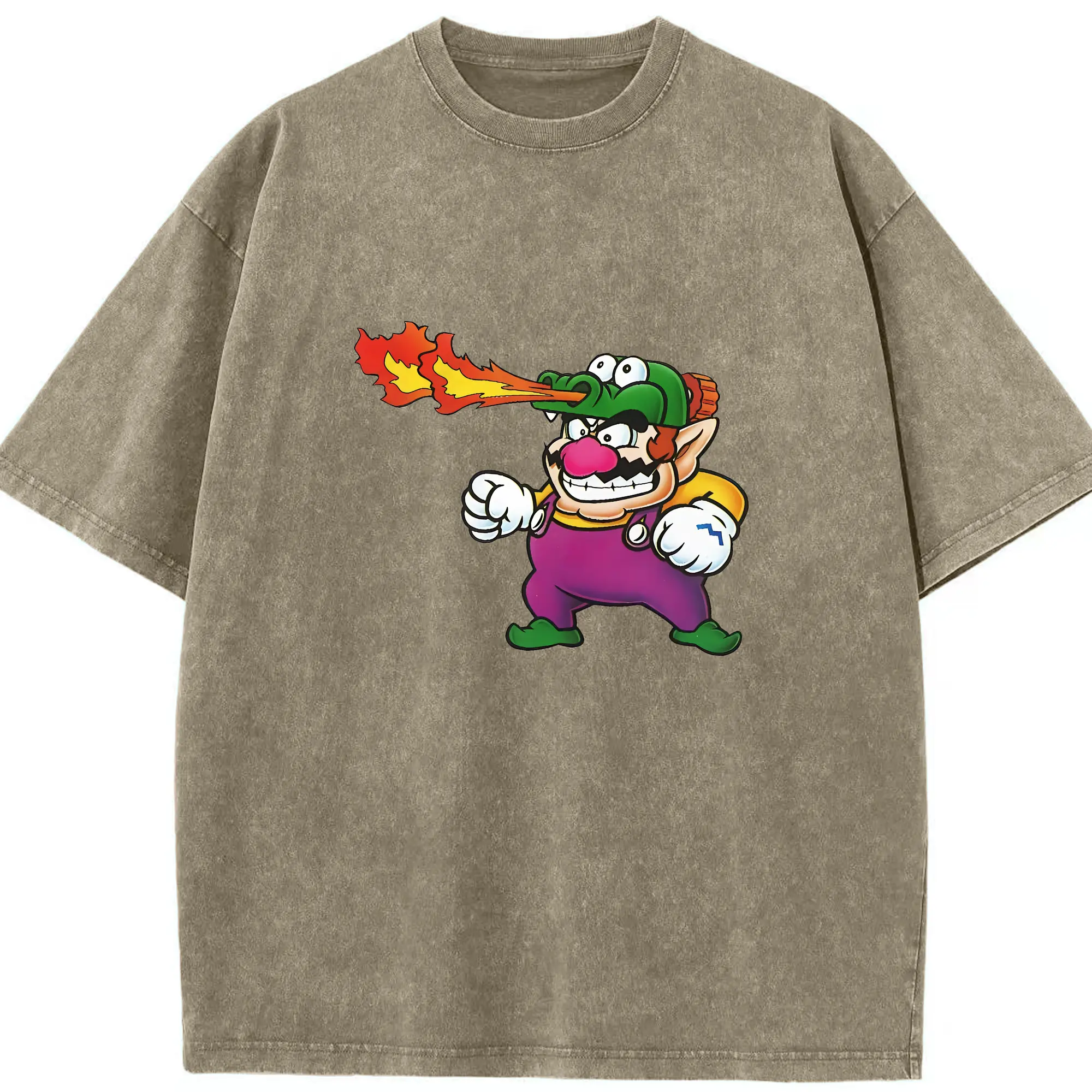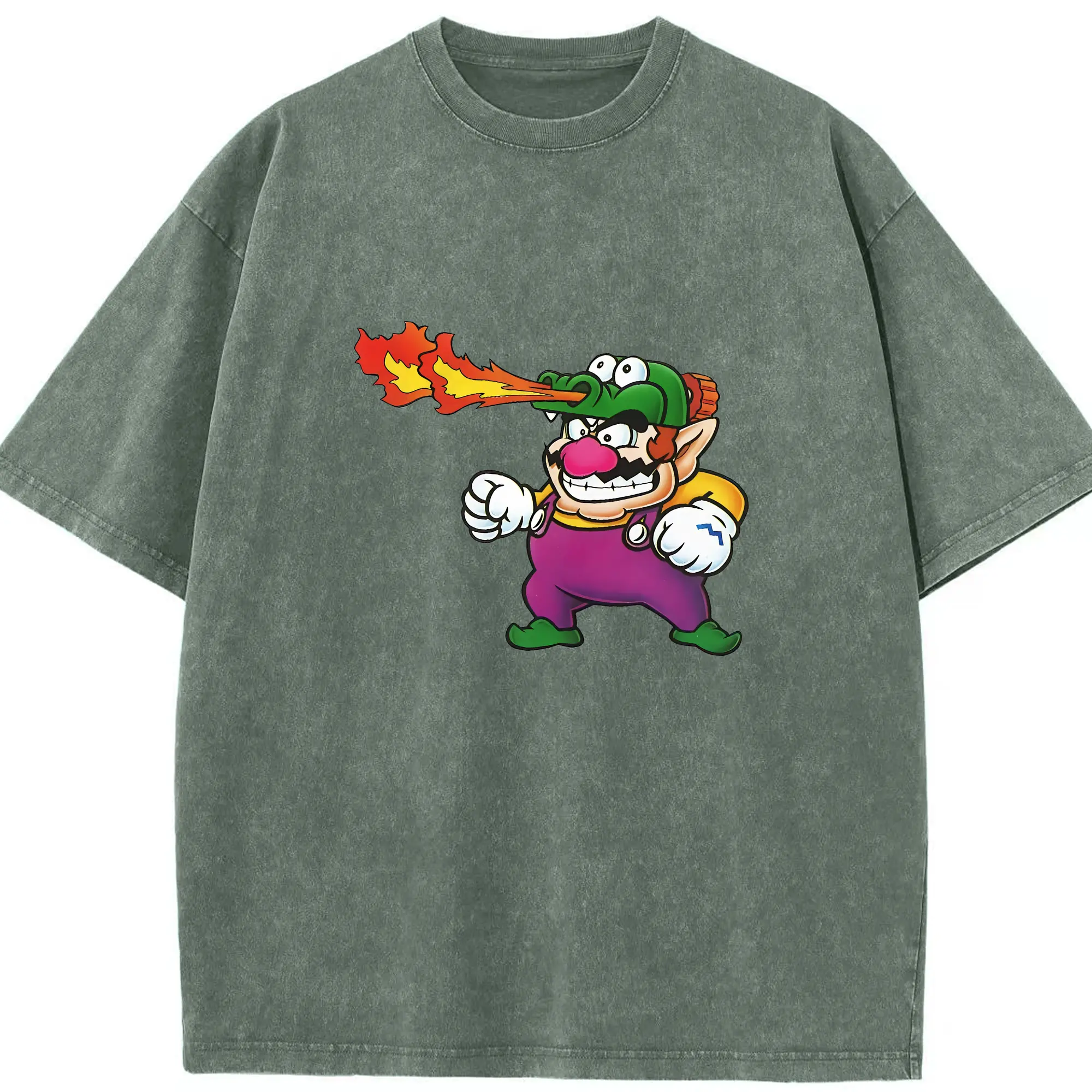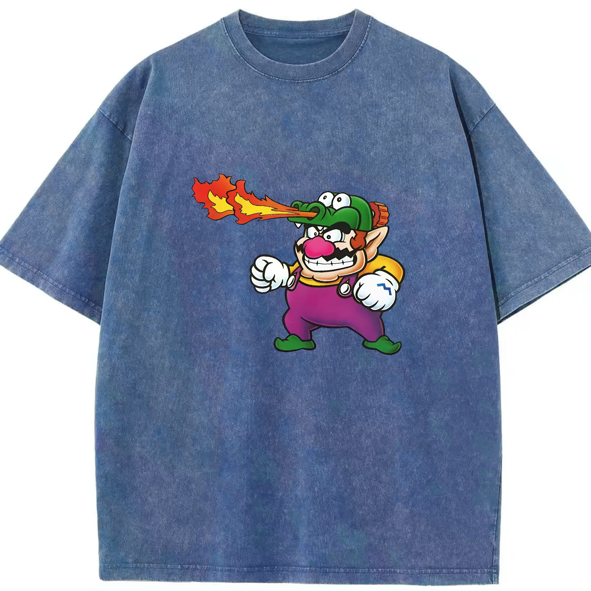 マリオ グッズ ワリオ - 綿100% ヴィンテージ風 半袖Tシャツ ・ 背面プリント ・ 柔らか肌触り ・ 通気性 快適 ・ スポーツ カジュアル 外出用