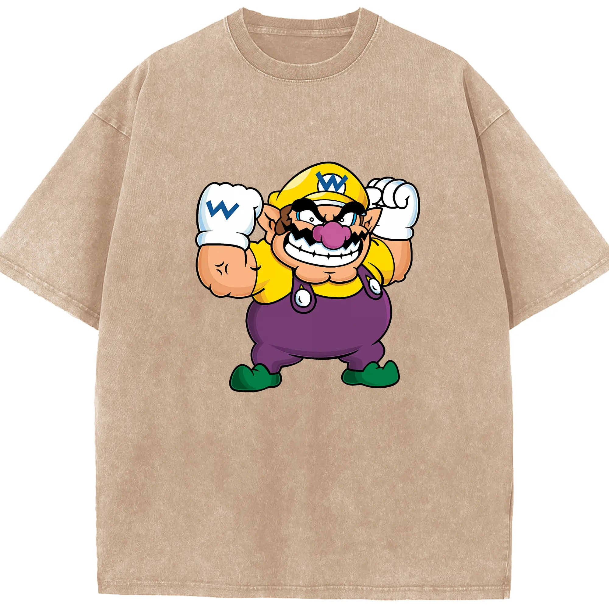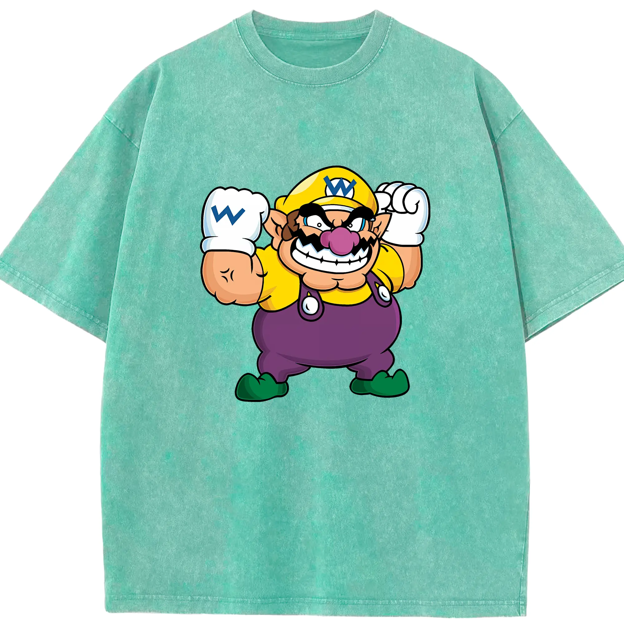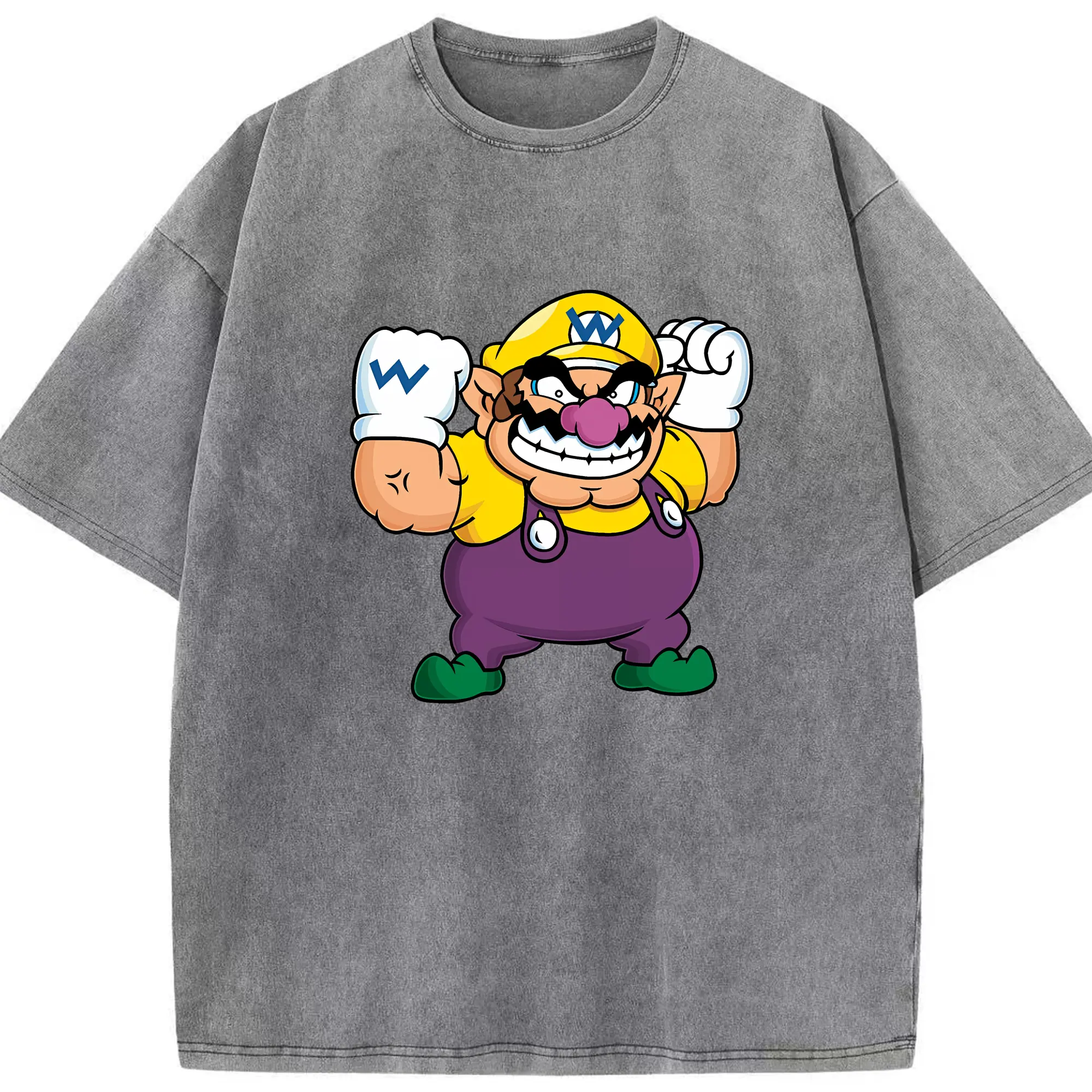 マリオ グッズ ワリオ - 綿100% ヴィンテージ風 半袖Tシャツ ・ 背面プリント ・ 柔らか肌触り ・ 通気性 快適 ・ スポーツ カジュアル 外出用