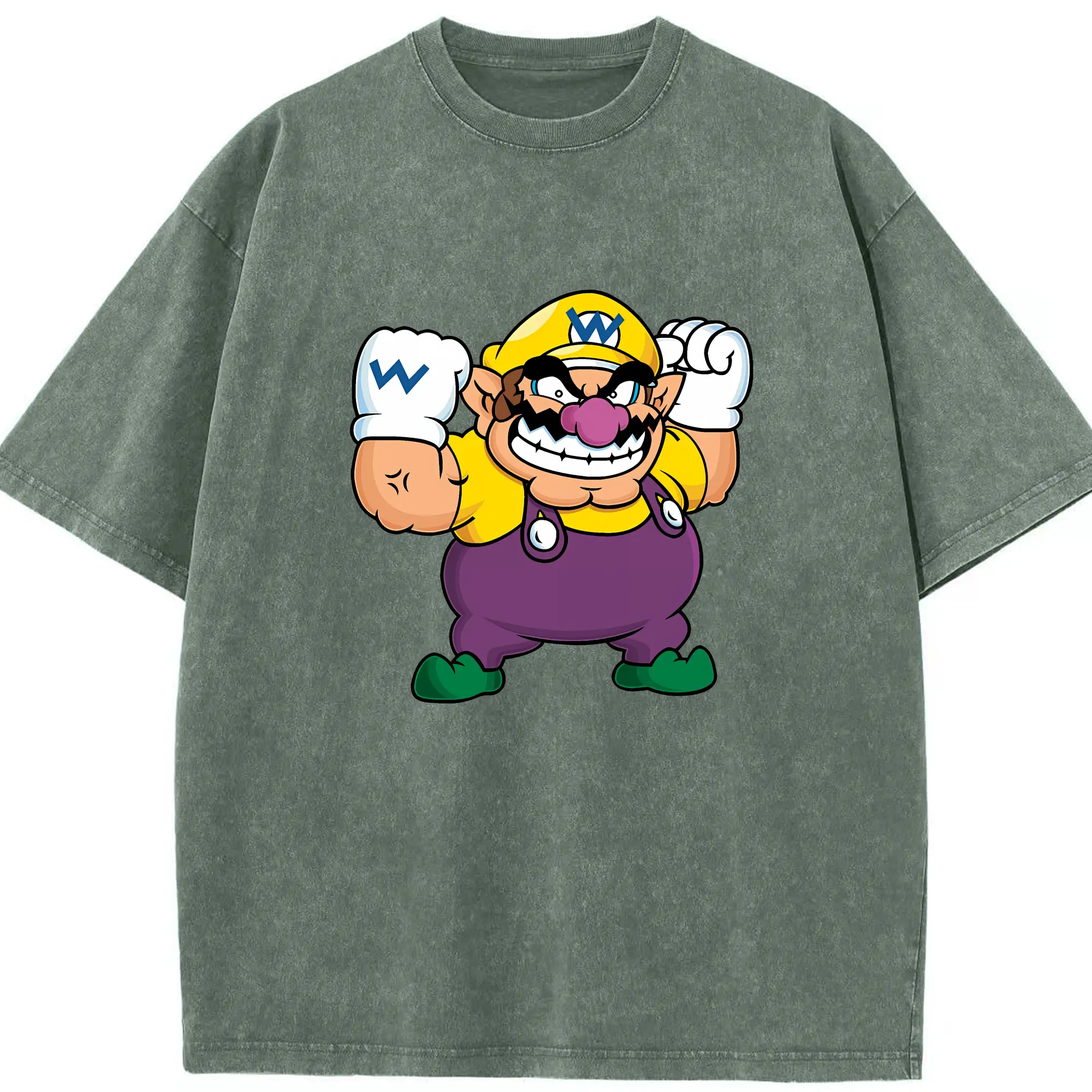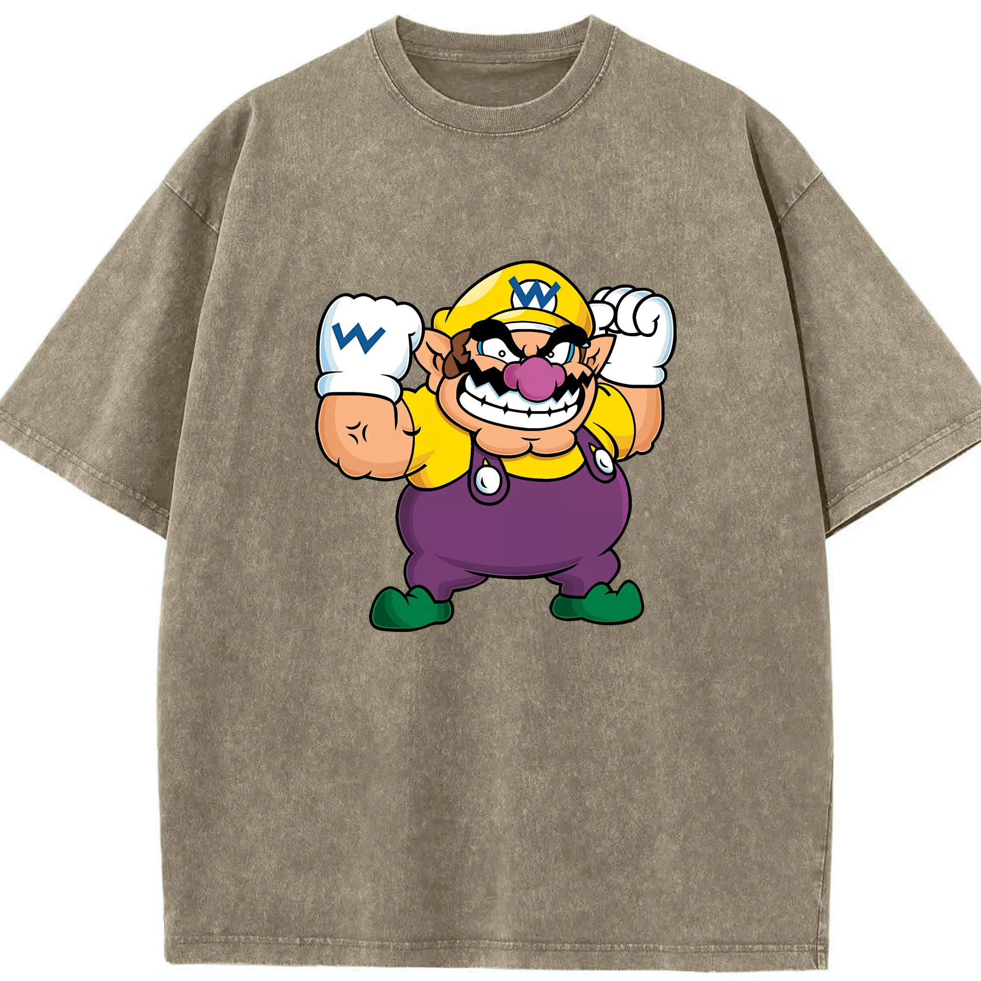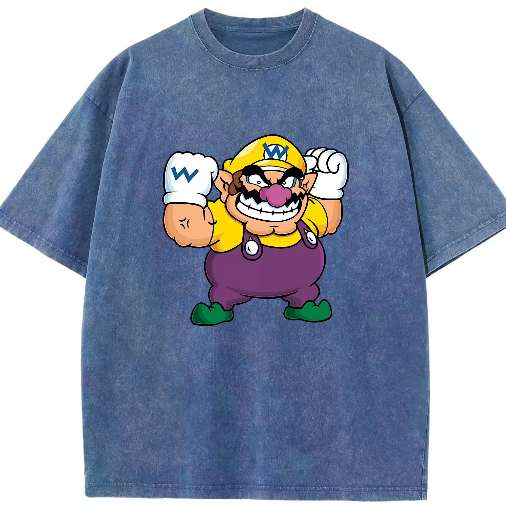 マリオ グッズ ワリオ - 綿100% ヴィンテージ風 半袖Tシャツ ・ 背面プリント ・ 柔らか肌触り ・ 通気性 快適 ・ スポーツ カジュアル 外出用