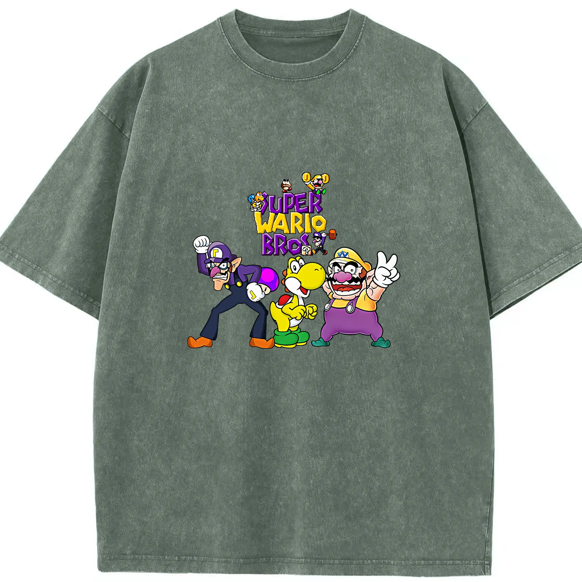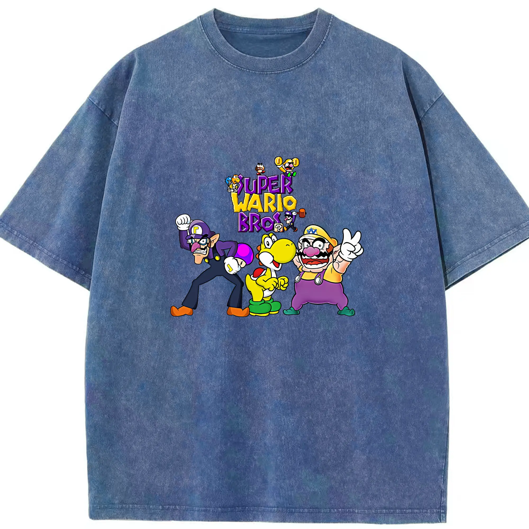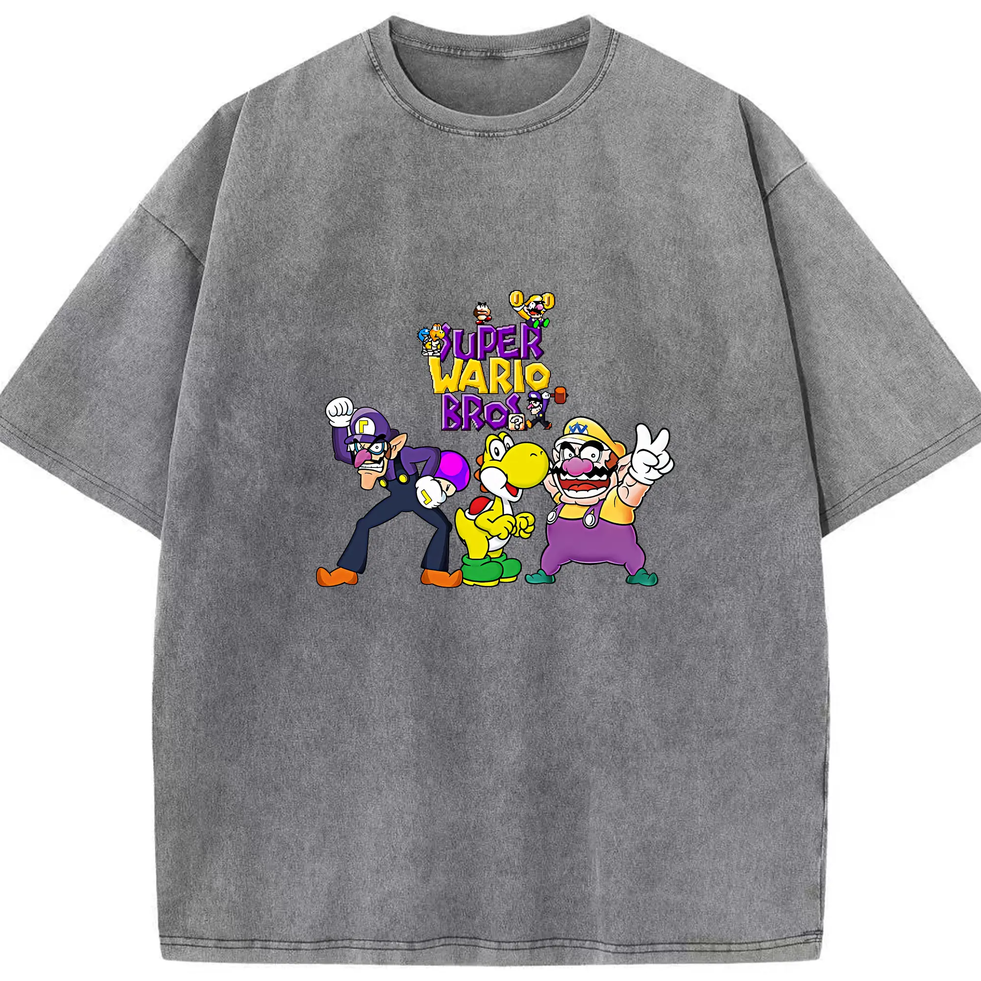 マリオ グッズ ワリオ - 綿100% ヴィンテージ風 半袖Tシャツ ・ 背面プリント ・ 柔らか肌触り ・ 通気性 快適 ・ スポーツ カジュアル 外出用