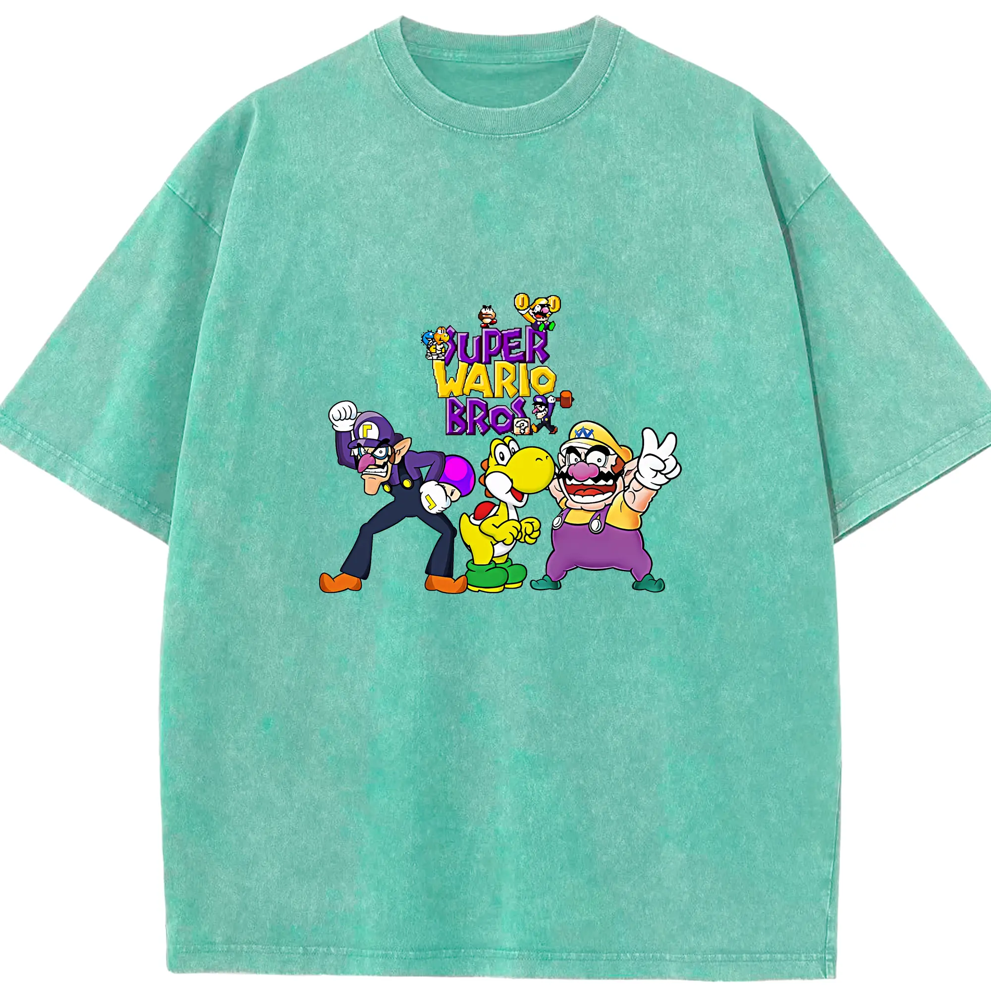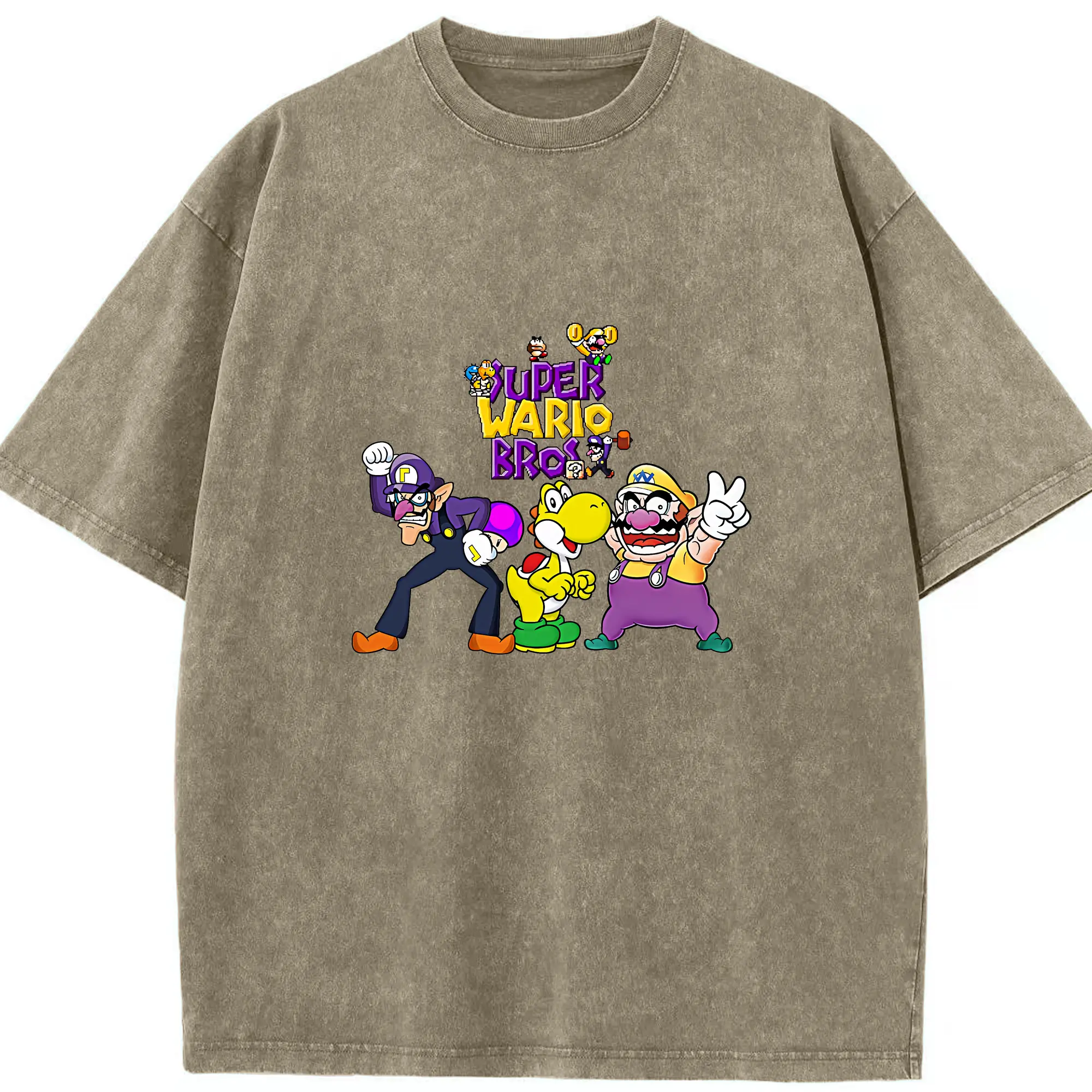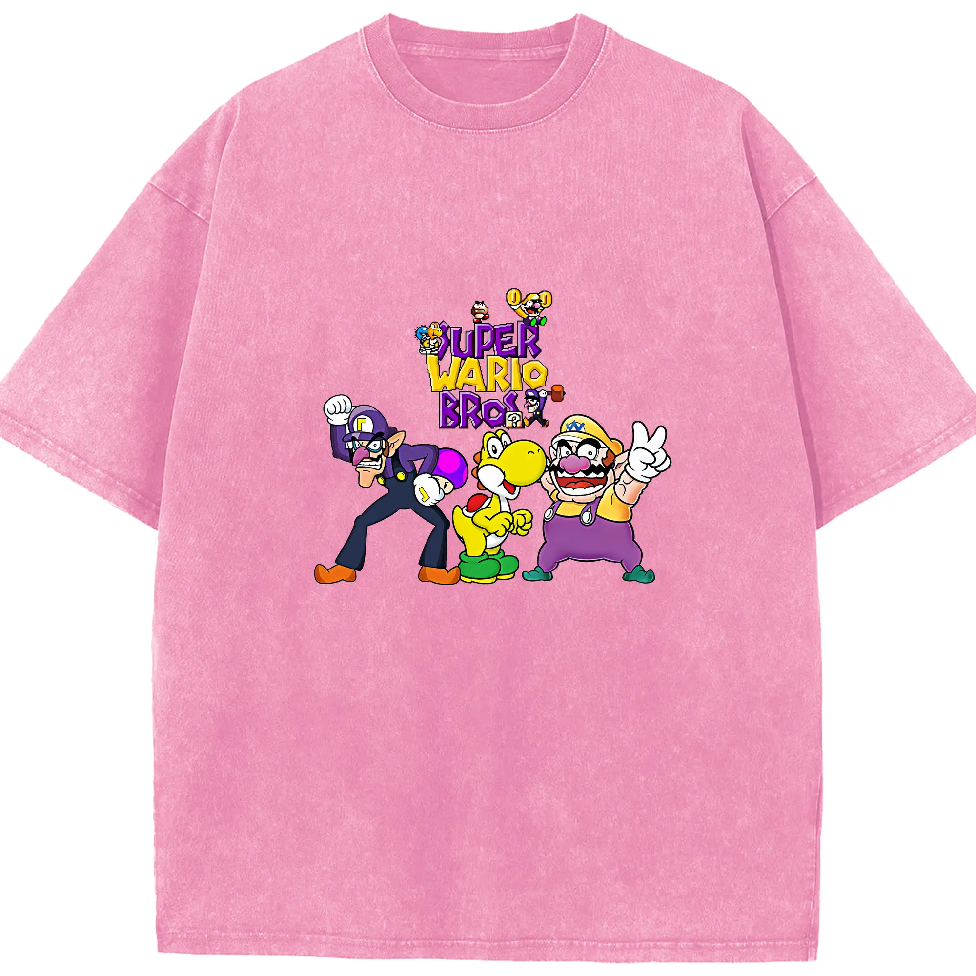 マリオ グッズ ワリオ - 綿100% ヴィンテージ風 半袖Tシャツ ・ 背面プリント ・ 柔らか肌触り ・ 通気性 快適 ・ スポーツ カジュアル 外出用