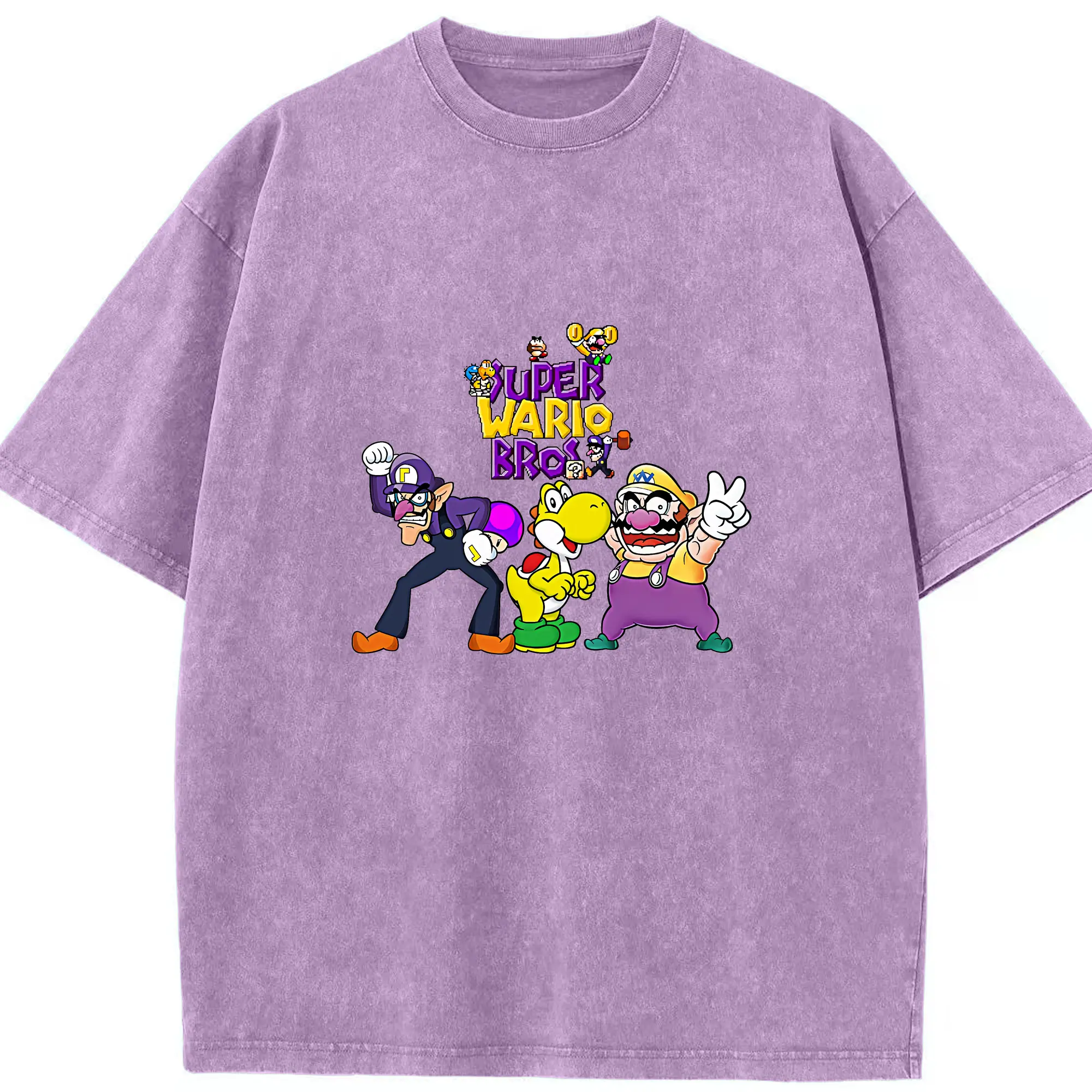 マリオ グッズ ワリオ - 綿100% 半袖Tシャツ ・ バックプリント ・ 快適 通気性 ・ 日常使い 散歩 スポーツ用