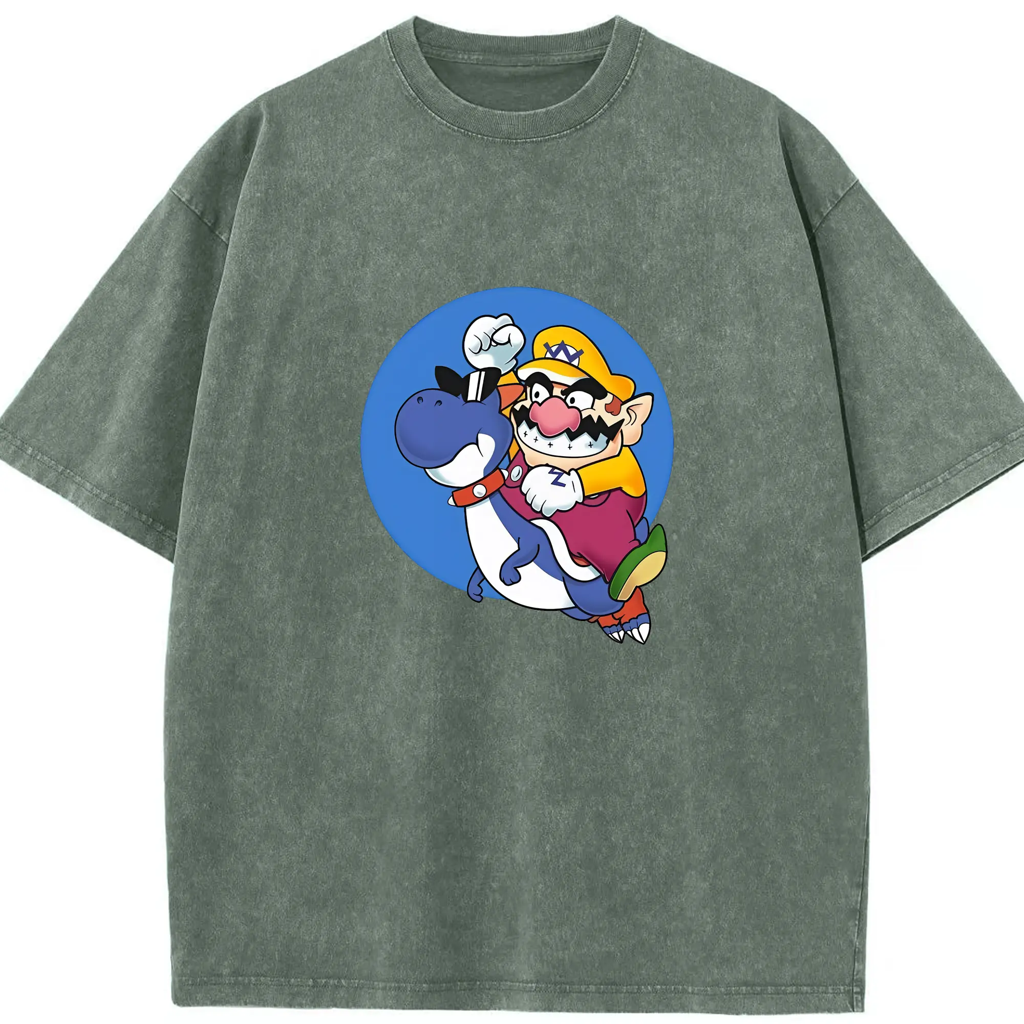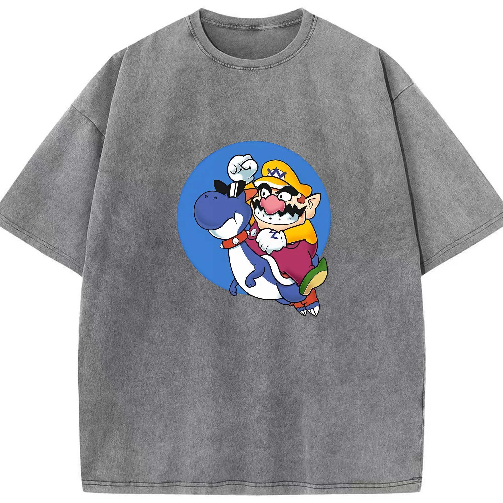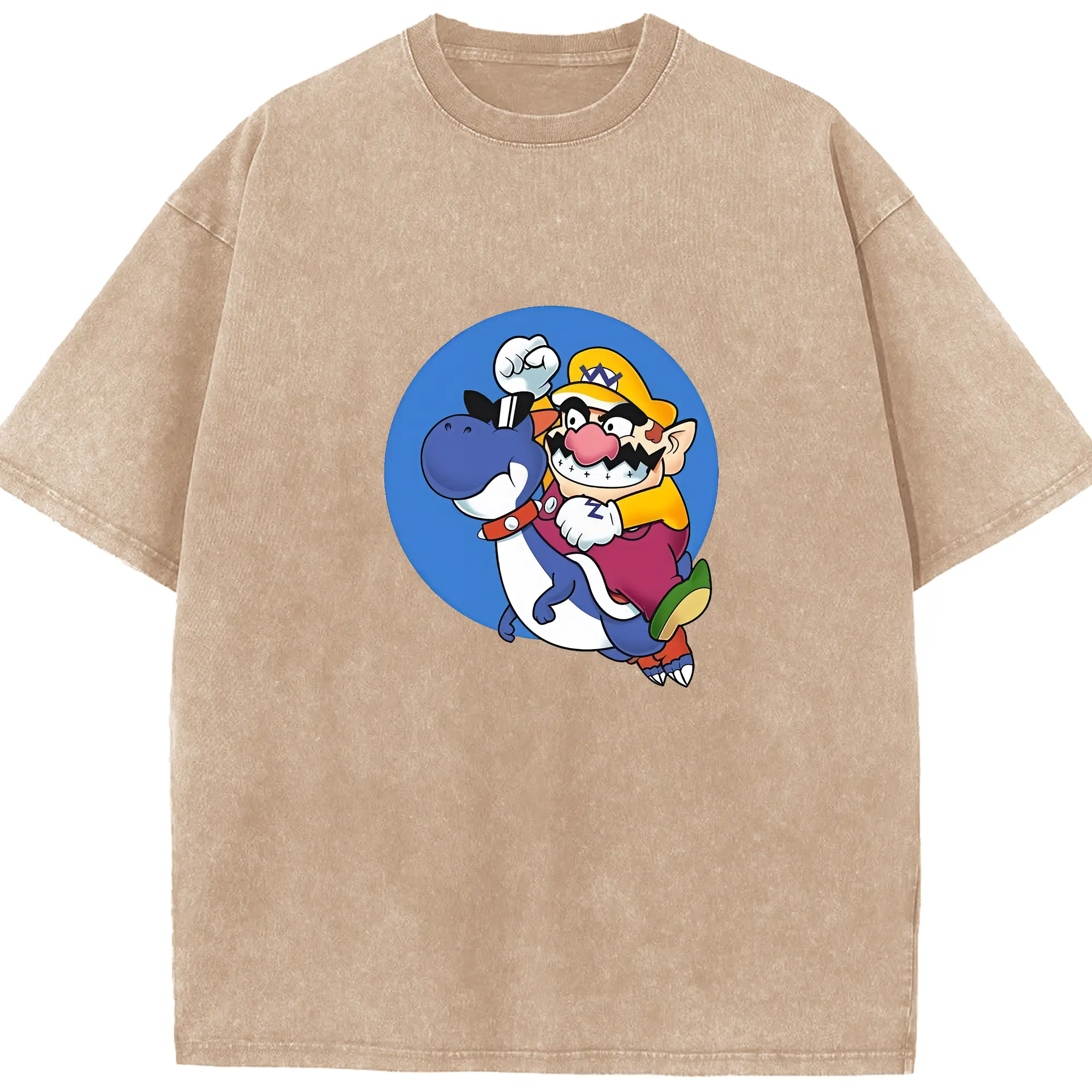マリオ グッズ ワリオ - 綿100% ヴィンテージ風 半袖Tシャツ ・ 背面プリント ・ 柔らか肌触り ・ 通気性 快適 ・ スポーツ カジュアル 外出用