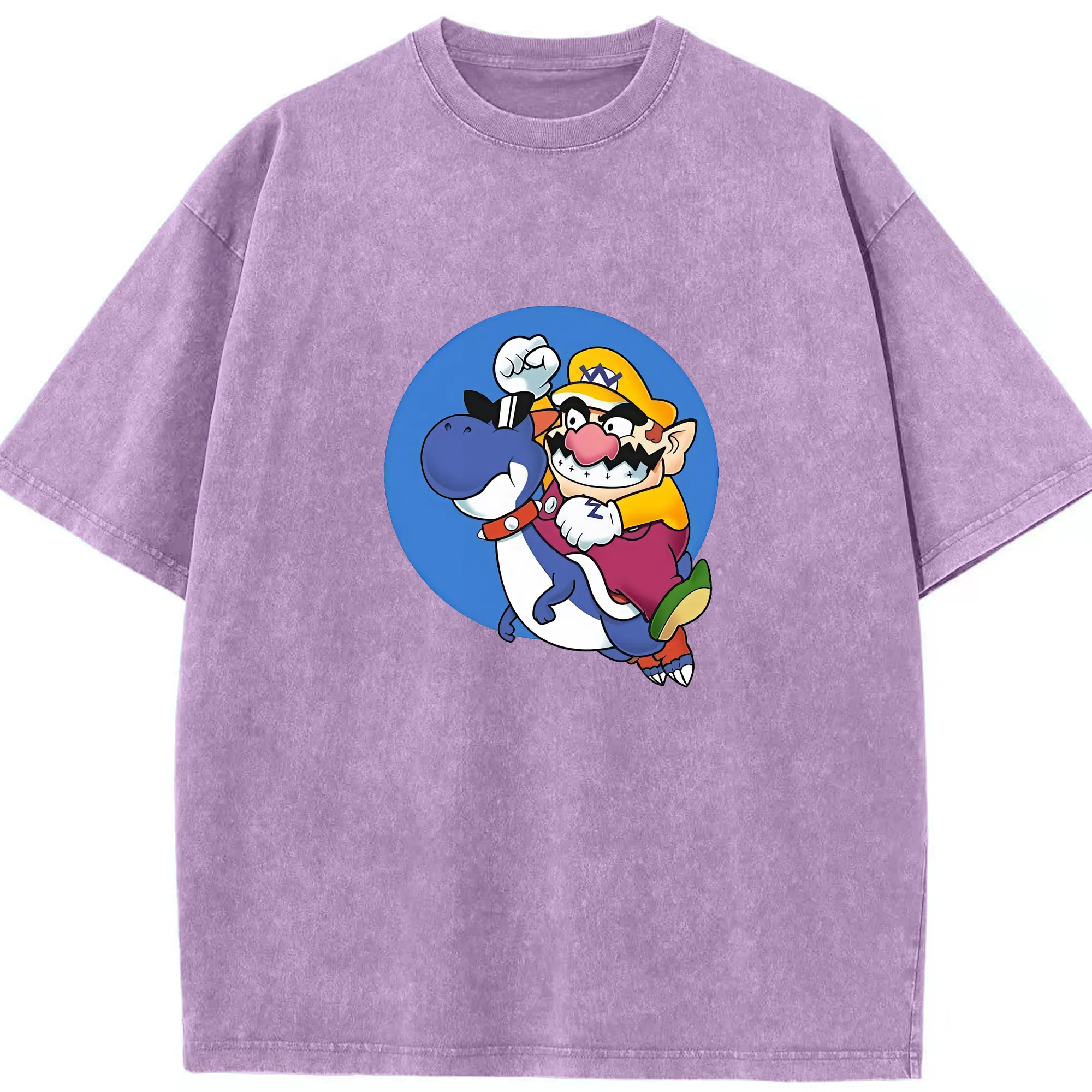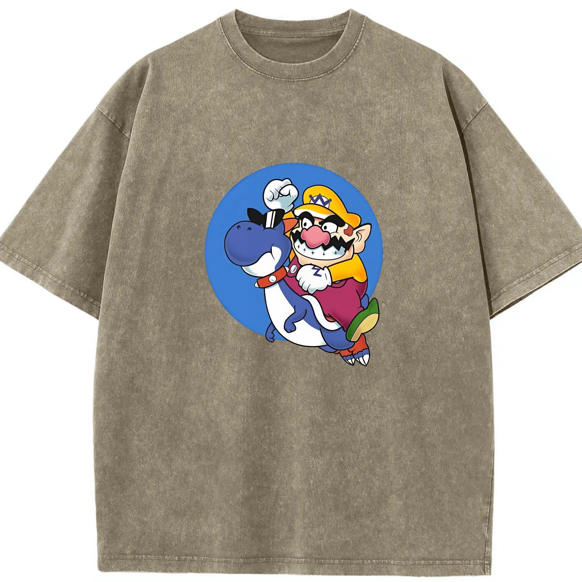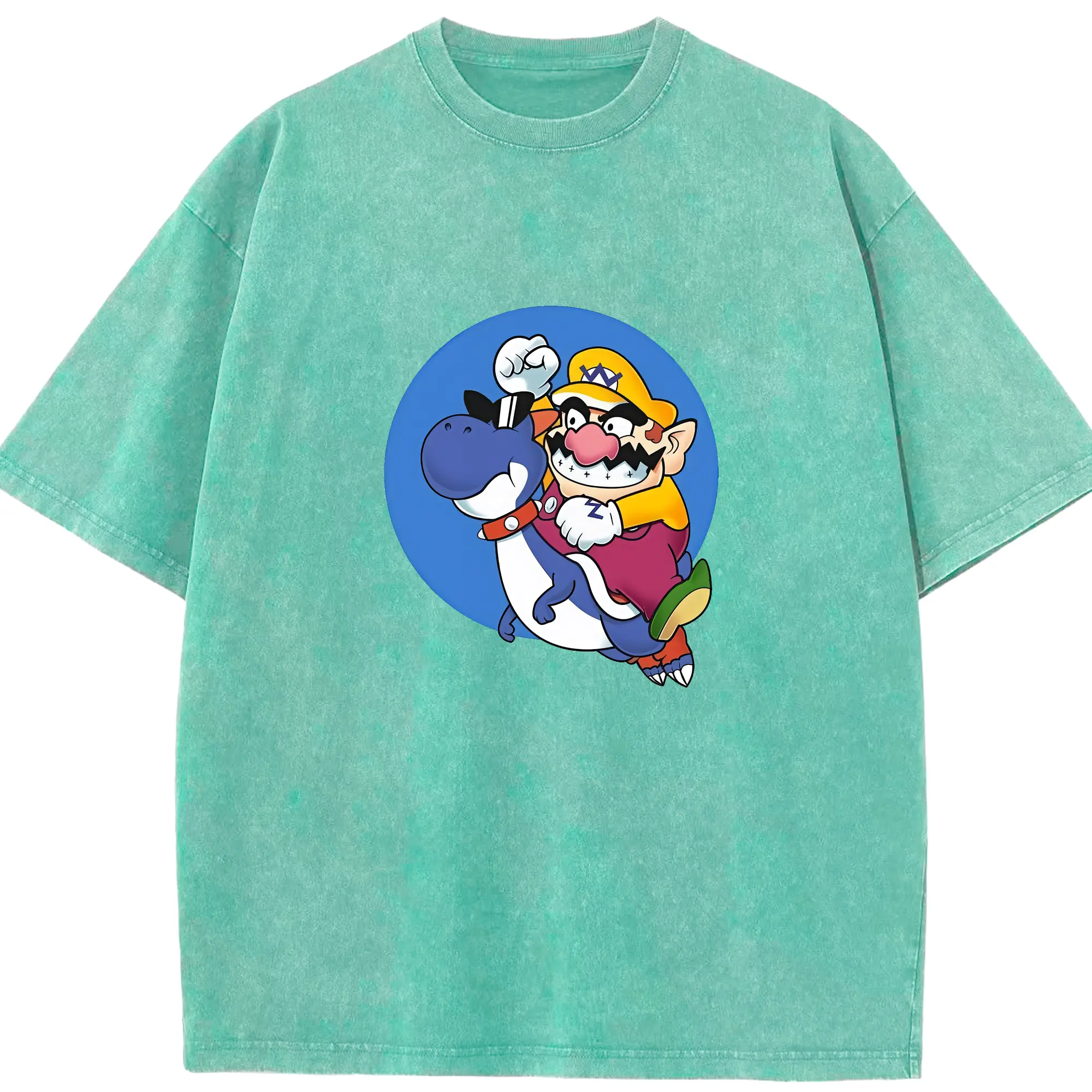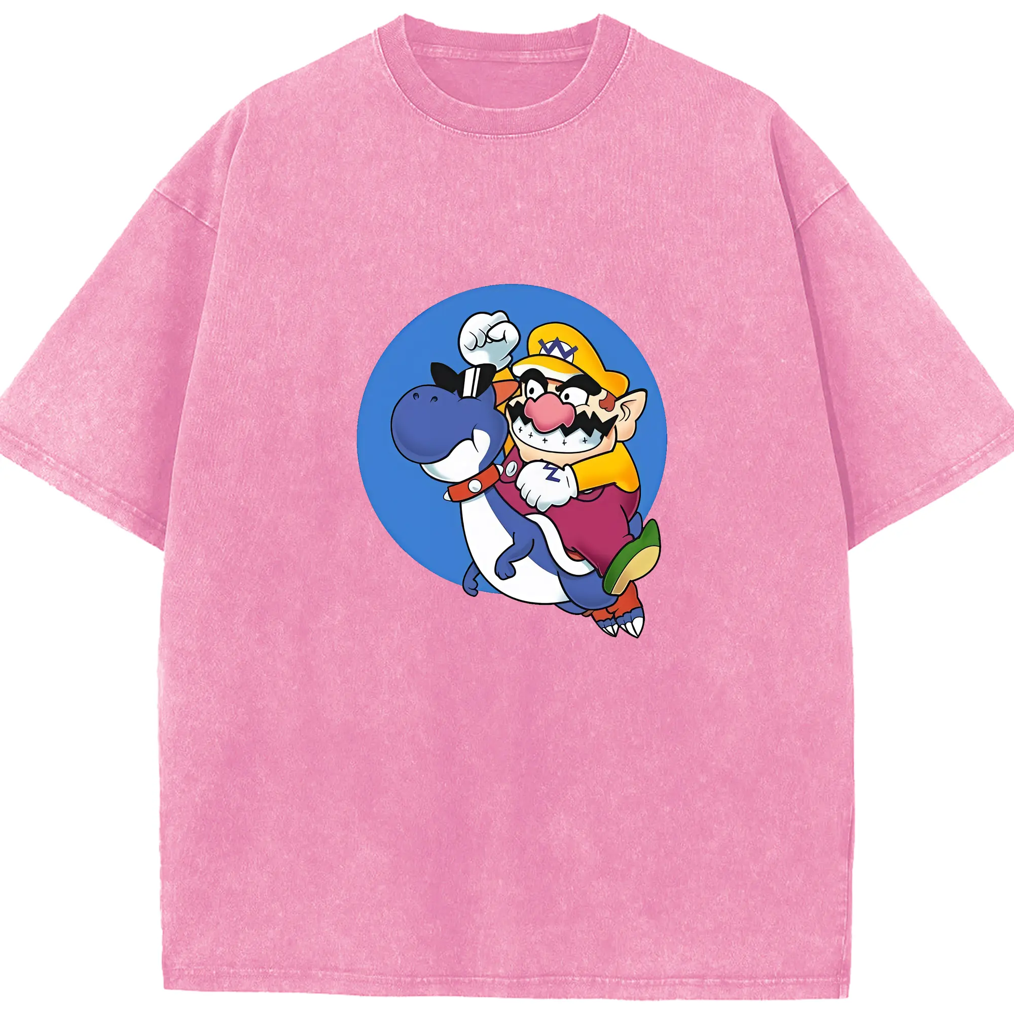 マリオ グッズ ワリオ - 綿100% ヴィンテージ風 半袖Tシャツ ・ 背面プリント ・ 柔らか肌触り ・ 通気性 快適 ・ スポーツ カジュアル 外出用