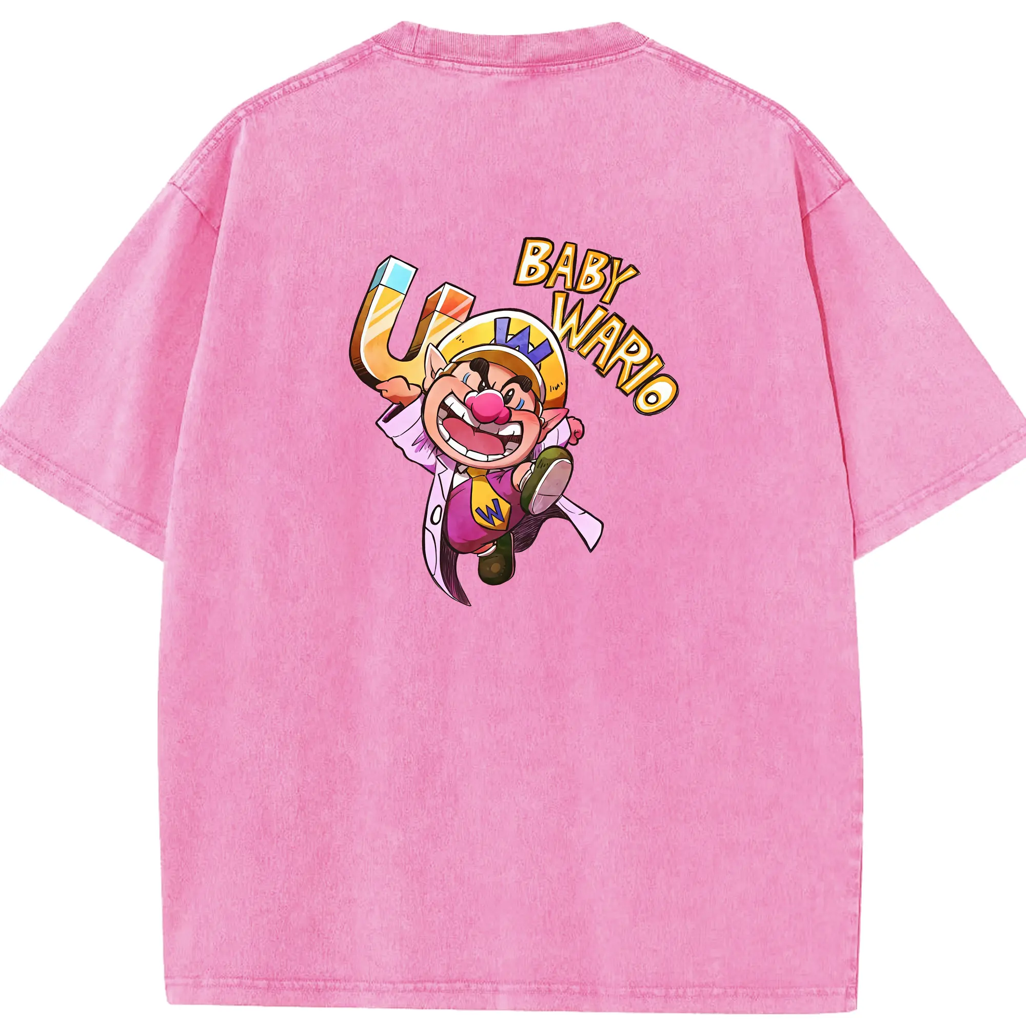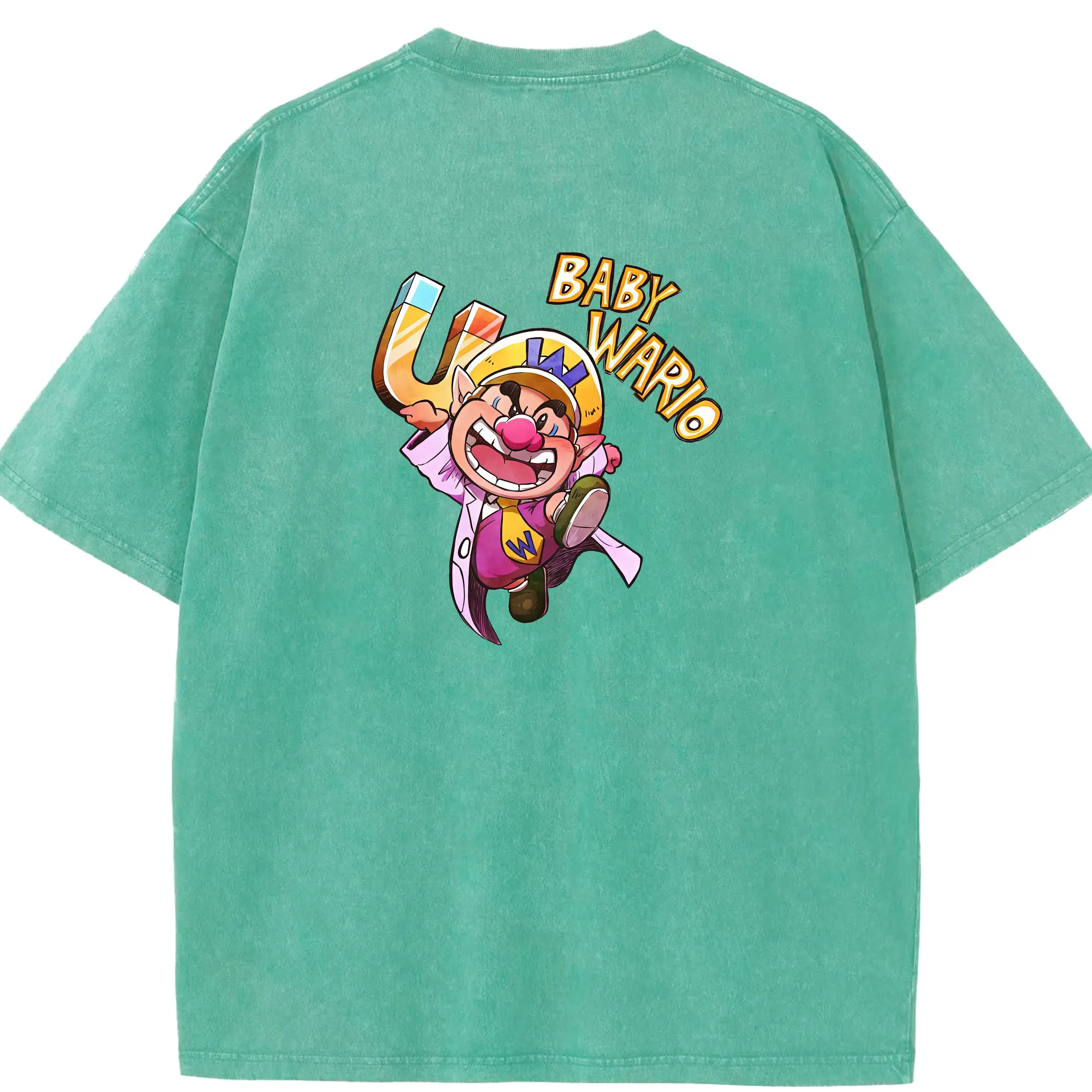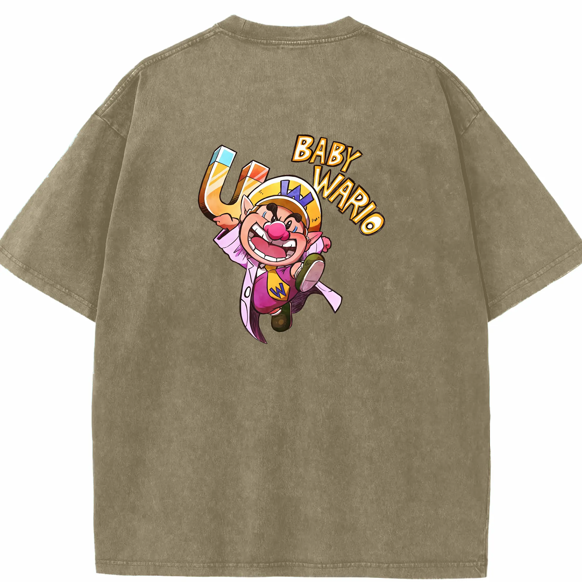 マリオ グッズ ワリオ - 綿100% ヴィンテージ風 半袖Tシャツ ・ フロントプリント ・ 柔らか肌触り ・ 通気性 快適 ・ スポーツ カジュアル 外出用