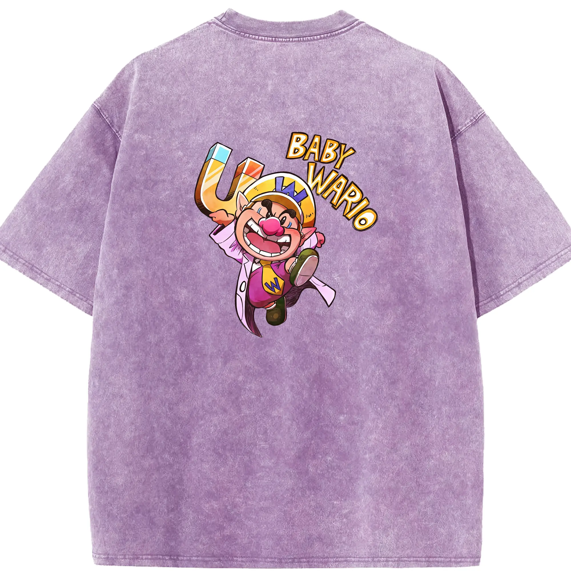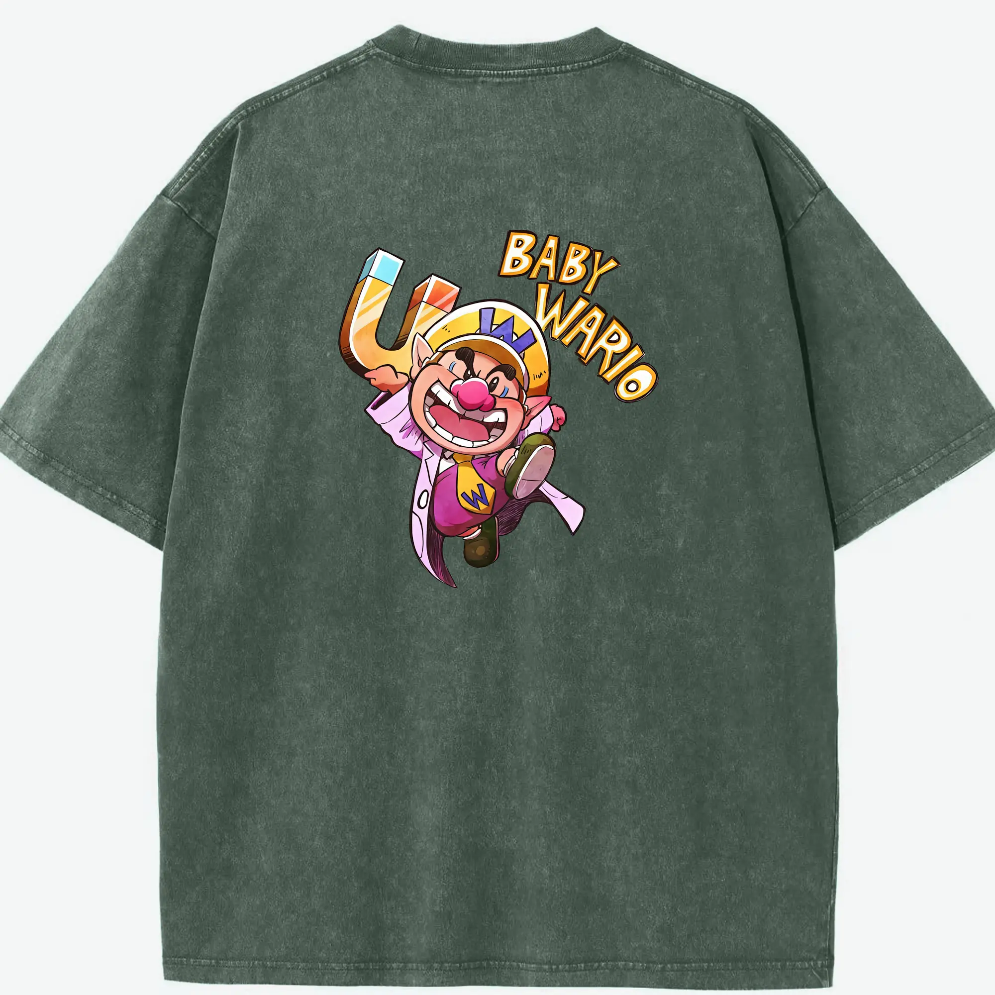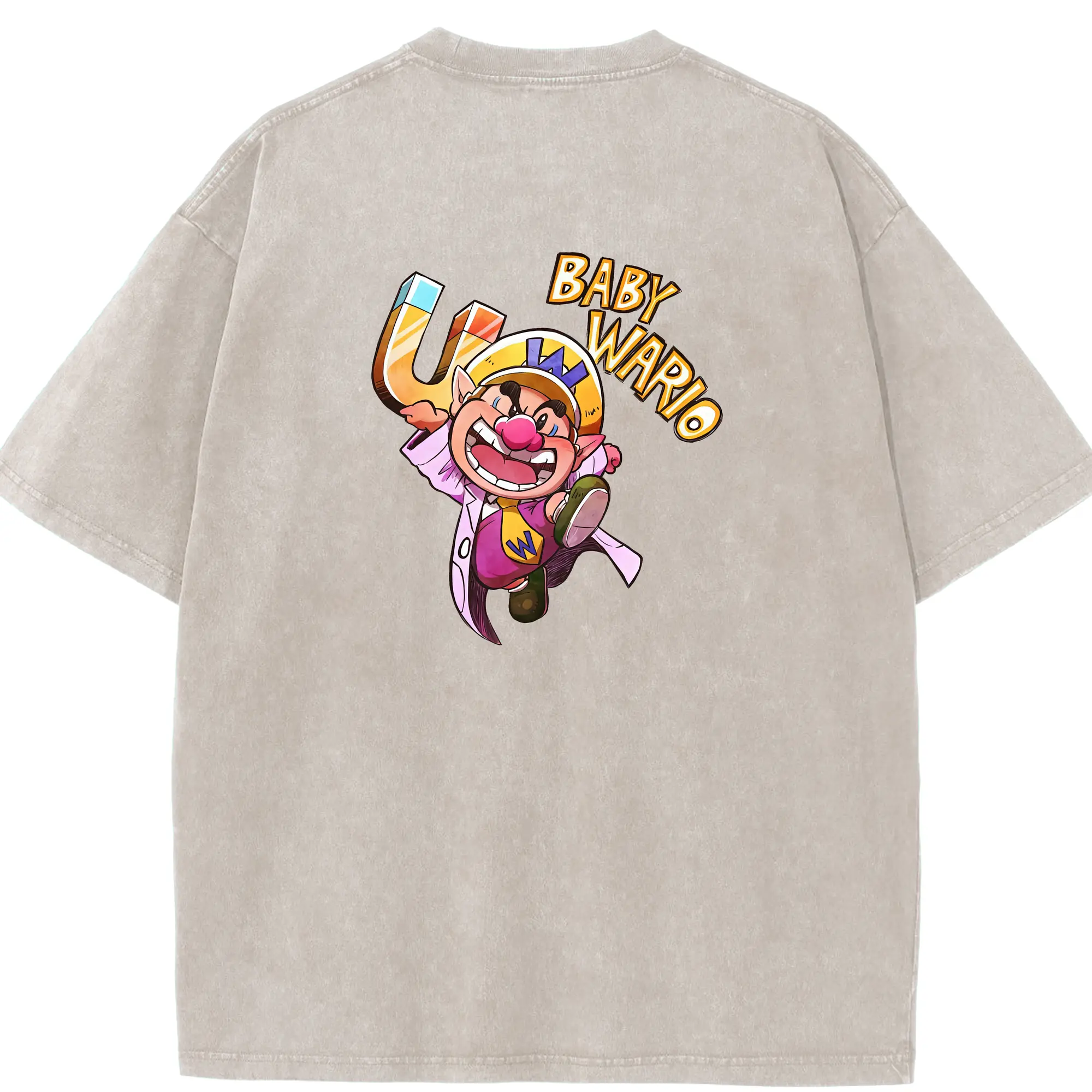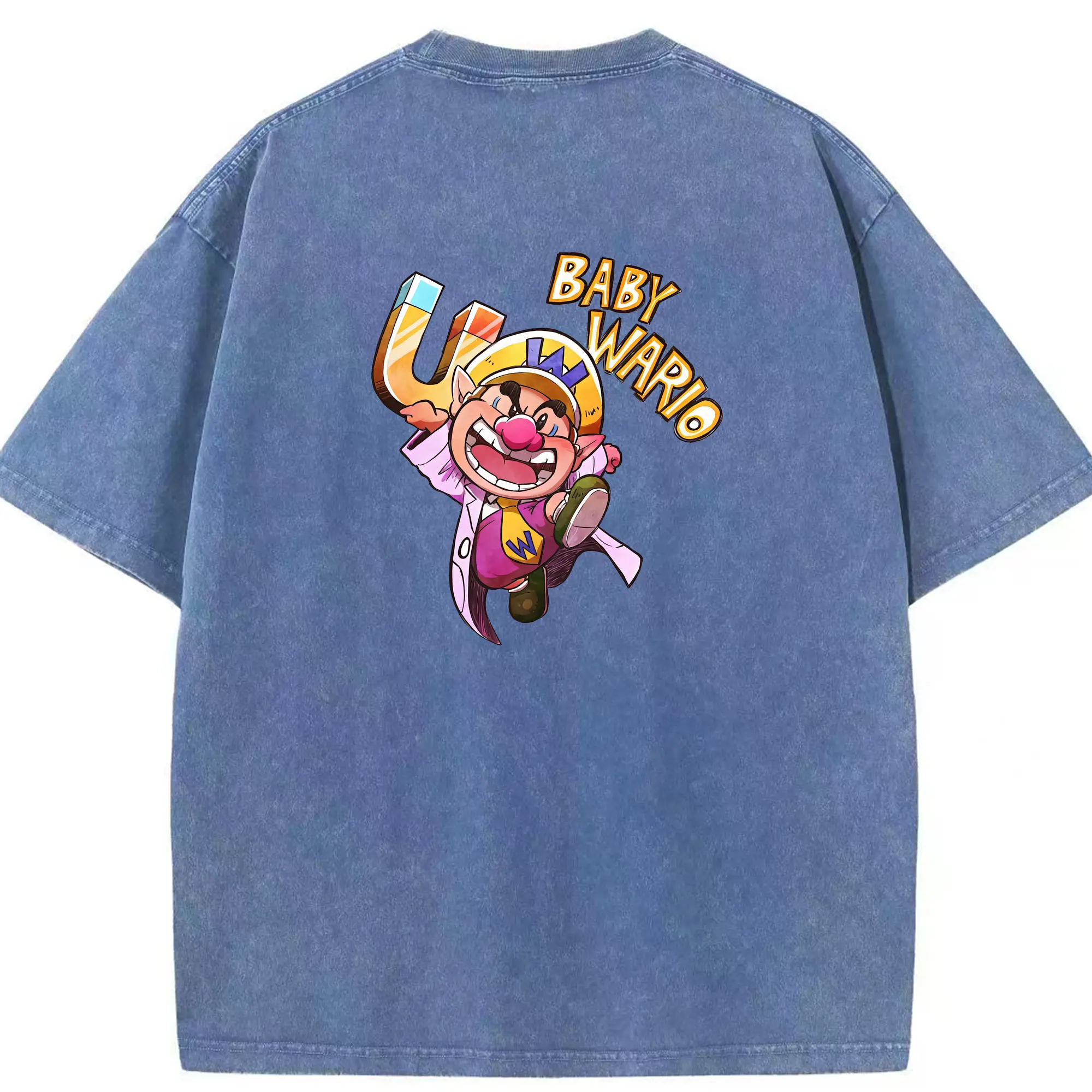 マリオ グッズ ワリオ - 綿100% ヴィンテージ風 半袖Tシャツ ・ フロントプリント ・ 柔らか肌触り ・ 通気性 快適 ・ スポーツ カジュアル 外出用