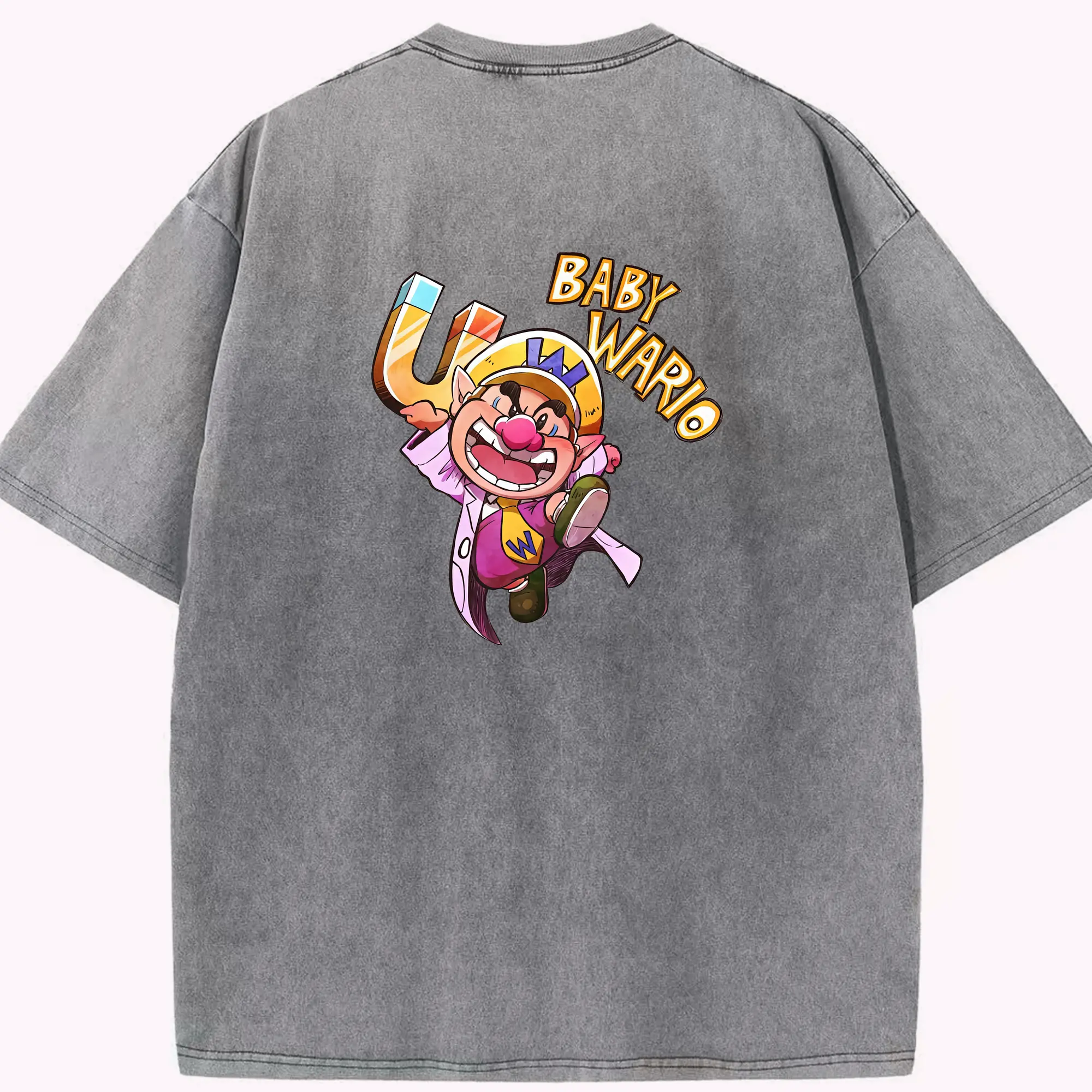 マリオ グッズ ワリオ - 綿100% 半袖Tシャツ ・ バックプリント ・ 快適 通気性 ・ 日常使い 散歩 スポーツ用