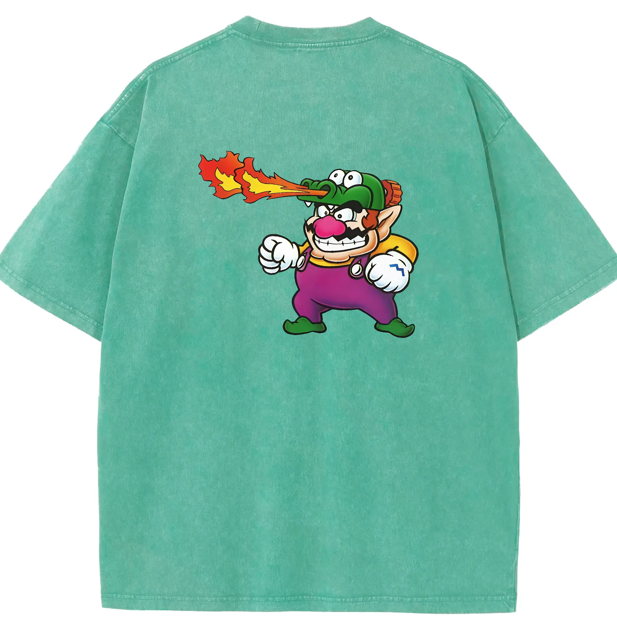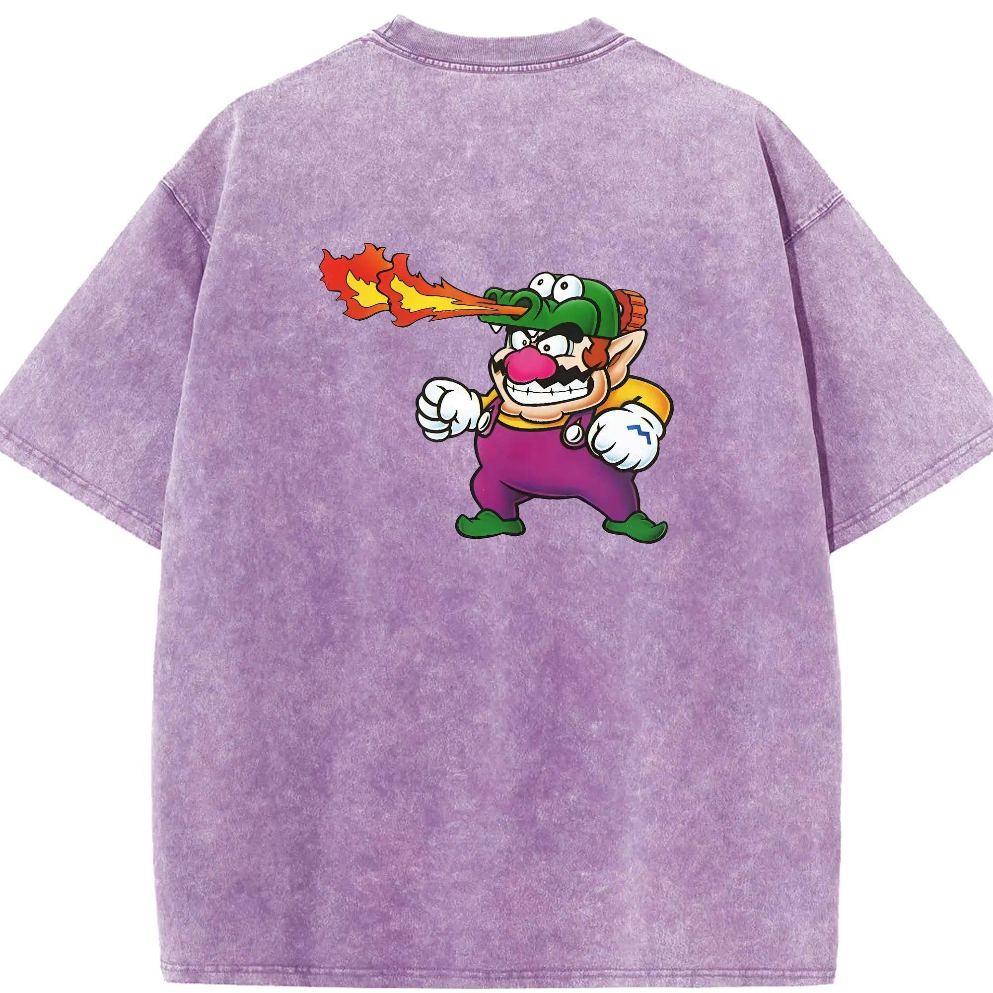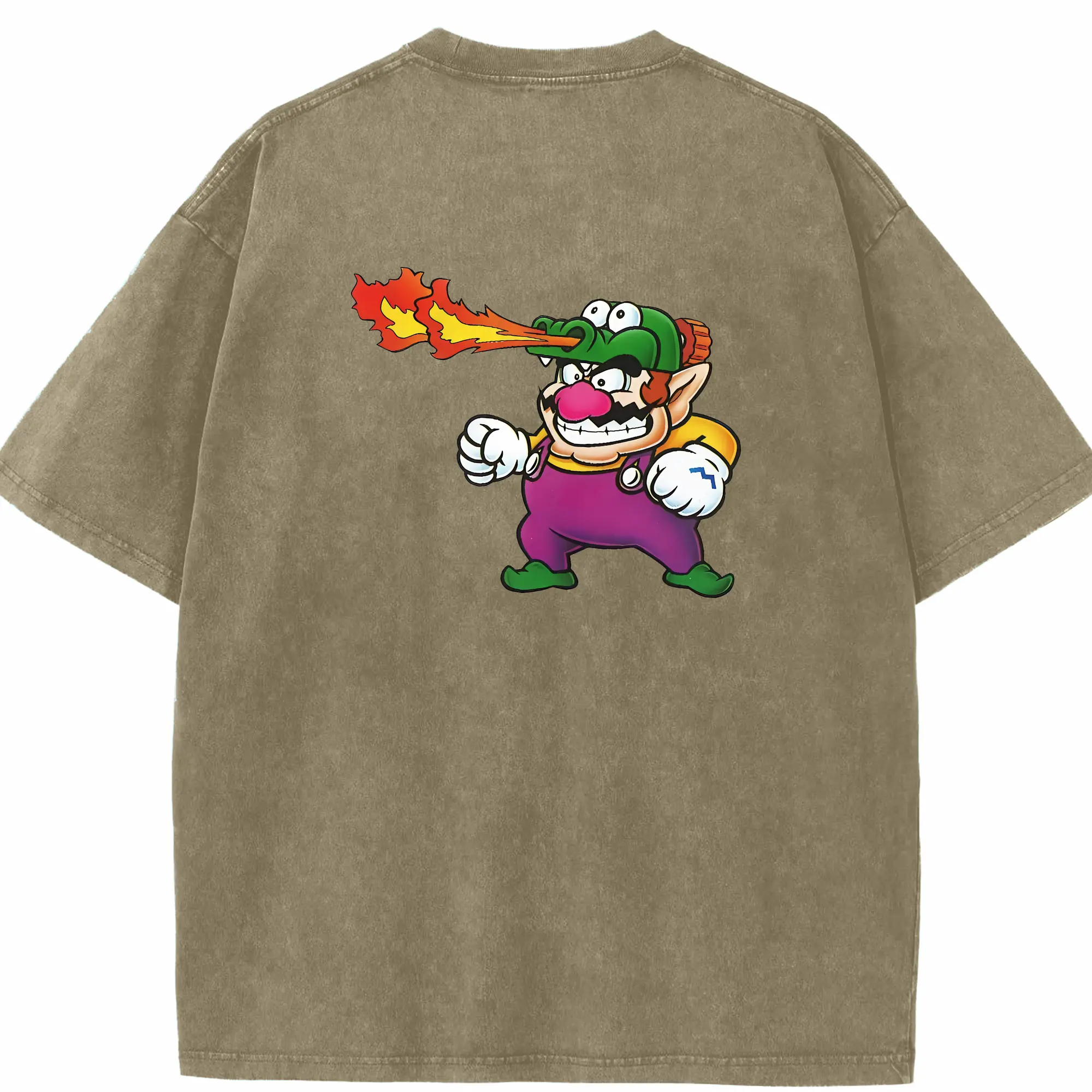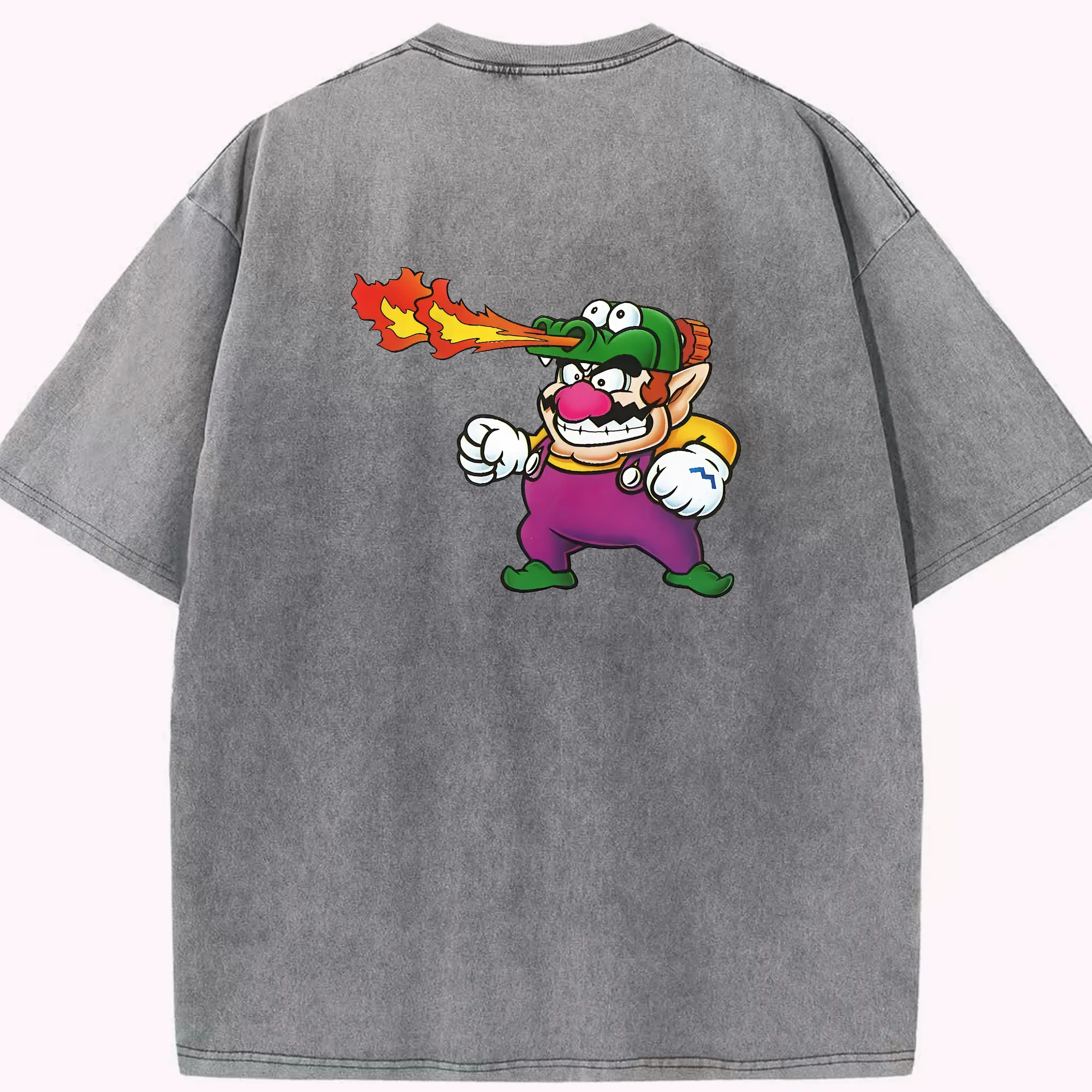 マリオ グッズ ワリオ - 綿100% ヴィンテージ風 半袖Tシャツ ・ フロントプリント ・ 柔らか肌触り ・ 通気性 快適 ・ スポーツ カジュアル 外出用